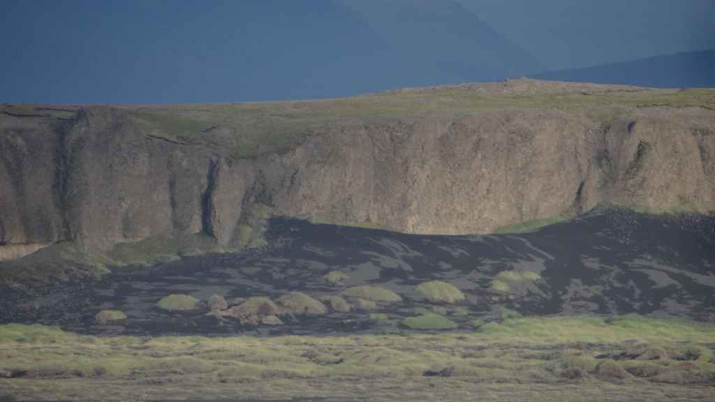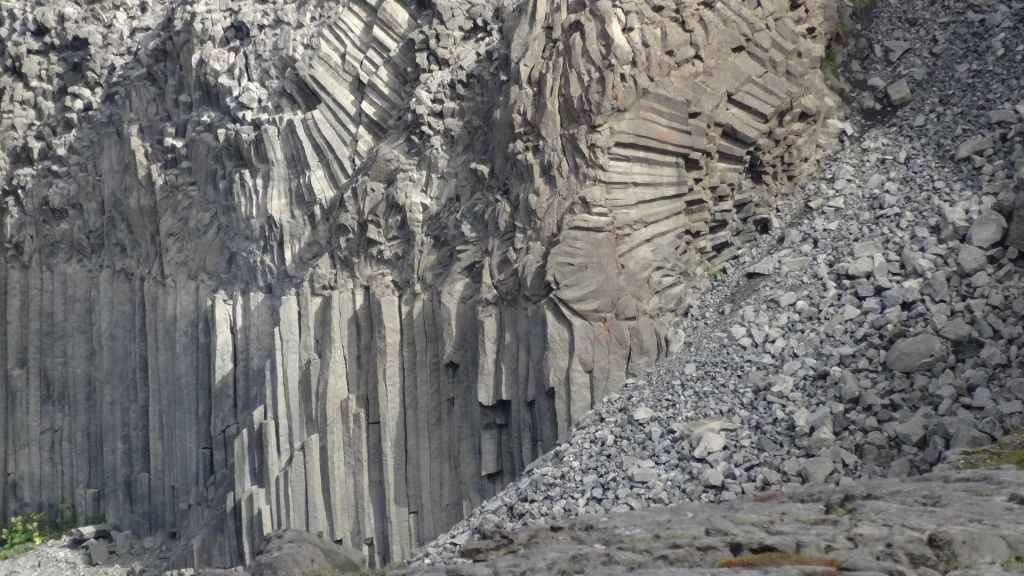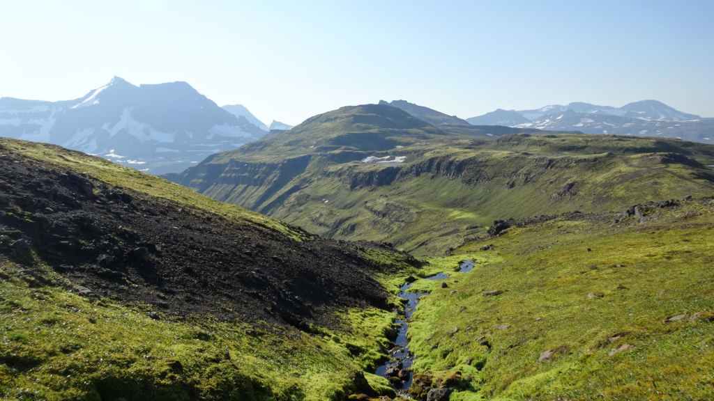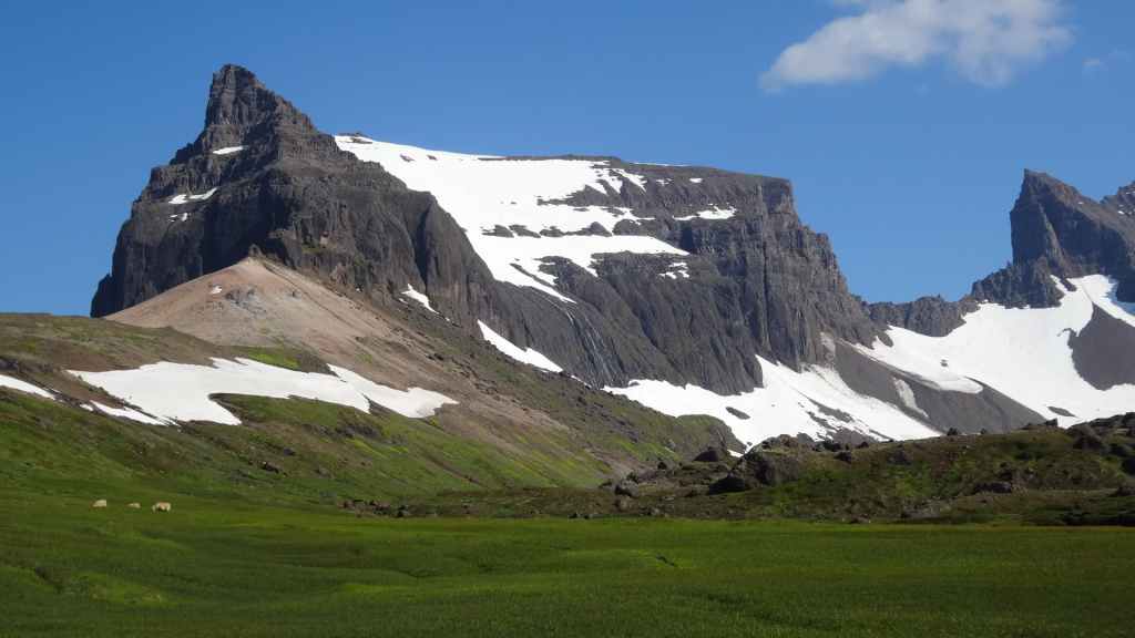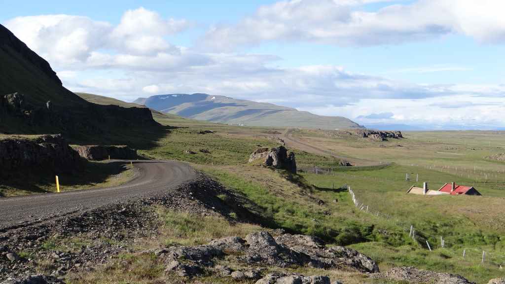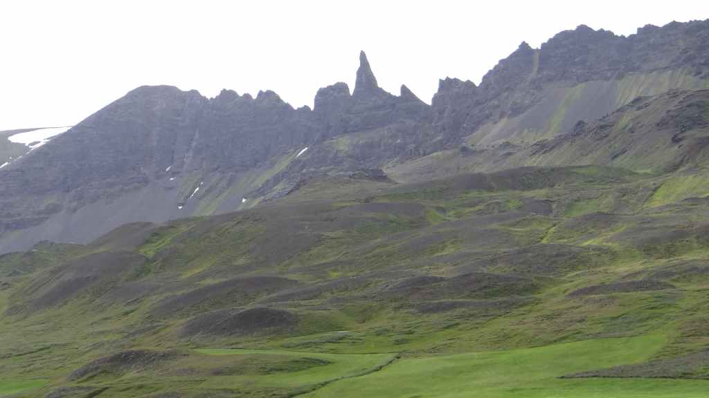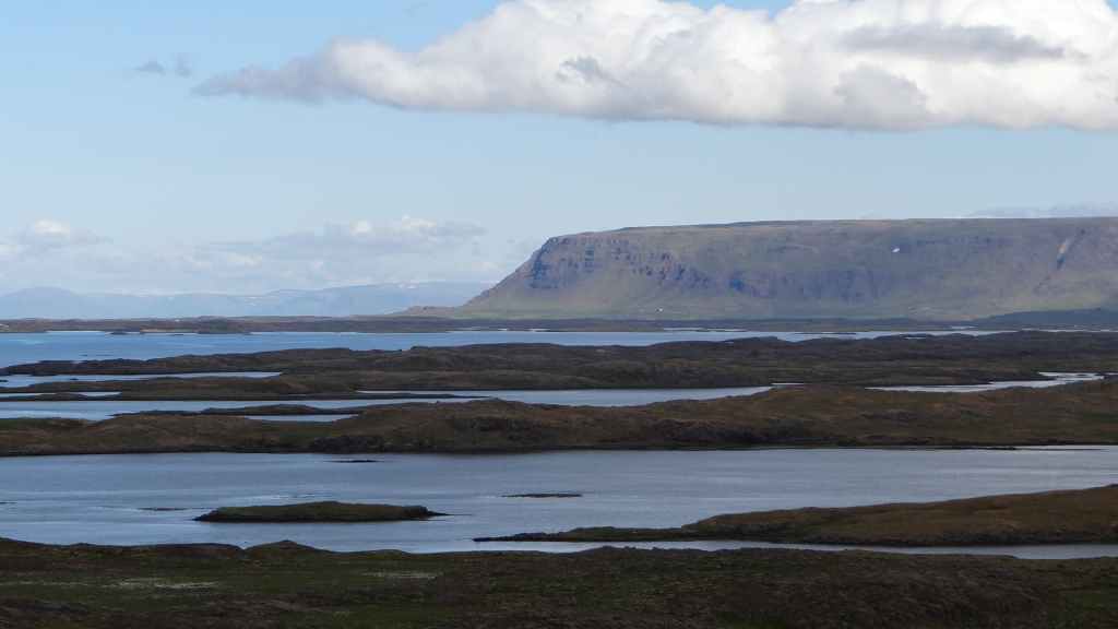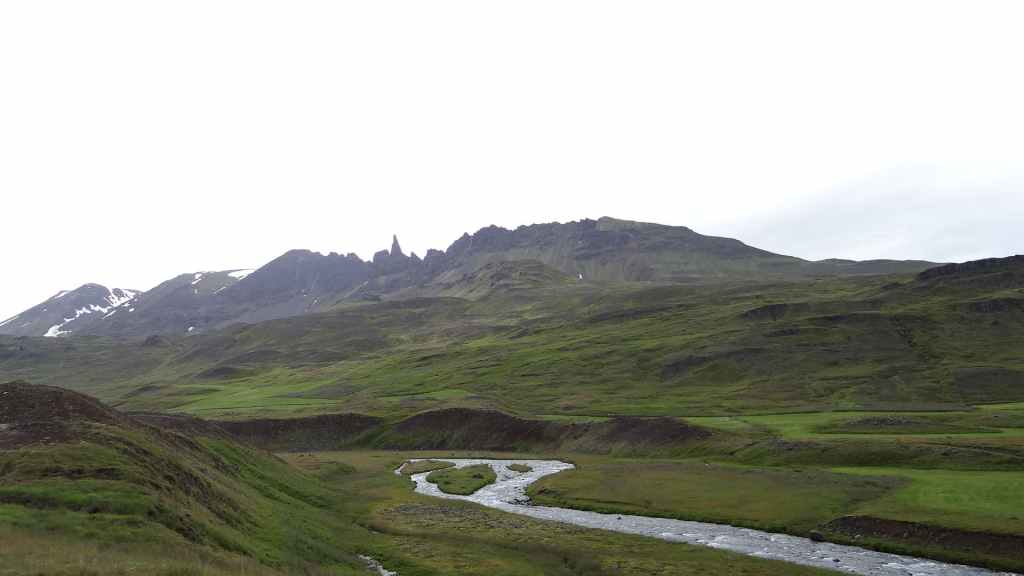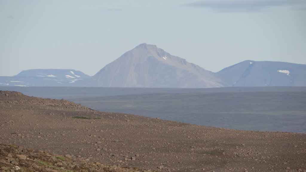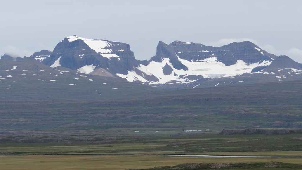 Le temps est maintenant au sec… Nous continuons par le fjord Berufjördur qui est le plus long du secteur mais rien non plus d’extraordinaire. Nous reprenons donc la piste 939, qui passe par le col Öxi à quelques 530 m d’altitude : pas très haut mais paysage semblable à 2500 – 2700 m dans les Alpes. Nous rejoignons Egilsstadir où nous avons fait nos premières courses en arrivant, il y a maintenant 18 jours : la boucle est bouclée ! Et le soleil, pas virulent tout de même, est revenu… Nous retournons à Bakkagerdi pour voir si les macareux ont effectivement quitté les lieux au 15 août. Nous reprenons la même route, mais avec cette météo bien plus clémente, les paysages sont nettement plus jolis et voyons bien le Storud, ce rocher bien caractéristique, vers lequel, nous irons randonner demain.