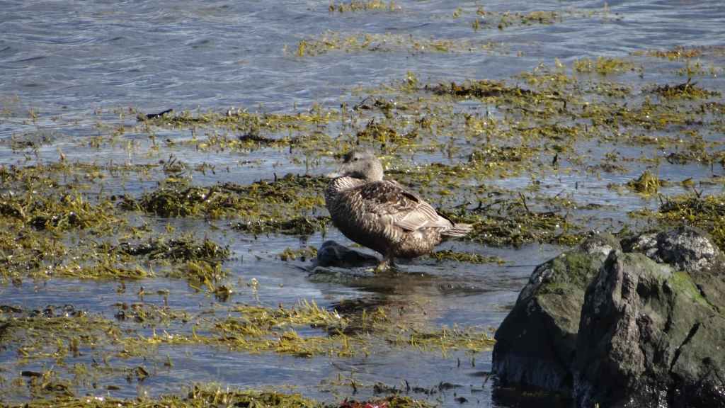 Puis on repart sur la piste jusqu’à un point d’observation des phoques, en face la « péninsule des fjords du nord-ouest ». Le coin est idyllique sous le soleil… et après une petite balade, on peut observer une bonne vingtaine de phoques qui flemmardent sur les rochers d’un petit îlot situé à environ 200 mètres de nous.
