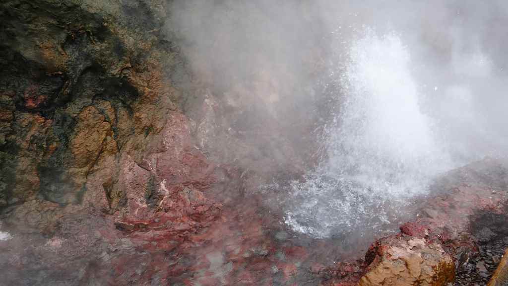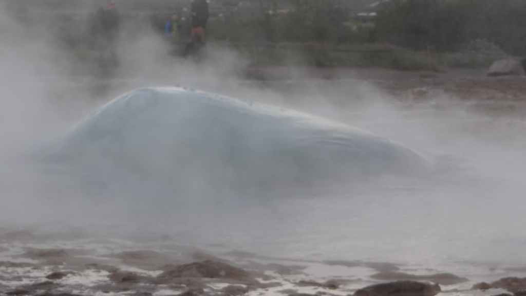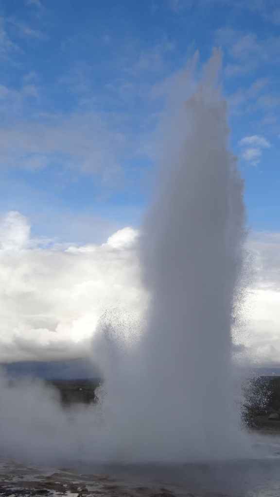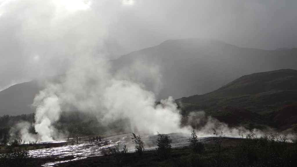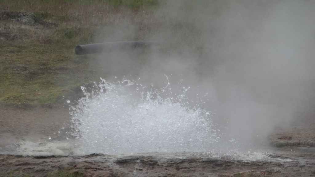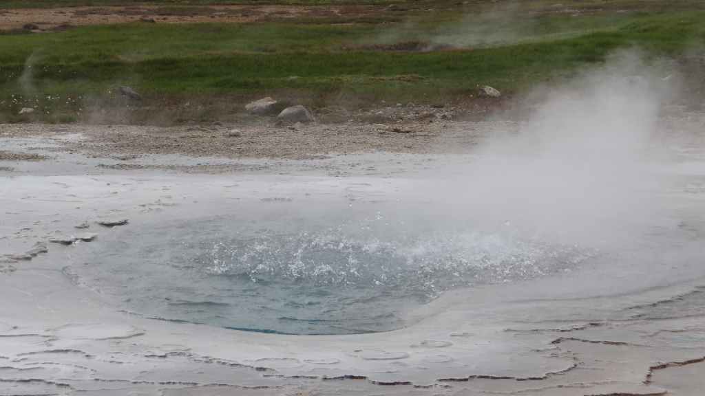 La route suivante nous emmène sur le site de Gesyir, connu pour son célèbre geyser. Après une discussion avec des camping-caristes lyonnais, nous allons observer cet étonnant phénomène qui commence par une grosse bulle bleue qui explose en un jet d’eau bouillante d’une trentaine de mètres.