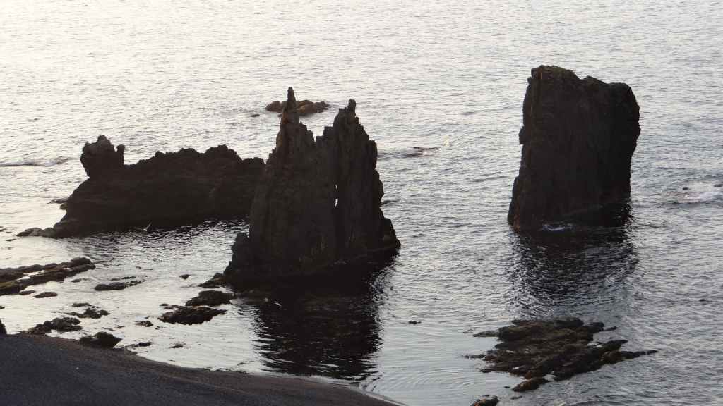 Aujourd’hui, nous avons décidé de reprendre le chemin du retour. En effet, il ne nous reste plus que 7 jours, et nous avons encore pas mal de choses à voir, dont la région du Mannalaugar. Nous voulons donc nous nous rendre dans le sud de l’île. Mais avant, nous avons une visite à rendre aux phoques d’Ytri Tunga. À quelques kilomètres plus à l’est. Un bus est déjà là avec une trentaine de personnes. Nous avons l’immense plaisir de voir 5 phoques en pleine baignade. Une fois les « touristes » partis, nous nous approchons du bord de l’eau, et les phoques, curieux, s’approchent à une dizaine de mètres de nous : moment exceptionnel et inoubliable !