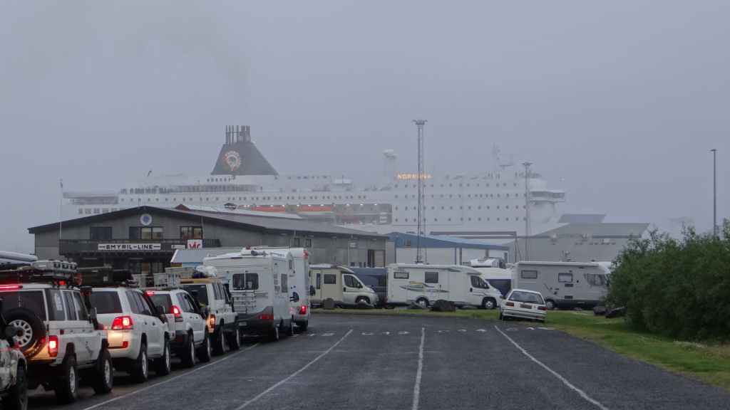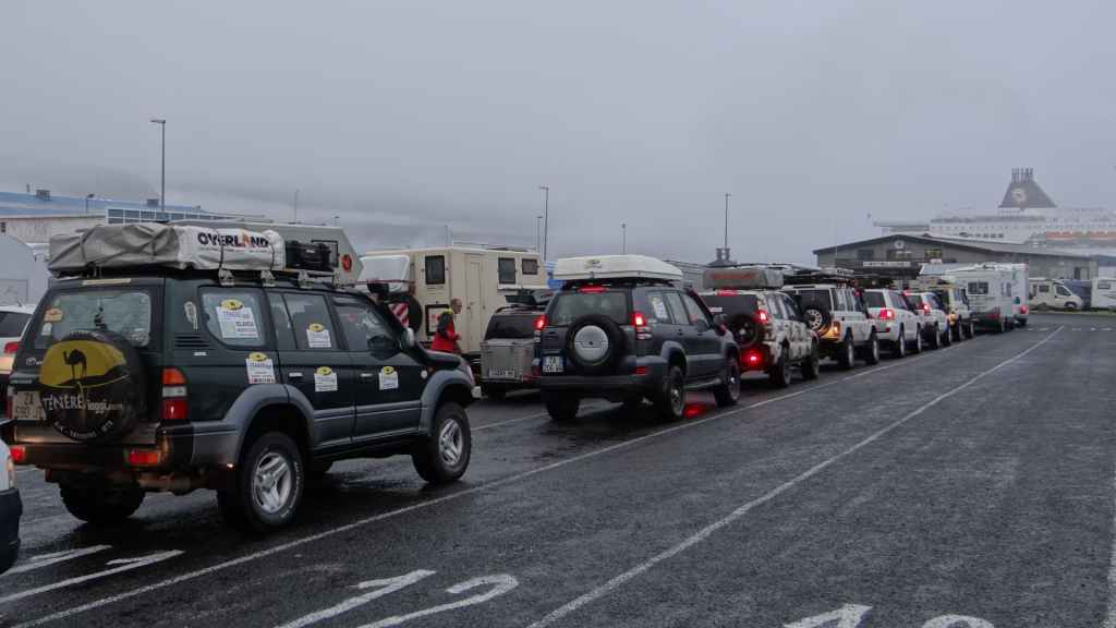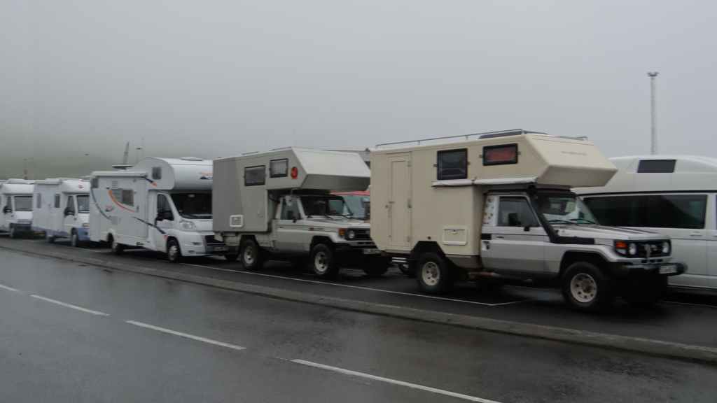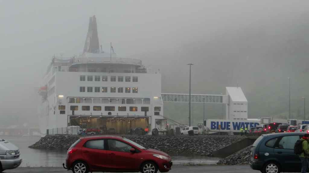 Il pleut toujours et encore quand nous nous réveillons à 6h30. Après le petit-déjeuner et la préparation de nos sacs pour le bateau, nous rejoignons à deux pas de notre parking les nombreux véhicules déjà prêts à embarquer. L’organisation est moins bonne qu’au Danemark et je mets 2h45 pour arriver dans la cale du bateau Nörrona.