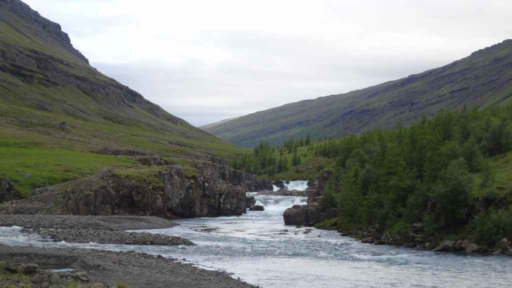 Après le repas de midi, nous revenons par le même chemin à Egilsstadir, où nous décidons de faire de nouvelles courses pour tenir en autonomie les 5 prochains jours. Nous partons en direction de l’une des cascades les plus hautes d’Islande, la Strutsfoss que nous irons voir demain. Vers 18h30, nous stationnons notre véhicule sur le parking, là où nous allons passer la nuit. (GPS : N64°55.392 : E 15°03.296)