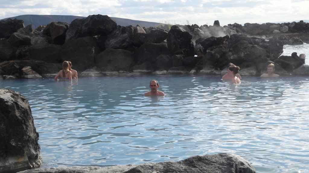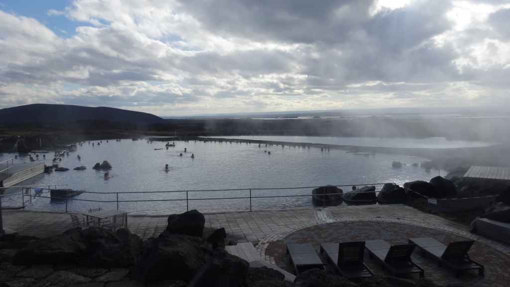 Au retour, nous entamons un tour du lac par la N1 et continuons vers les bains géothermiques de Jardbodin avec une eau à 35°C de couleur turquoise. Plus petit que le célèbre Blue Lagoon, le prix d’entrée est également 2 fois plus petit (45 €/pers au Blue Lagoon) .