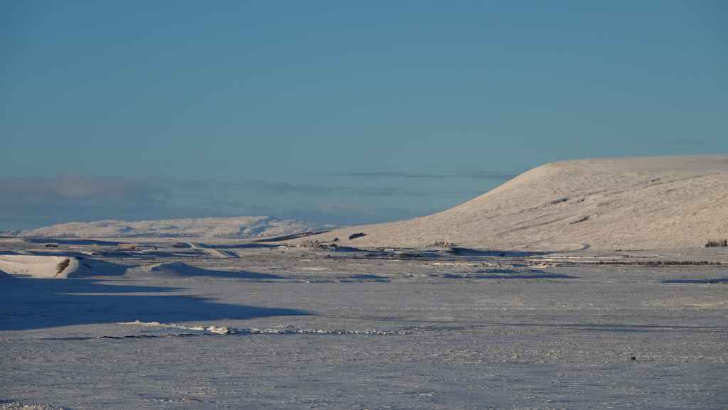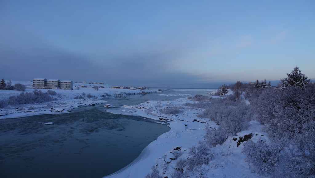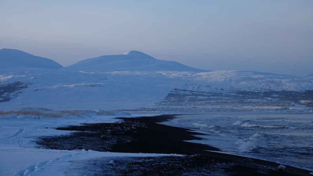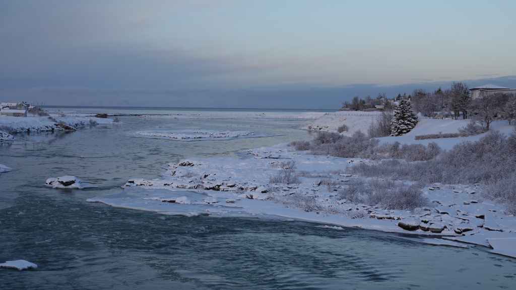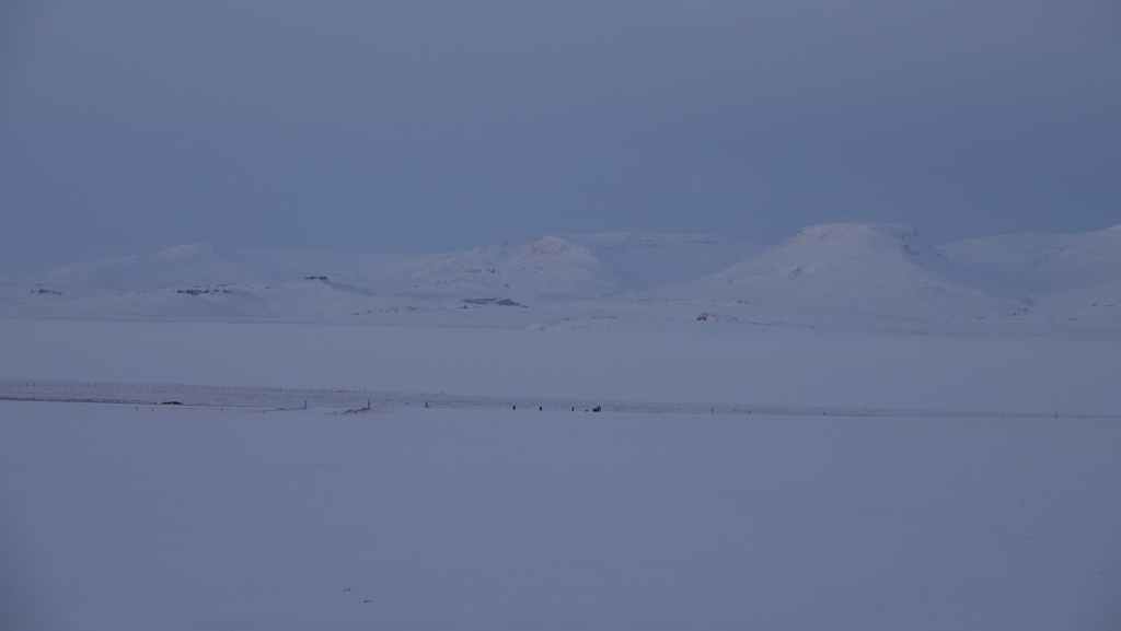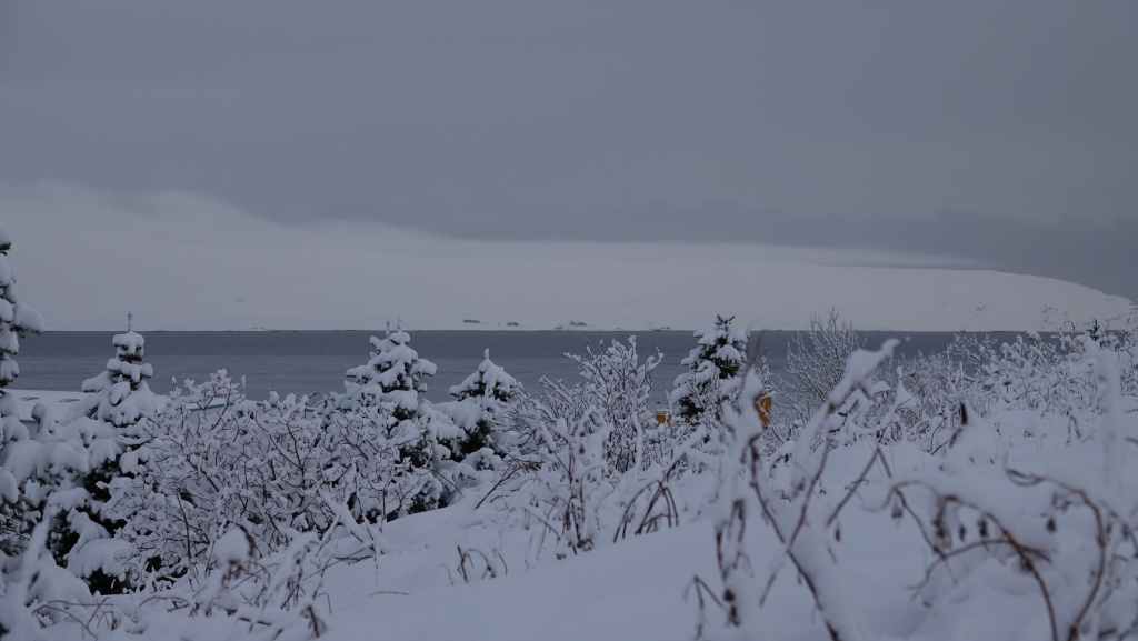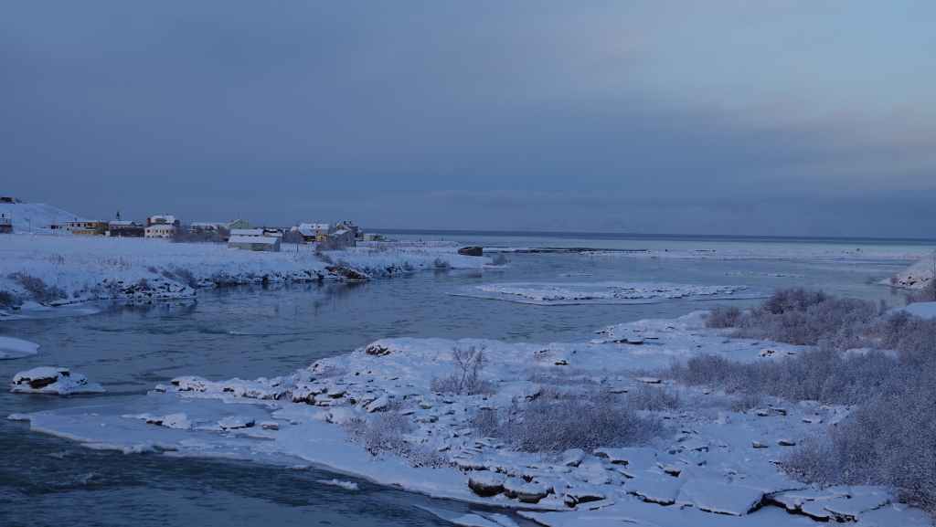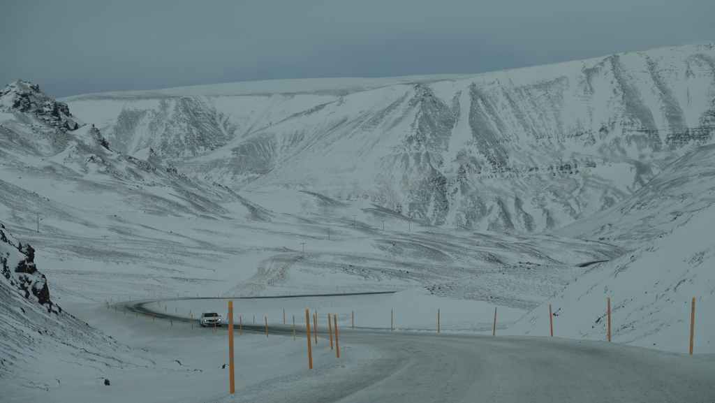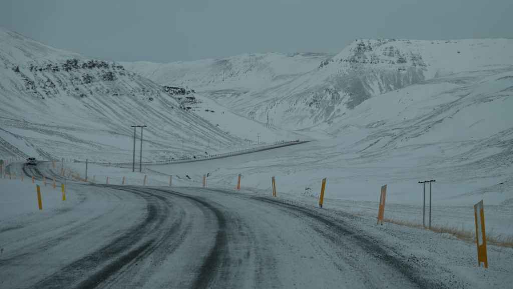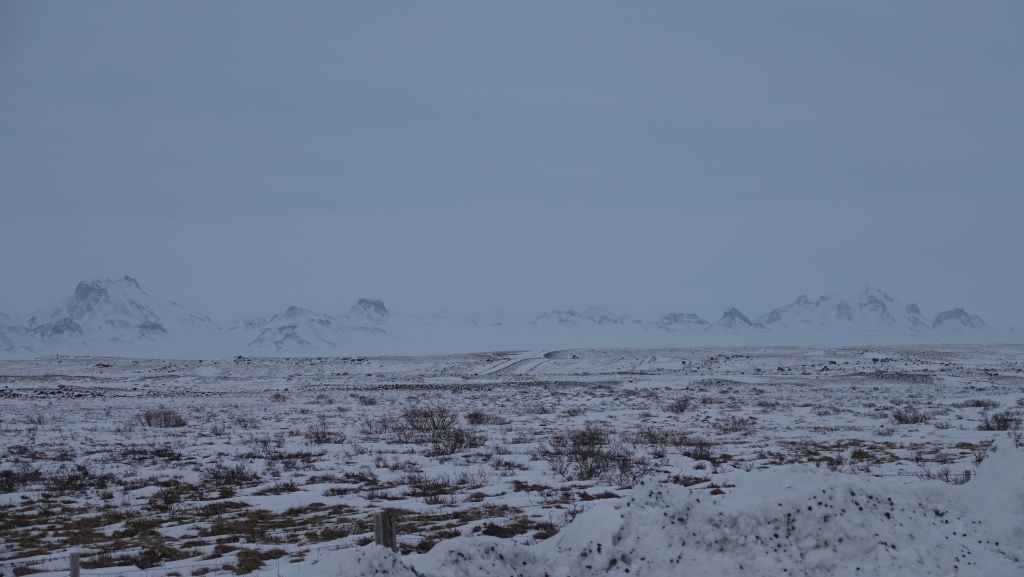 Nous partons donc vers le sud jusqu’à l’entrée de la capitale pour prendre la route N36 puis la N361. La météo n’est pas des plus paisible avec pas mal de vent et quelques chutes de neige en revenant à l’intérieur des terres. Les routes sont ici beaucoup plus fréquentées par les touristes en bus ou en voitures, dont certains, non habitués à conduire sur la neige, roulent au pas, contrairement aux locaux qui eux, nous doublent sans aucune hésitation !