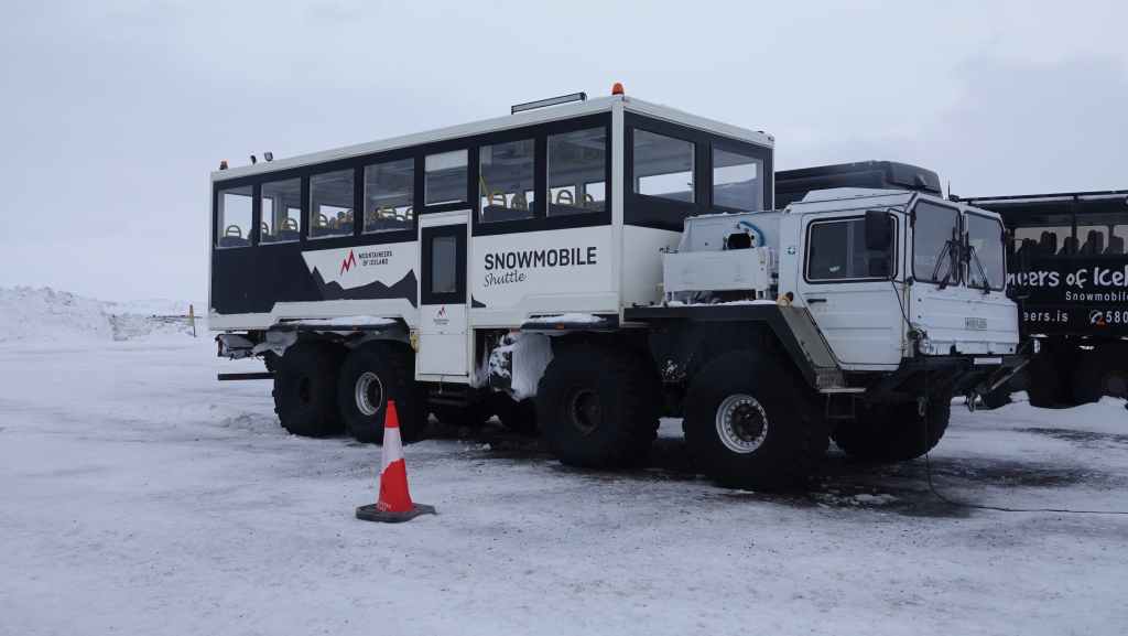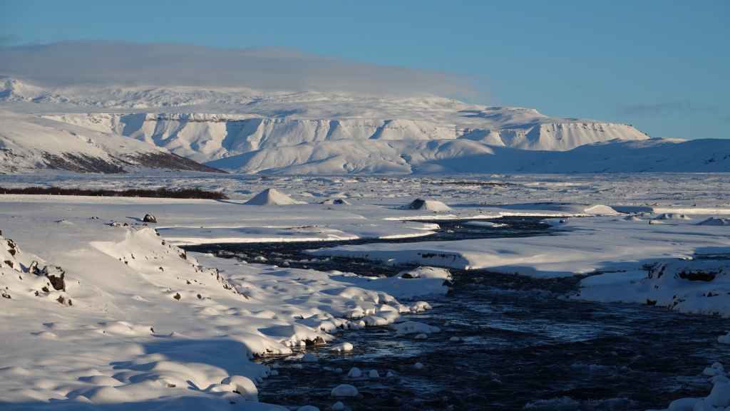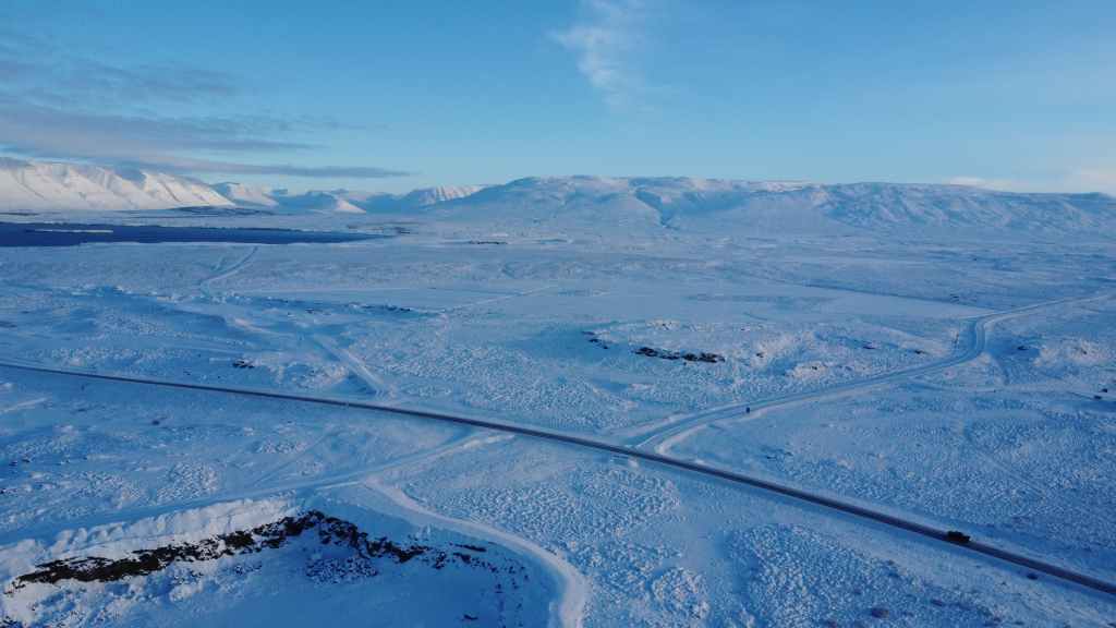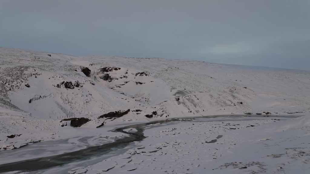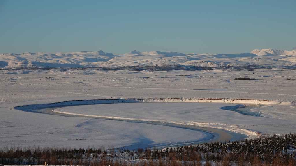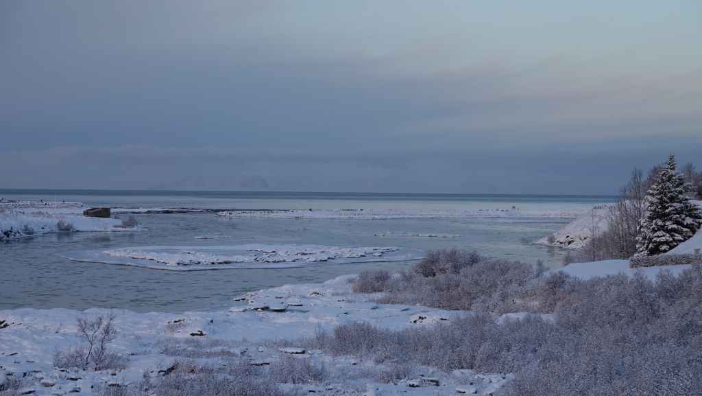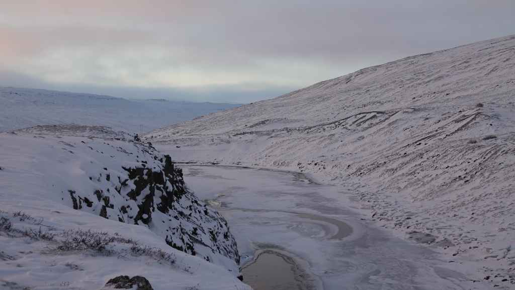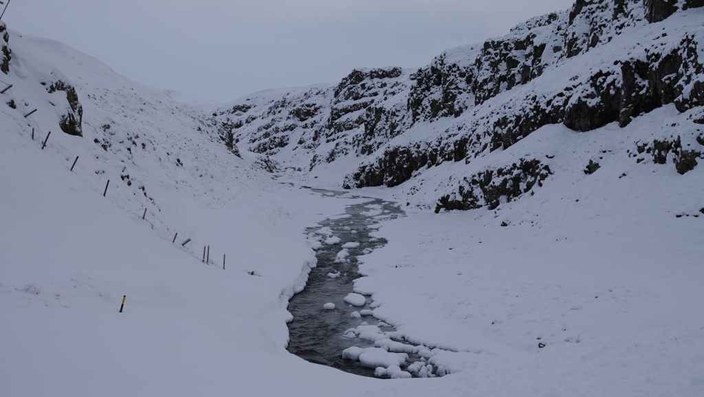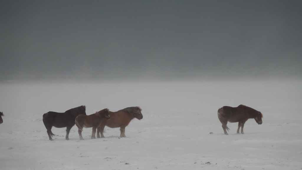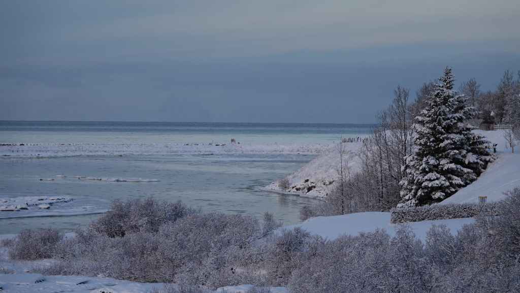 Nous partons donc vers le sud jusqu’à l’entrée de la capitale pour prendre la route N36 puis la N361. La météo n’est pas des plus paisible avec pas mal de vent et quelques chutes de neige en revenant à l’intérieur des terres. Les routes sont ici beaucoup plus fréquentées par les touristes en bus ou en voitures, dont certains, non habitués à conduire sur la neige, roulent au pas, contrairement aux locaux qui eux, nous doublent sans aucune hésitation !