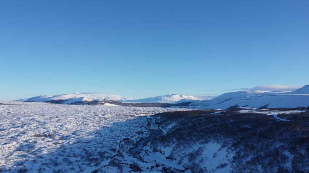 C’est à Varmaland que nous bifurquons vers la gauche en prenant la N50. Plus loin, nous observons les sources bouillonnantes de Deildartunguhver. Il est possible de se baigner dans le bâtiment adjacent et des serres sont chauffées par les eaux chaudes. Cette source géothermique fournit également de l’eau chaude à plusieurs villes voisines, dont Borgarnes et Akranes, via un réseau complexe de conduites géothermiques.