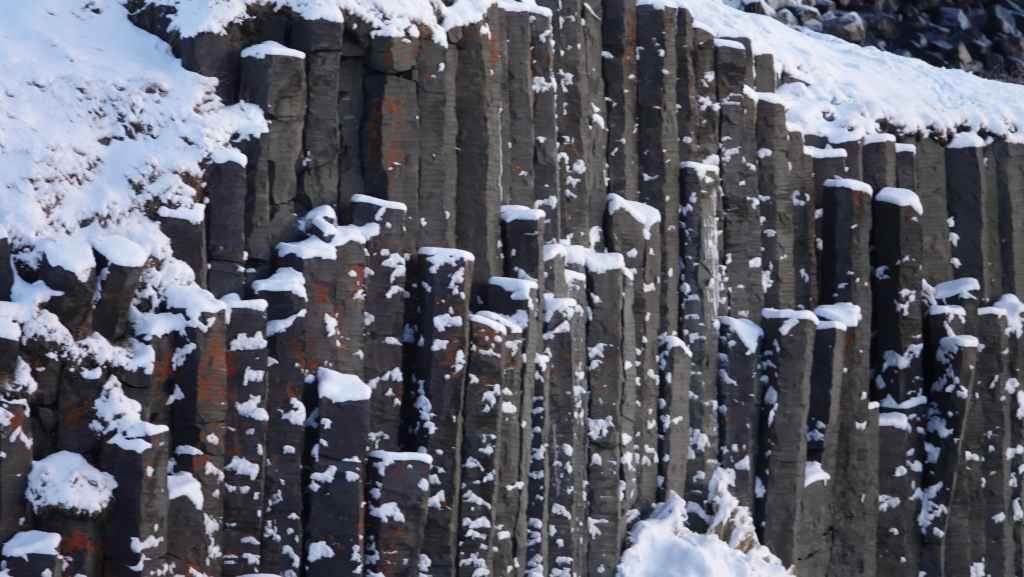 Puis on repart un peu vers le nord pour rejoindre Hofsos. Hormis, la petite église et quelques maisons anciennes, il y a des orgues de basalte ou colonnes basaltiques, fruits de la compression de roches volcaniques. On aperçoit aussi les falaises de l’île Malmey.