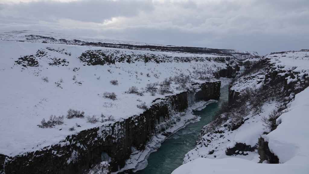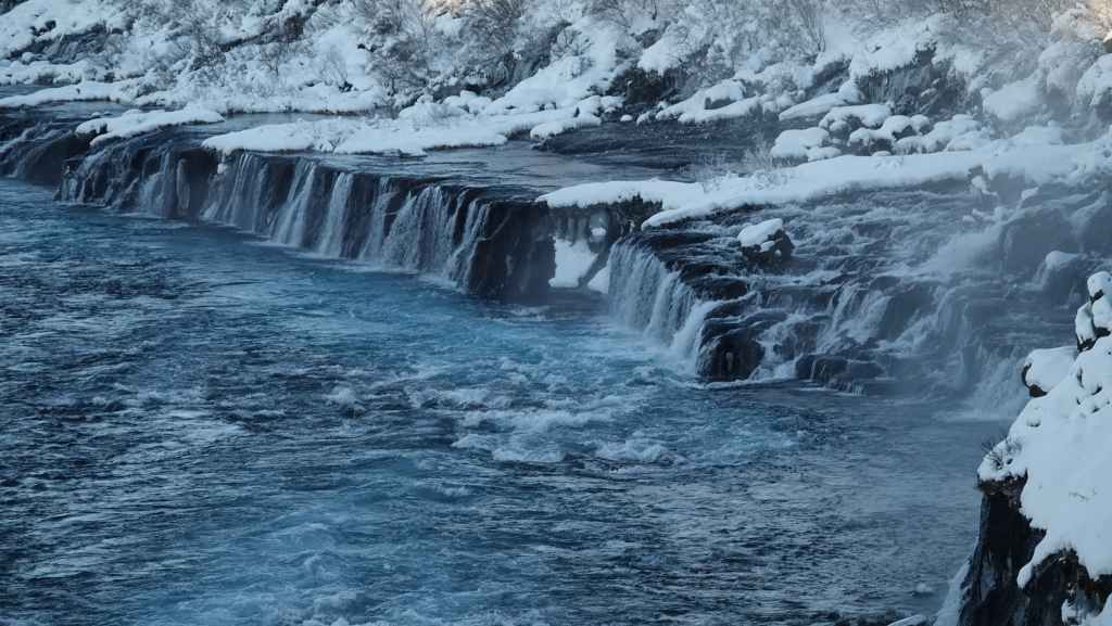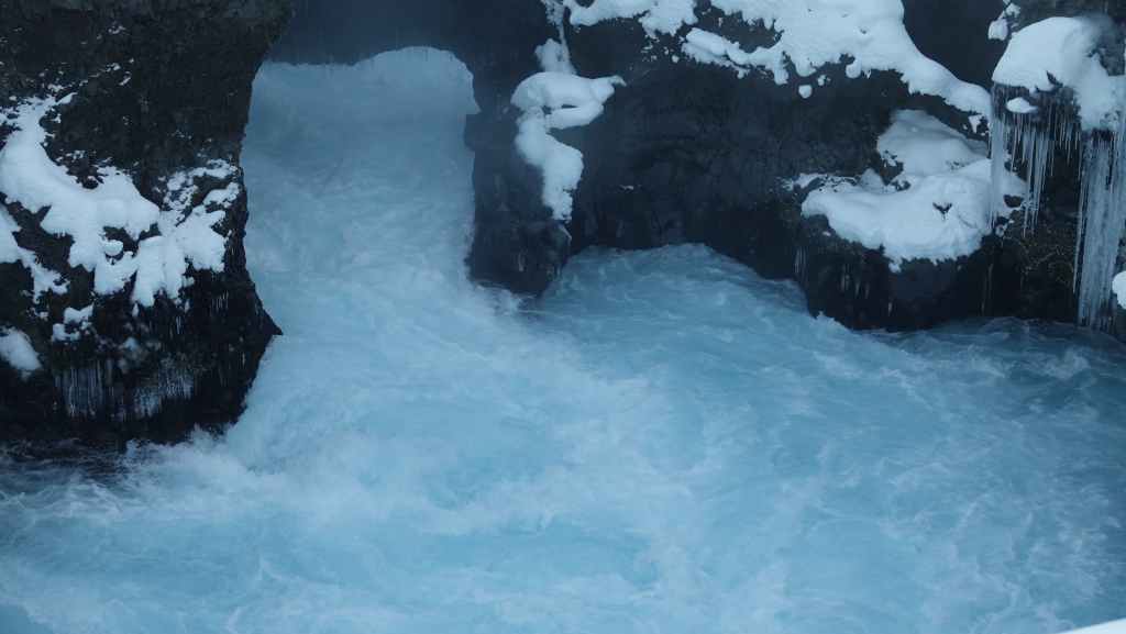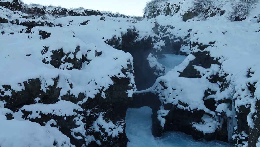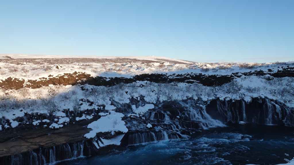 On passe ensuite à Reykholt avec sa jolie chapelle et son grand hôtel puis on s’arrête aux chutes de Barnafoss et Hraunfoss. On pique-nique sur le parking.
