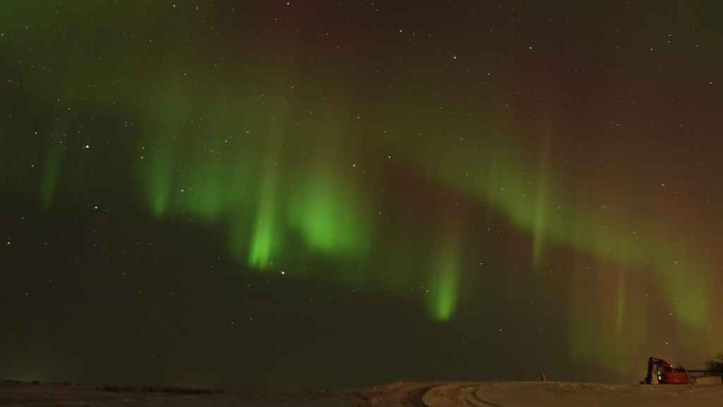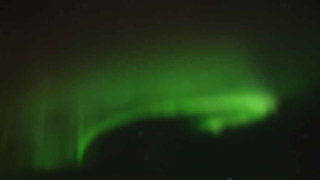Dans la soirée, une alerte « aurore boréale » s’annonce sur mon smartphone pour 22h00… mais vu la météo du jour, c’est assez improbable. Mais on laisse un store de fenêtre ouvert au cas où. Et quand Sylvie jette un œil à l’extérieur, son cri de joie me fait bondir sur l’appareil photo. Je déplie le pied, on s’habille chaudement et on sort pour admirer ce merveilleux spectacle… Les aurores sont d’une intensité exceptionnelle (pour nous en tout cas !) et elles « dansent » à vue d’œil.