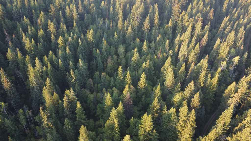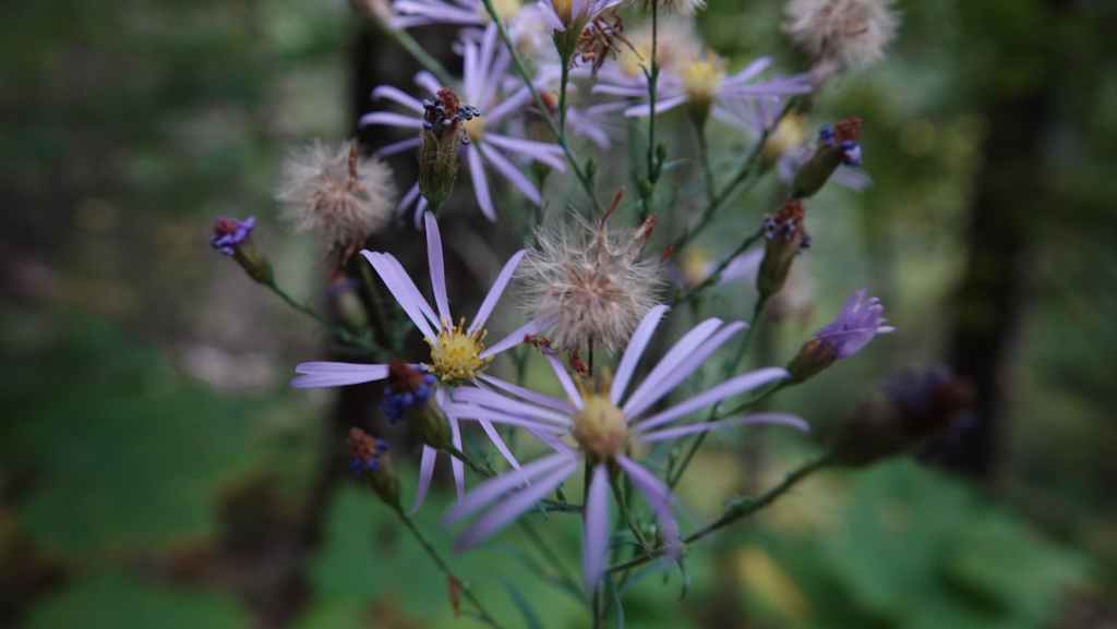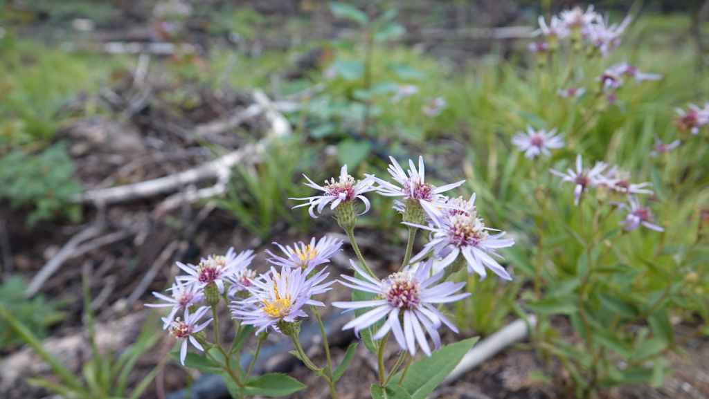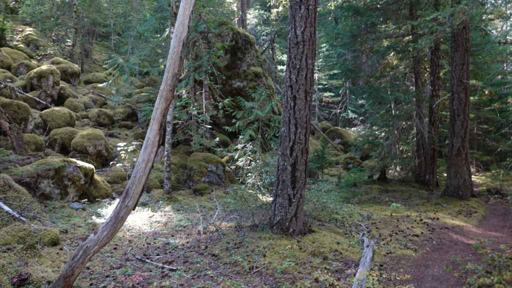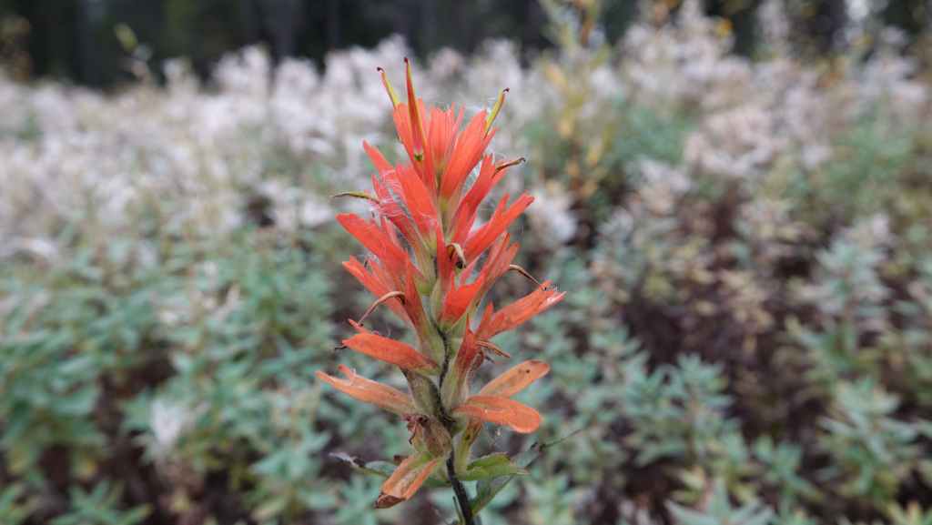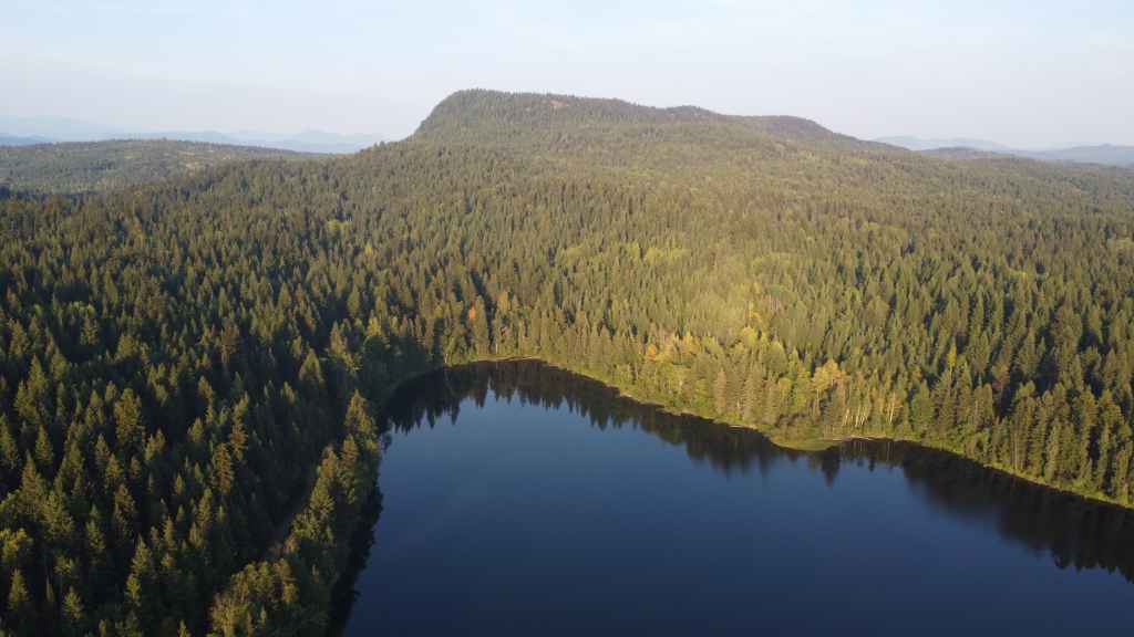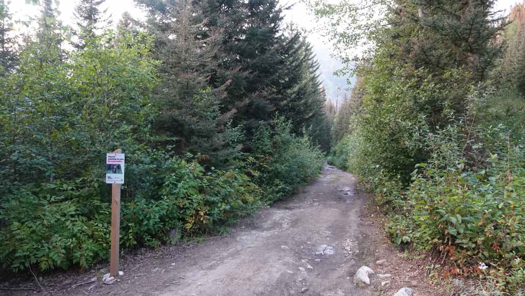 On débute la rando par un long faux plat montant sur une piste assez large. Comme nous sommes au pays des ours, on à mis à la ceinture le spray de gaz poivré obligatoire en cas d’attaque. On a eu la chance d’en trouver une oubliée dans le pick-up par les derniers locataires. Après un bon moment de marche inintéressante, on prend enfin de la hauteur, toujours dans la forêt pour rejoindre une zone humide.