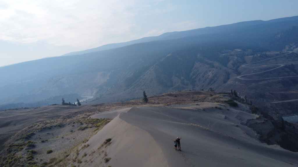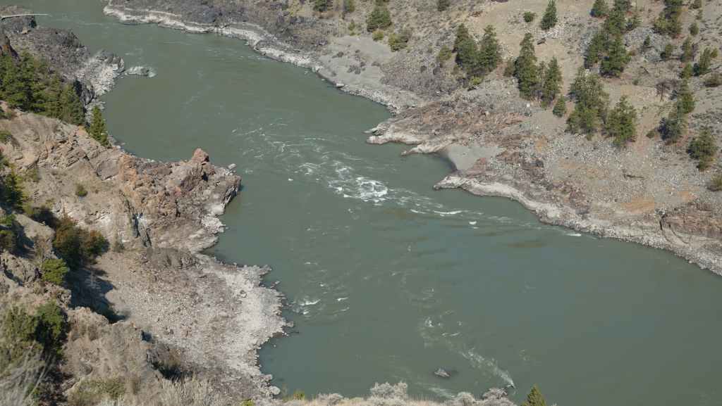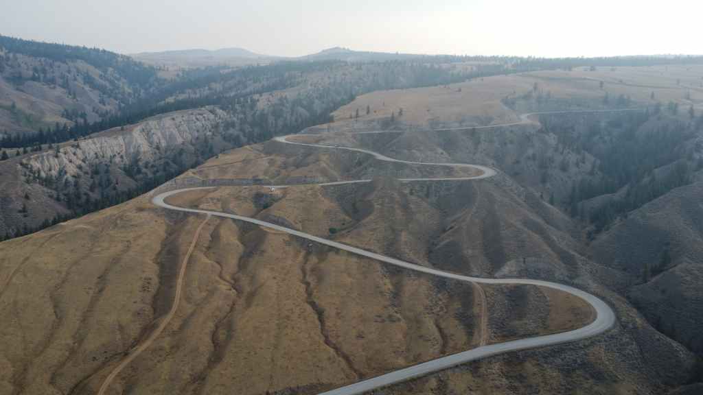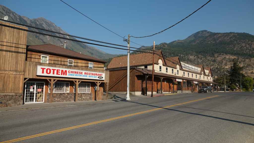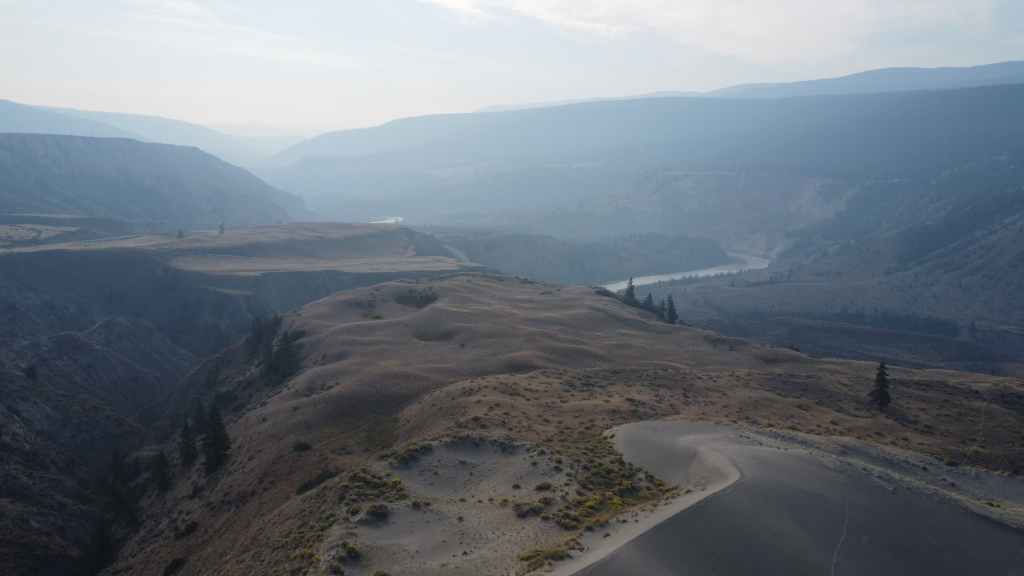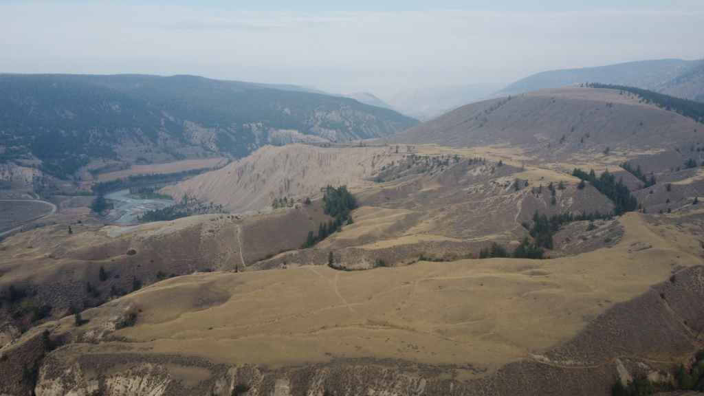 Nous nous rendons d’abord dans la petite ville de Lillooet et son supermarché puis repartons en traversant le fleuve Fraser, qui forme un canyon à cet endroit dans un paysage semi-désertique.