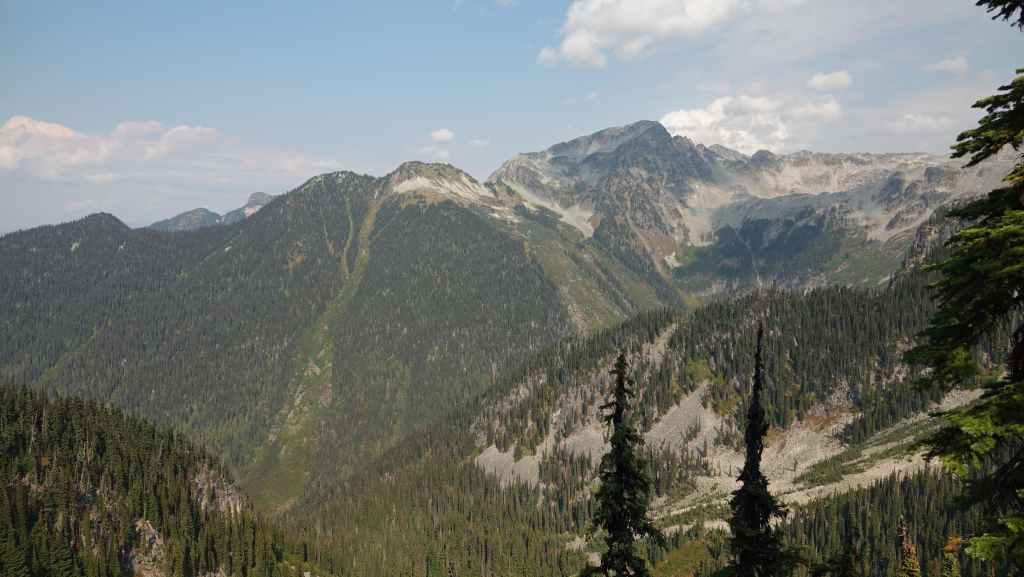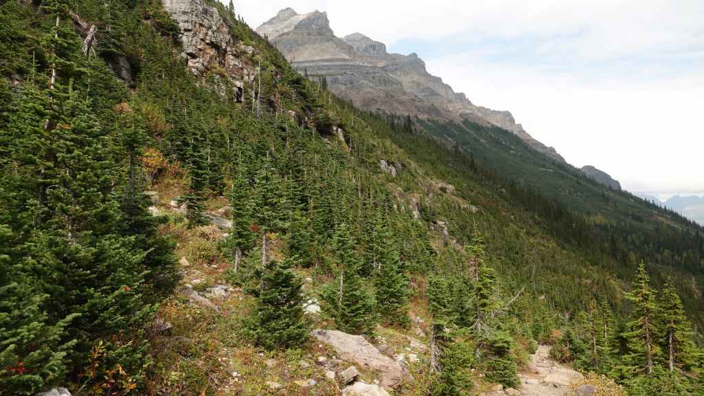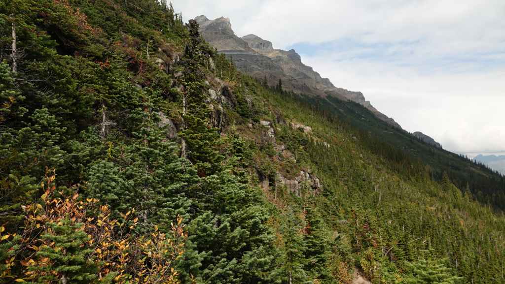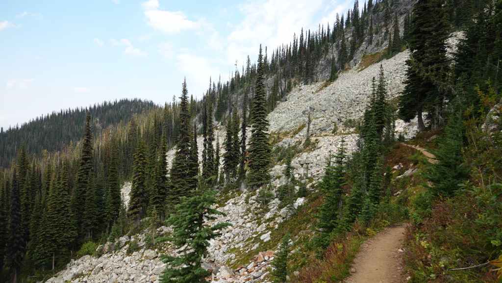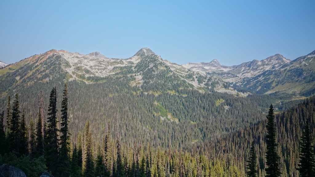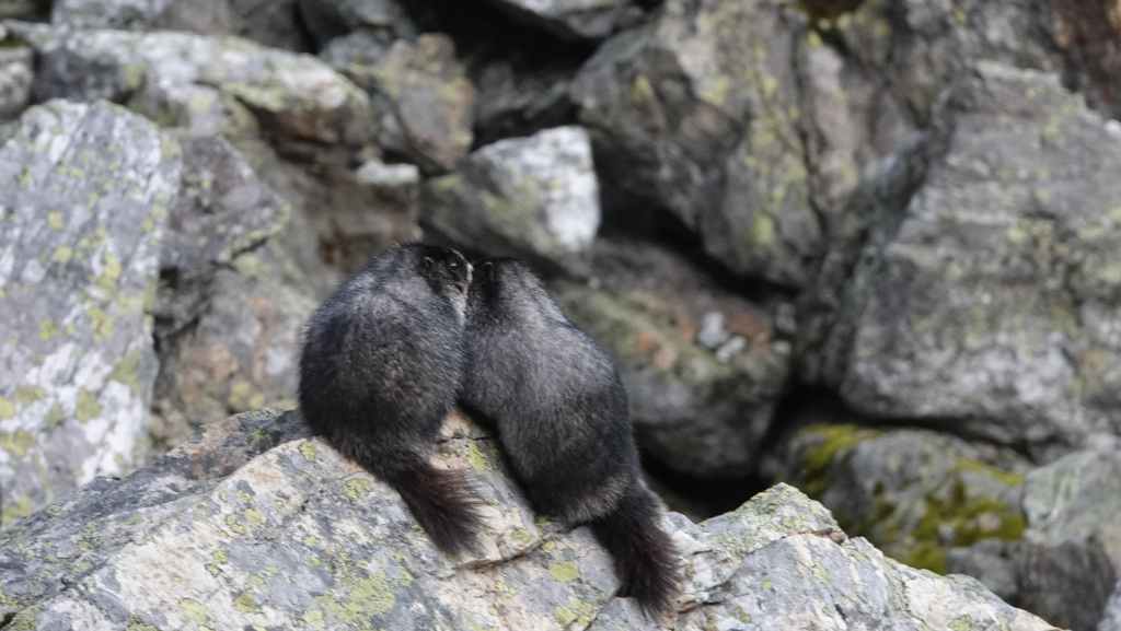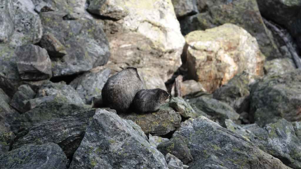 La randonnée se passe en grande partie en zone forestière mais de temps à autre, nous avons de très jolies vues sur les sommets proches et aussi plus lointains. On traverse également des éboulis où sont parfois visibles des marmottes et des picas. On espère toujours apercevoir un ours dans des zone herbeuses…