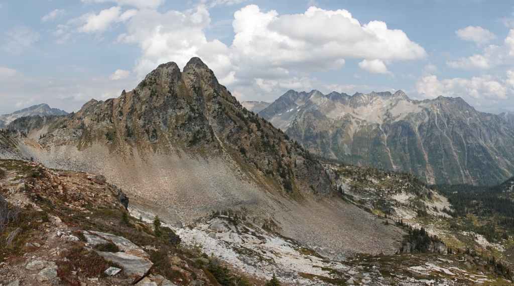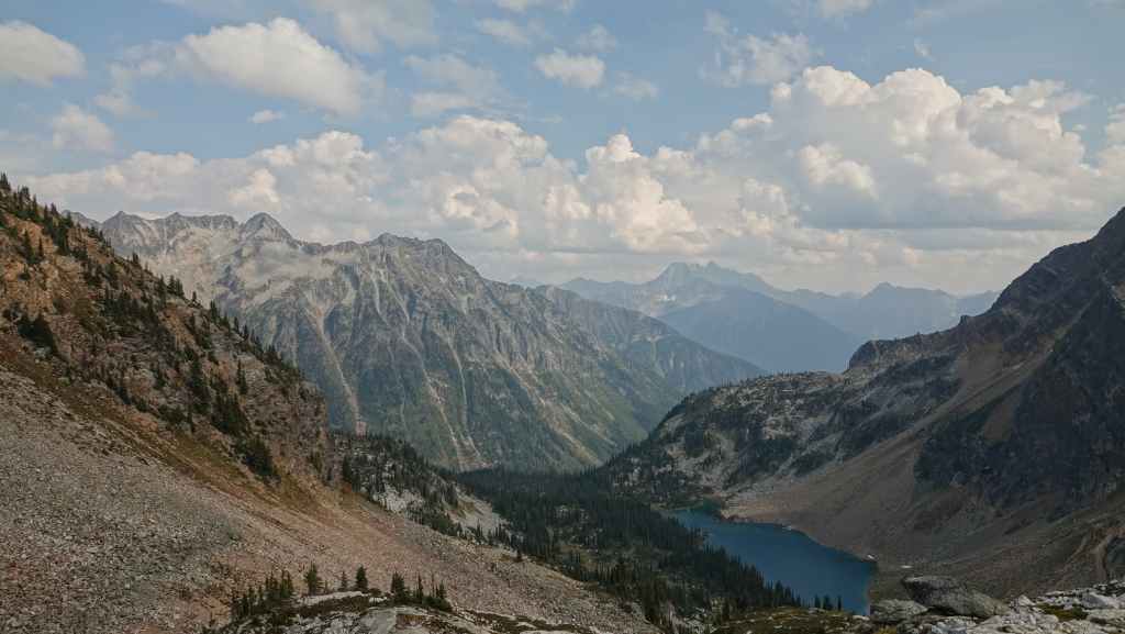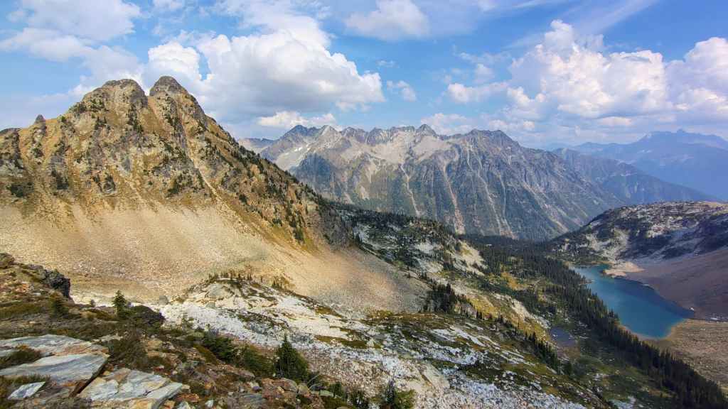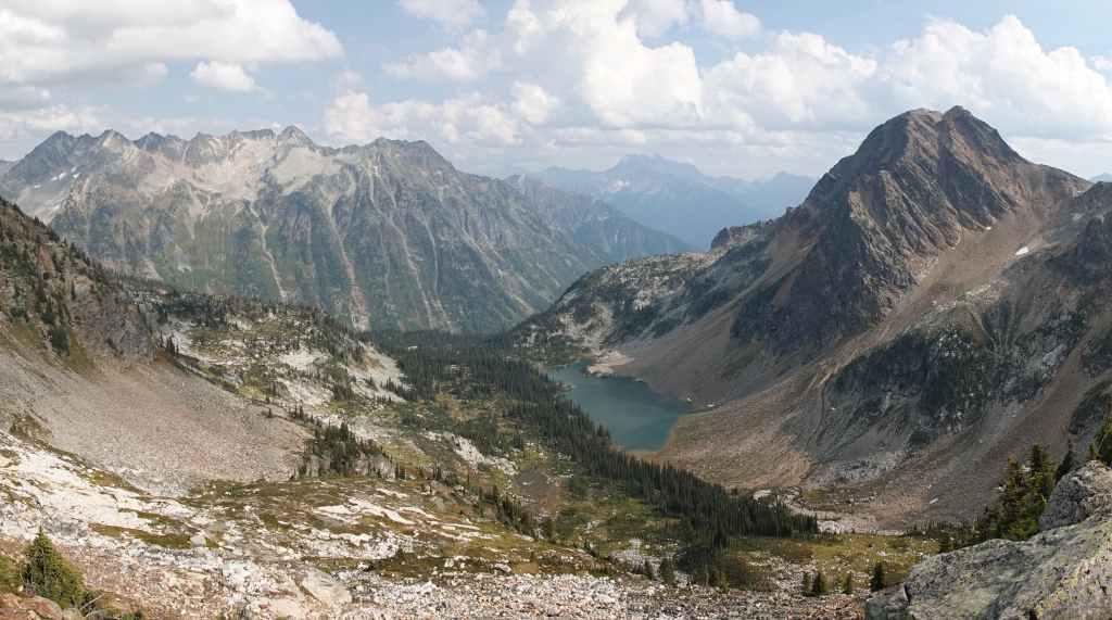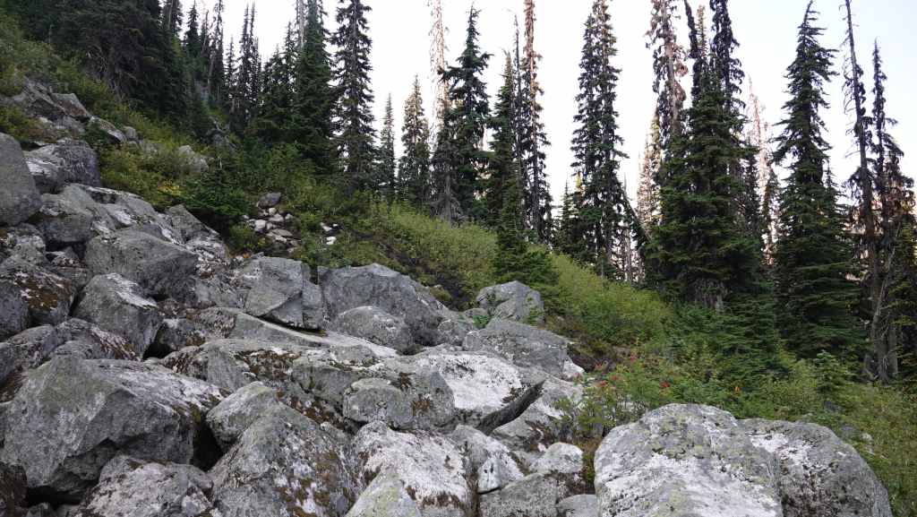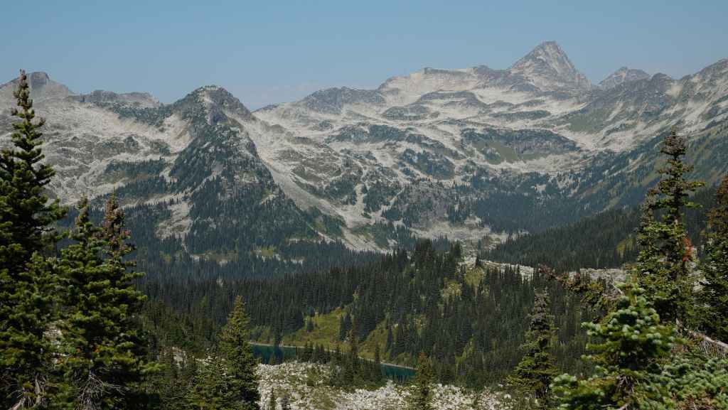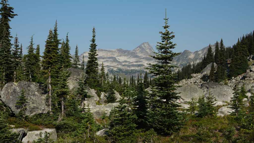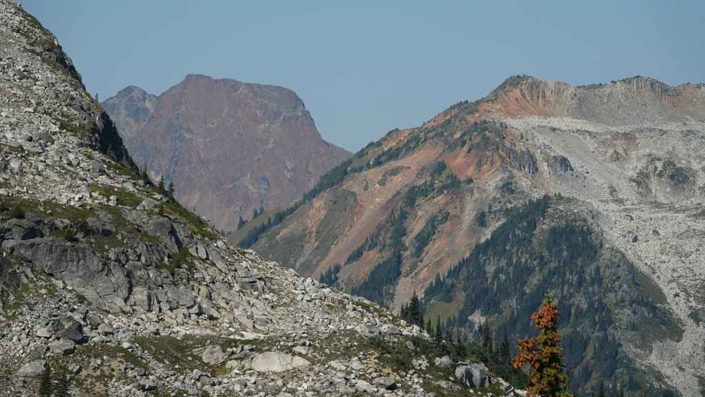 La randonnée se passe en grande partie en zone forestière mais de temps à autre, nous avons de très jolies vues sur les sommets proches et aussi plus lointains. On traverse également des éboulis où sont parfois visibles des marmottes et des picas. On espère toujours apercevoir un ours dans des zone herbeuses…