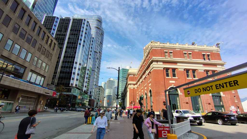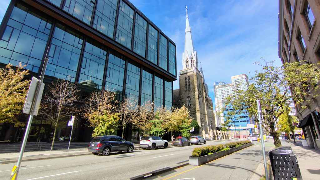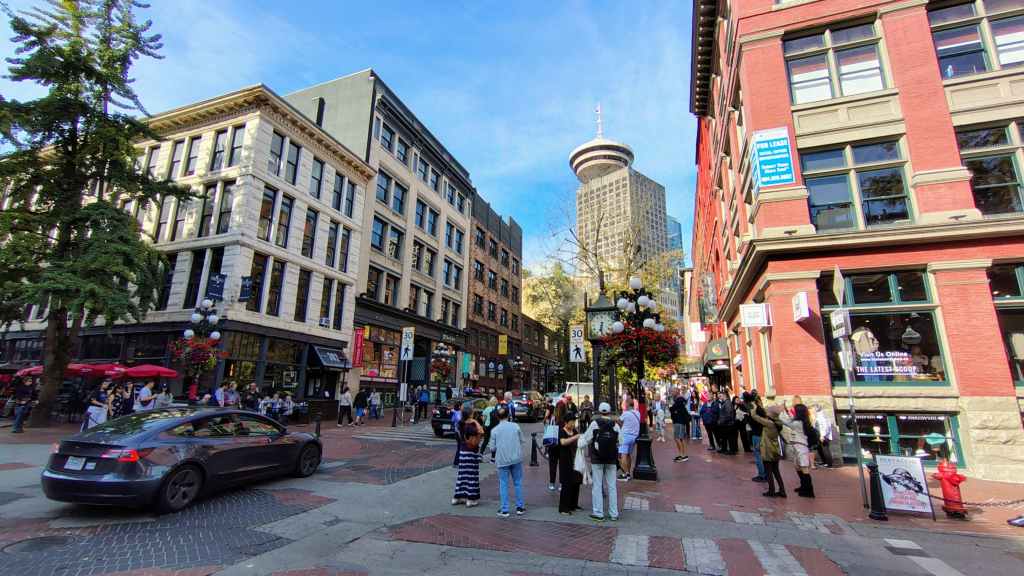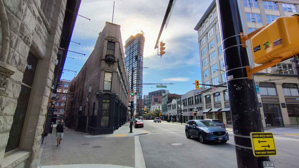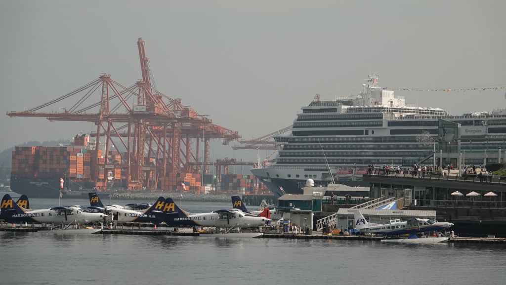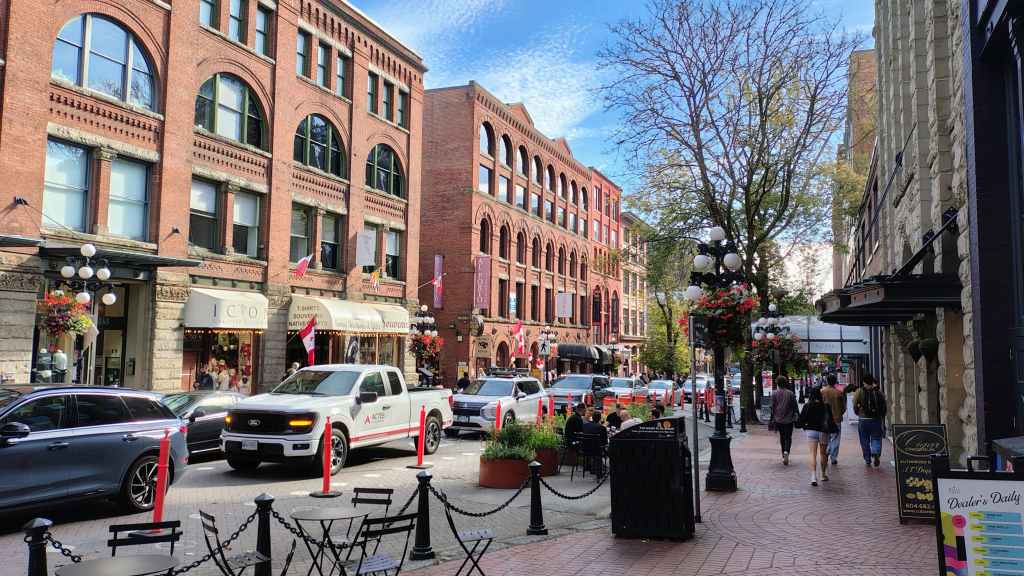 Nous arrivons à l’heure chez Canadream. Tout se passe pour le mieux et la dame de l’accueille accepte de nous appeler un taxi. Comme notre avion décolle à 19h05, nous avons prévu de visiter la ville de Vancouver, pas les quartiers modernes aperçus la veille, mais le centre ancien et le port. Nous avions réservé en amont un lieu de consigne à bagages avec Nannybag, non loin de la station du Skytrain, le métro plus ou moins aérien de Vancouver. Après avoir déposer nos bagages, on part à la découverte de la ville, un mélange de constructions anciennes et buildings en verre. On découvre également une horloge à vapeur qui sonne le carillon de BigBen toutes les demi-heures. Cela attire beaucoup les touristes !