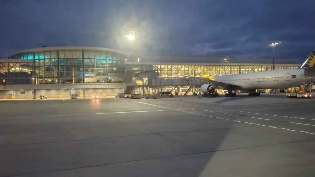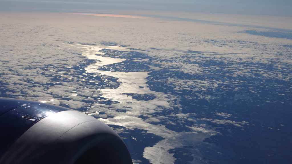 Le survol d’icebergs annonce le passage entre le Groënland et le Nunavut Canadien… puis nous apercevons la baie d’Hudson au nord du Québec (images ci-dessous). Enfin, après nos 7 grosses heures de vol depuis l’Islande, nous atterrissons à Vancouver à l’heure locale de 10h55.