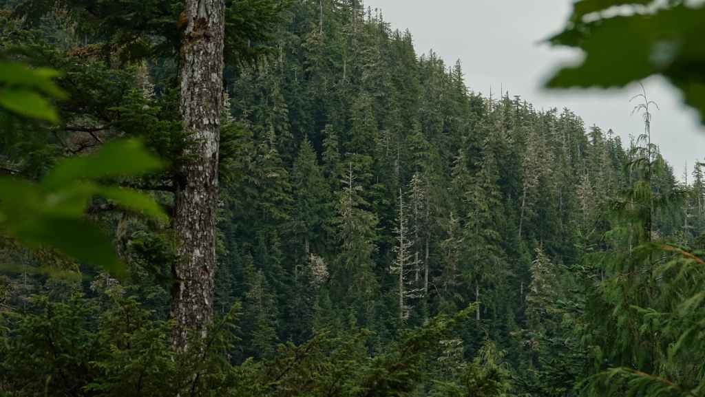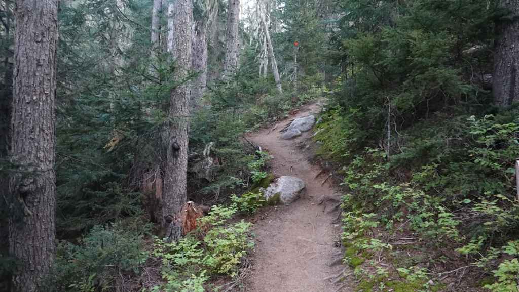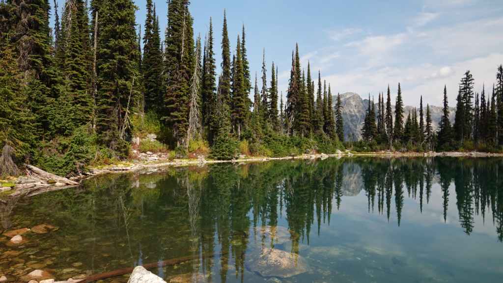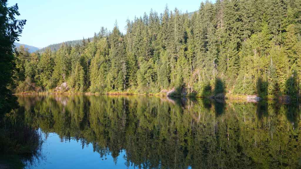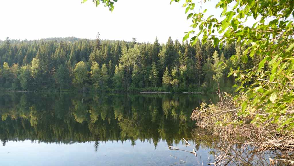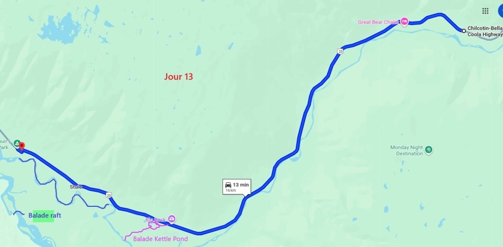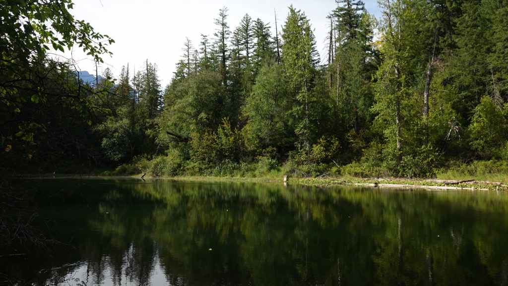 Pour l’après-midi, nous avons prévus une petite balade vers un lac, le Kettle Pond Trail avec une petite rallonge vers l’Atnarko River. À chaque balade, on n’oublie jamais de s’équiper de notre bombe de gaz poivré, on ne sait jamais ! Petite balade sympa de 4 km en forêt mais qui ne présente que peu d’intérêt…