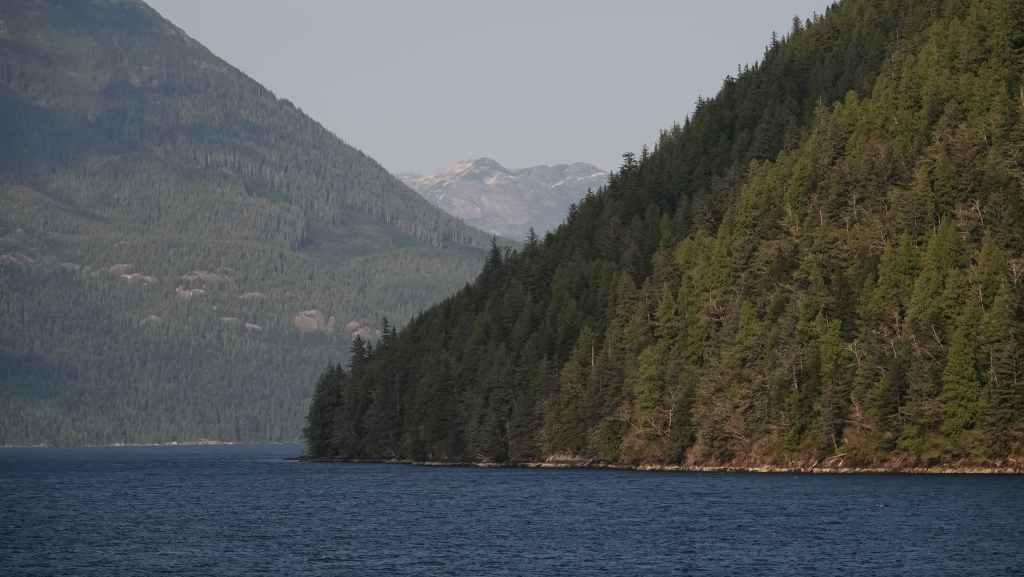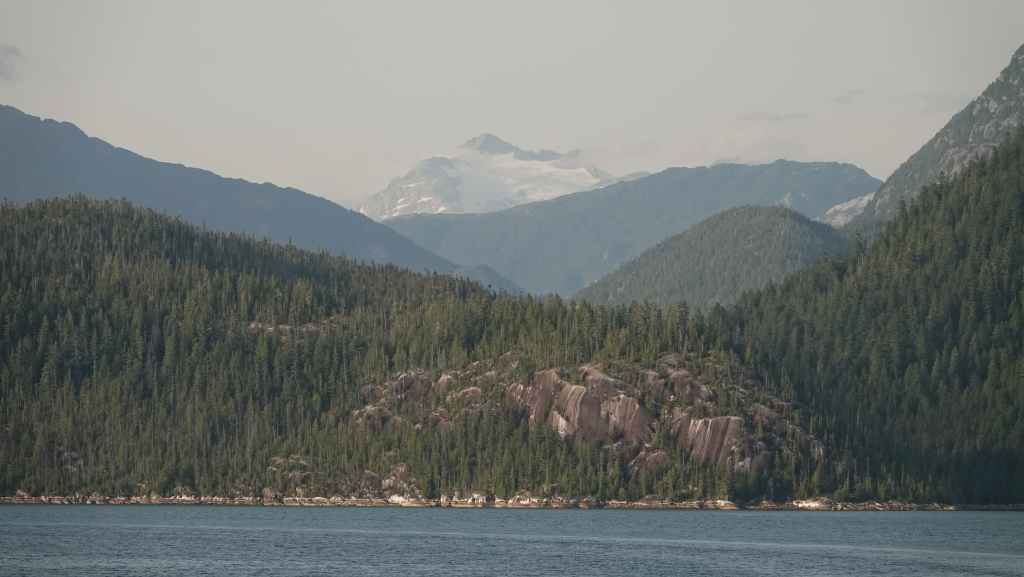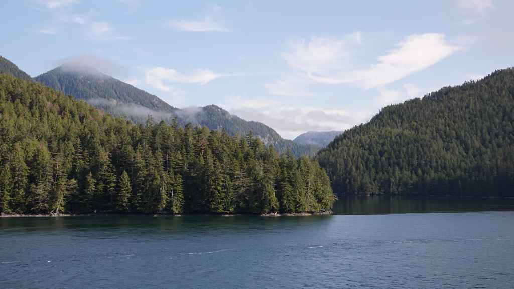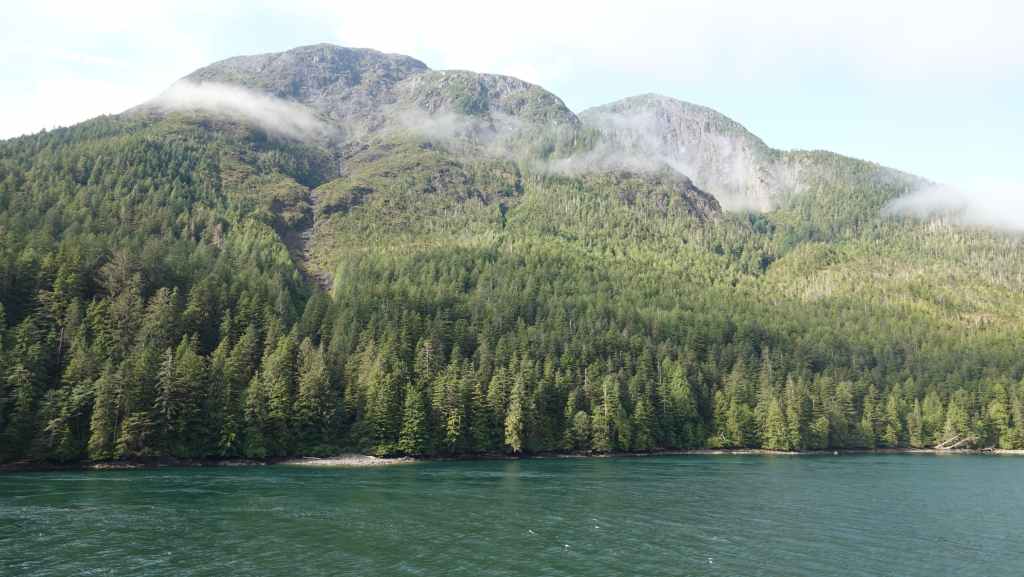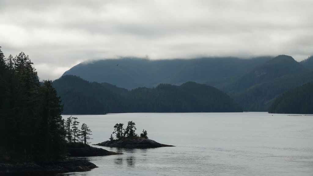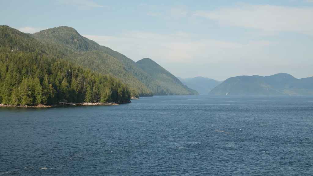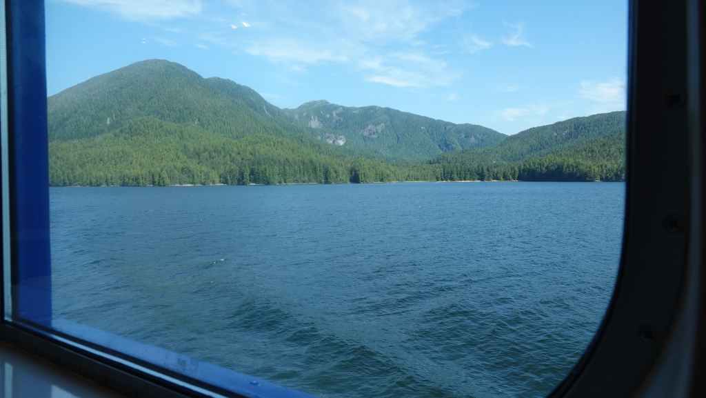 La première semaine fut plutôt mitigée en terme de paysages, entre Vancouver et Prince Rupert où nous avions réservé un ferry pour descendre le « Passage Intérieur« , sorte de canal naturel entre îles et continent parfois large de seulement 1 km, habité par les baleines. Une seule compagnie maritime le permet BC Ferries. Et comme, nous voulions rejoindre la jolie route n°20 à Bella Coola, nous avons dû faire une escale de un jour et demi sur l’île Campbell, au village des « Premières Nations » Bella Bella. Grâce à une belle météo, nous ne l’avons pas regretté.