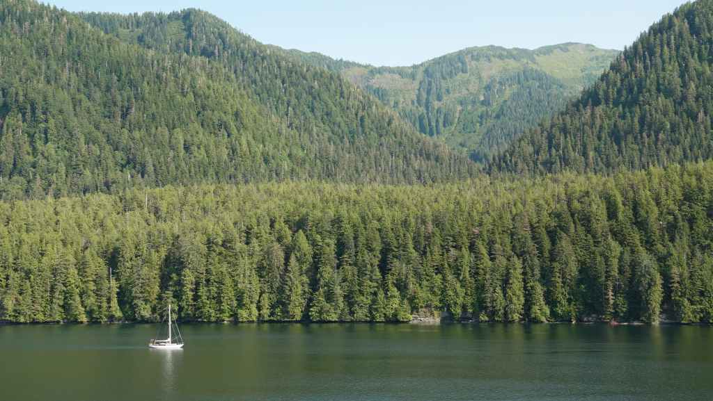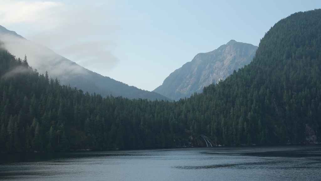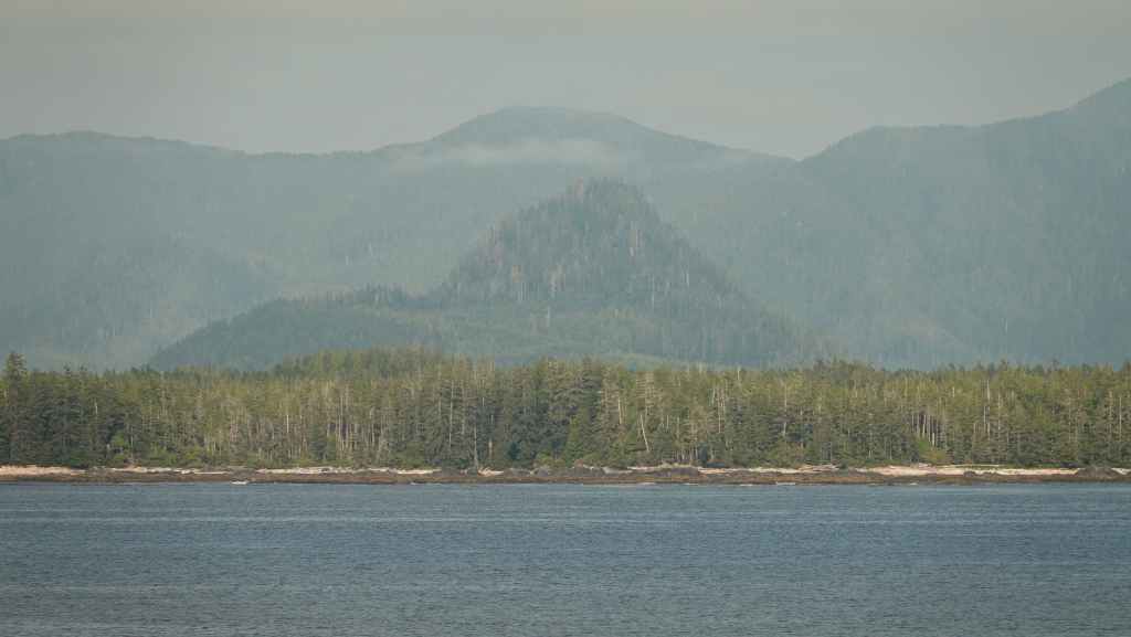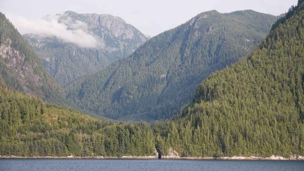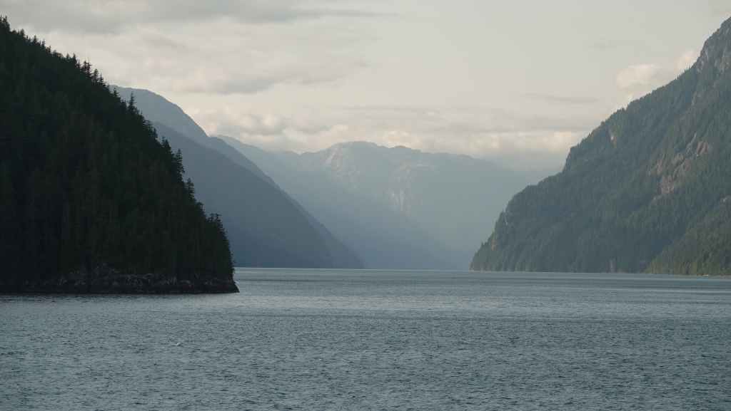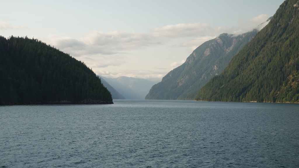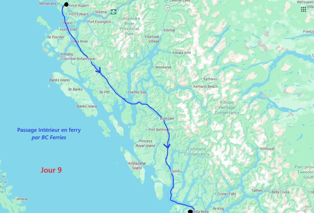 La première semaine fut plutôt mitigée en terme de paysages, entre Vancouver et Prince Rupert où nous avions réservé un ferry pour descendre le « Passage Intérieur« , sorte de canal naturel entre îles et continent parfois large de seulement 1 km, habité par les baleines. Une seule compagnie maritime le permet BC Ferries. Et comme, nous voulions rejoindre la jolie route n°20 à Bella Coola, nous avons dû faire une escale de un jour et demi sur l’île Campbell, au village des « Premières Nations » Bella Bella. Grâce à une belle météo, nous ne l’avons pas regretté.