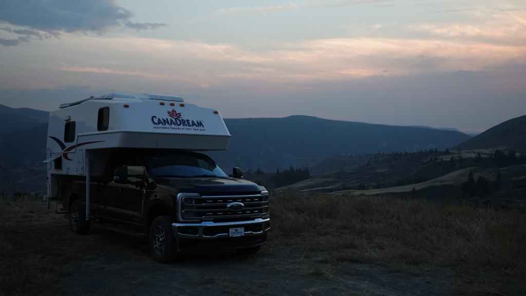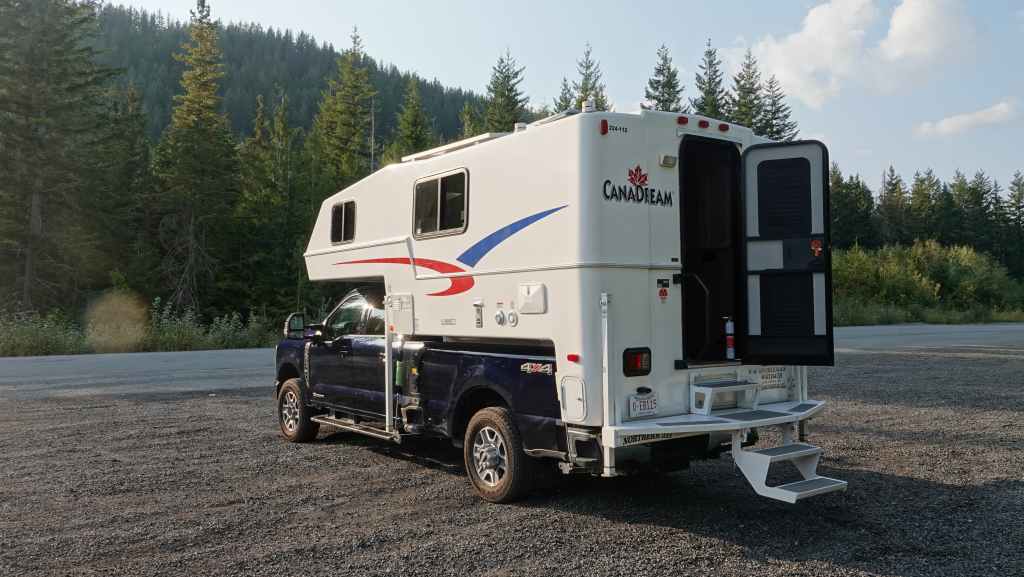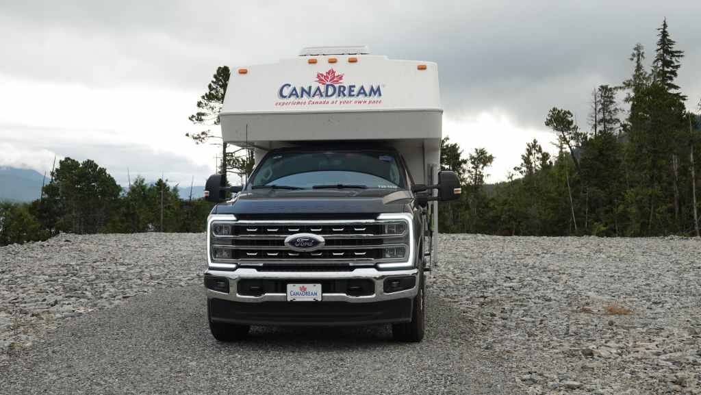 4179 km parcourus sur les 4200 km réservés à CanaDream, le loueur qui nous fourni notre monstre : cellule amovible sur Ford F350 au moteur V8 diesel de 6,7 l de cylindrée et de quelques 499 cv. Mais il faut bien ça pour pousser les 4,5 tonnes de l’ensemble. On pourrait penser que la consommation est gargantuesque mais c’est une moyenne de 14 litres / 100 km, ce qui reste élevé mais très raisonnable pour ce type d’engin.