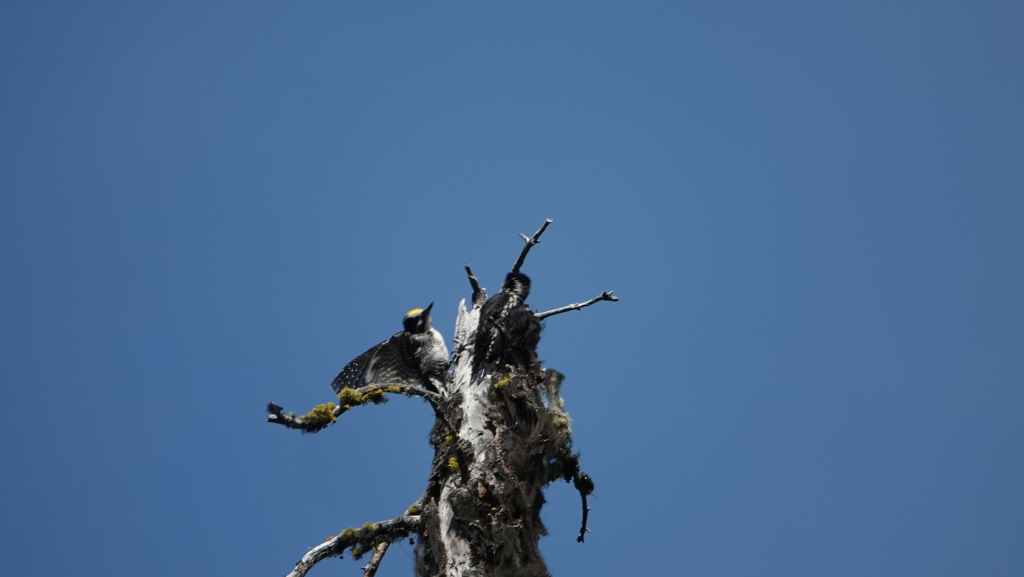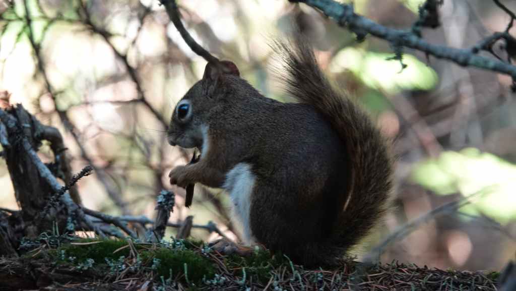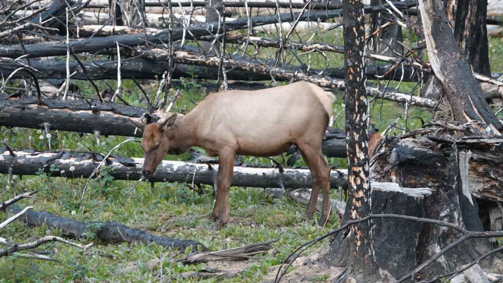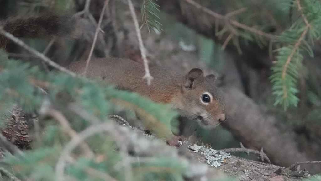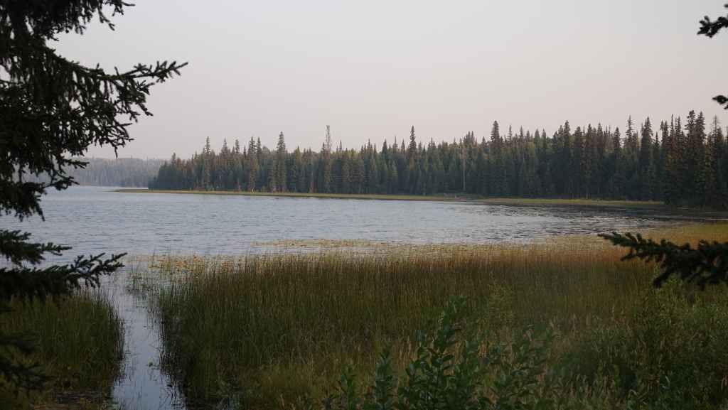 Et c’est reparti sur la 97 appelée aussi la « Cariboo Highway ». On contourne par le sud ouest la grosse ville de Prince George. On arrive sur la route 16, le « Yellow Head Highway » (la route Tête Jaune). pour stopper sur le « Recreation site » de Cobb Lake que l’on atteint par 10 km de bonne piste. Comme on est arrivé assez tôt, je cheche un coin pour poser mon piège-photo… J’en profite pour faire une bonne balade dans la forêt située proche du lac Cobb en espérant débusquer une grosse bête, mais je ne vois toujours que des écureuils.