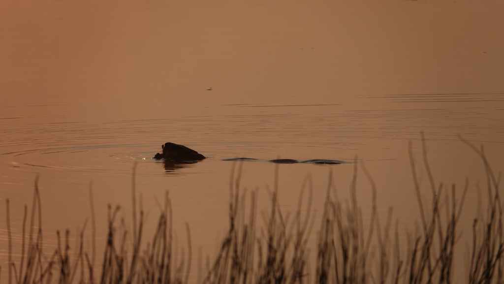 Je commence par aller récupérer le piège dont la carte SD reste désespérément vierge ! Mais alors qu’on se prépare à partir, on aperçoit un gros rongeur au bord du lac : on admire alors pour la première fois un castor peu sauvage en pleine toilette… De bien belles images au lever du soleil !