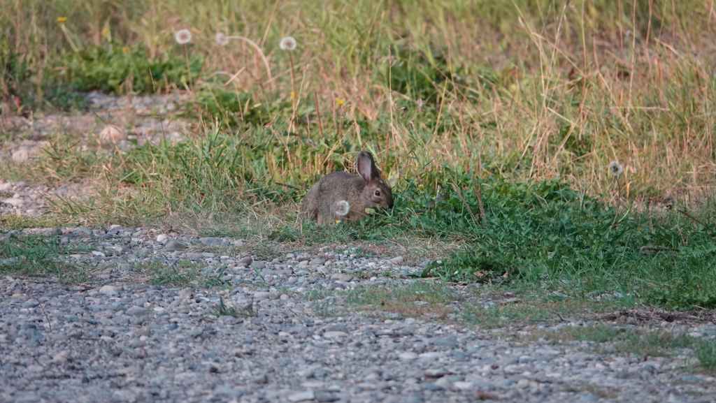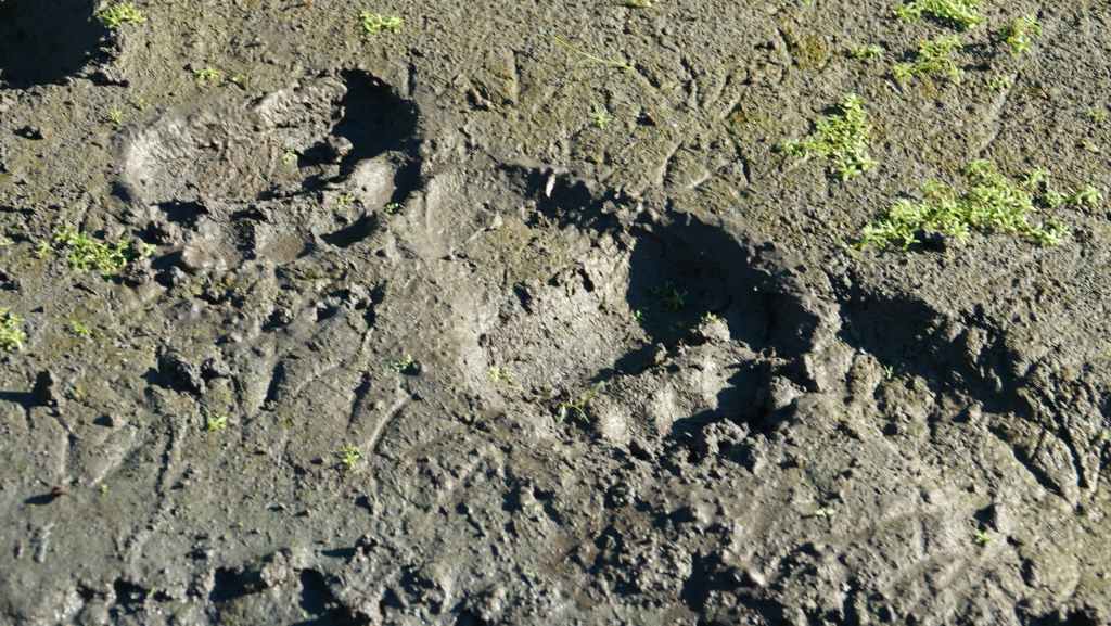 Puis je débusque un lapin (bon, c’est un peu commun je l’admets). On reprend la piste pour rejoindre la route 16 quand on aperçoit au loin une grosse boule noire à 4 pattes… J’avance doucement en espérant ne pas déranger mais l’animal avance lui aussi et bifurque à gauche dans la forêt. Je m’arrête à cet endroit en espérant qu’il soit resté à proximité ? Mais non, il a filé…