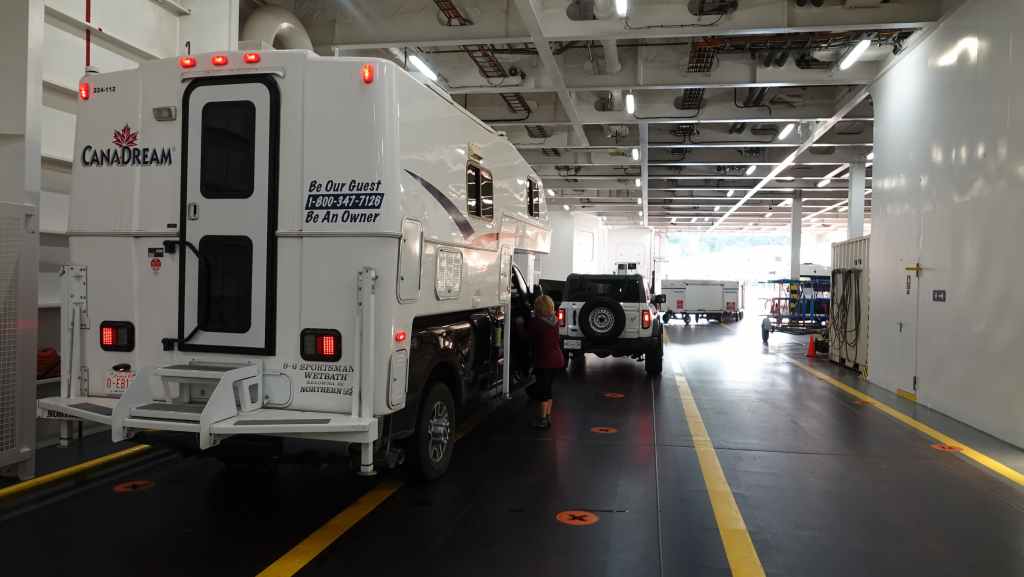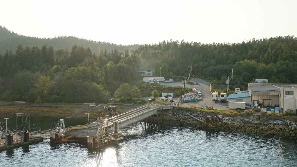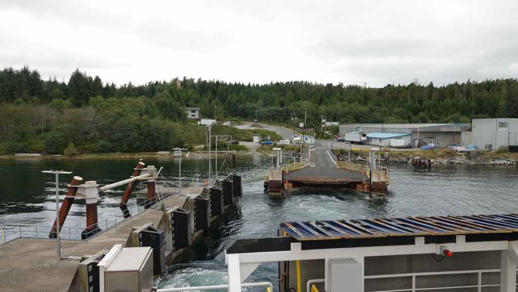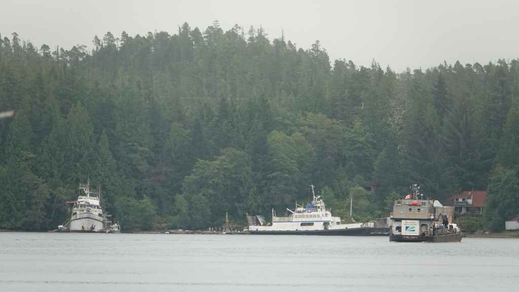 Lever très matinal puisque nous devons embarquer dans le ferry pour Bella Bella à partir de 6h00 pour un départ prévu à 7h30… l’organisation est plutôt brouillonne. et comme nous débarquons sur l’île Campbell, nous embarquons dans les derniers… En fait, nous ne serons que 2 véhicules à faire étape à Bella Bella, tous les autres allant jusqu’à Port Hardy sur l’île de Vancouver.