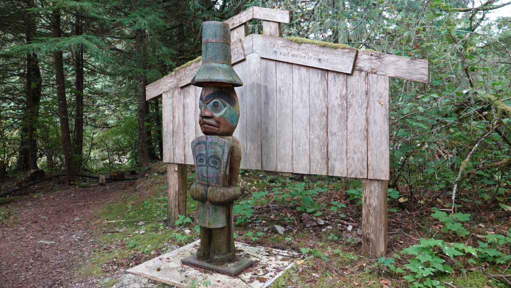 Nous avons fait étape à Bella Bella pour prendre une correspondance de ferry pour rejoindre le continent à Bella Coola mais le prochain bateau ne passe que le lundi à 14h30 : on a donc 1 jour et demi à combler dans cette île presque inaccessible où il n’y a pas grand chose à faire !