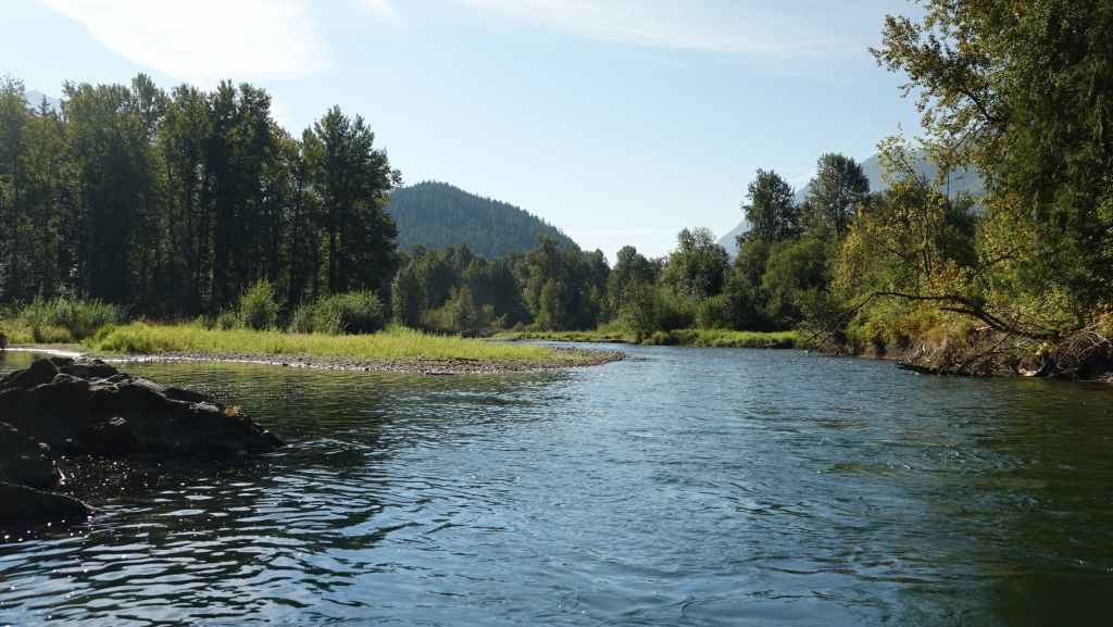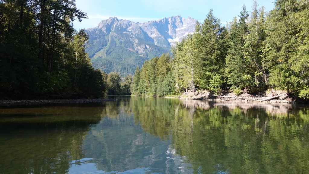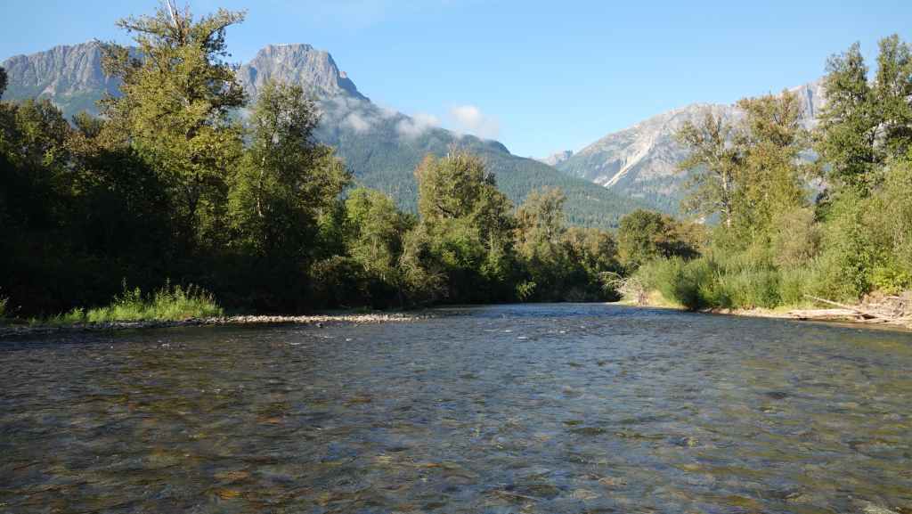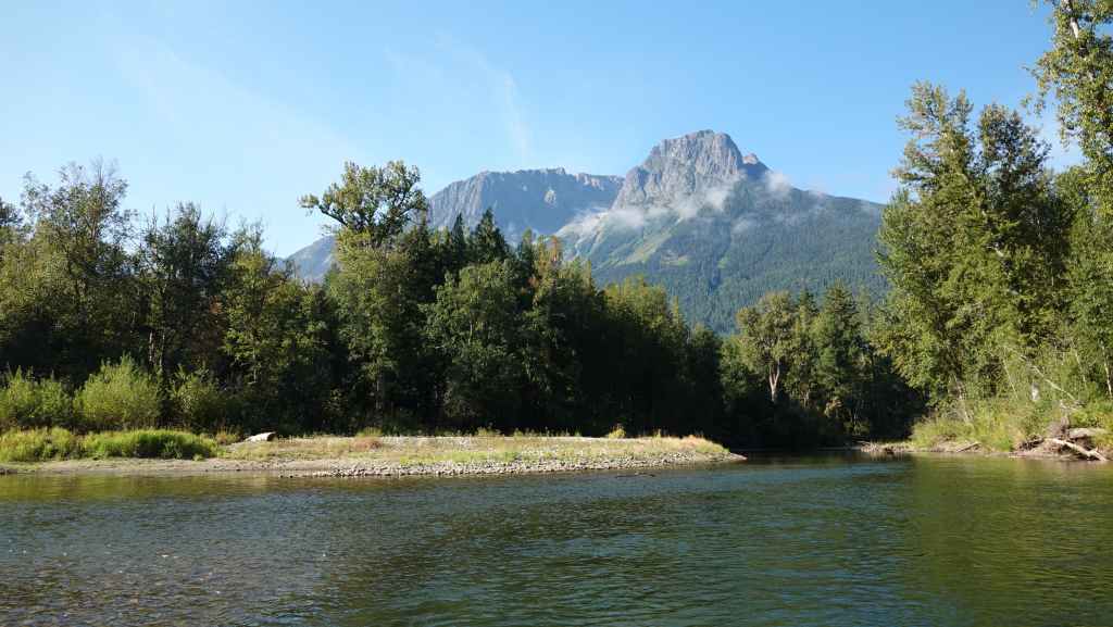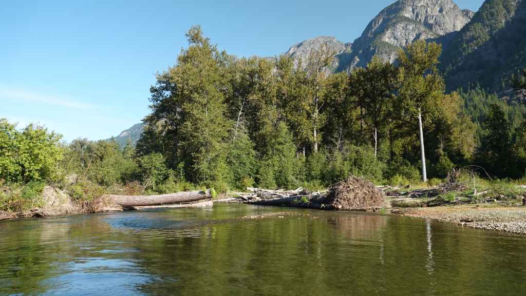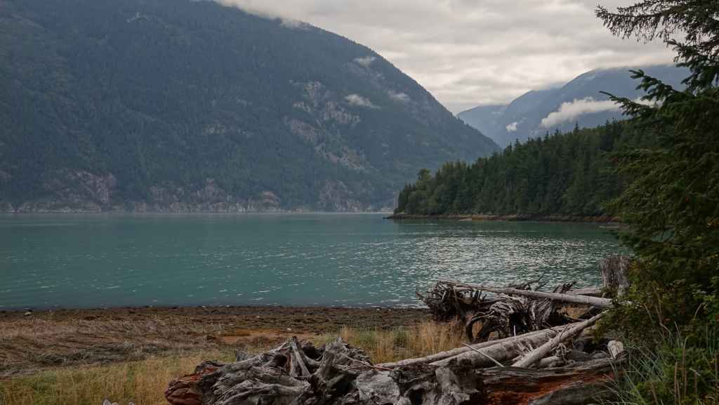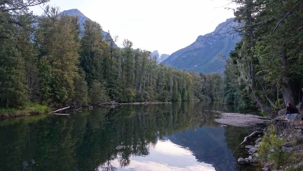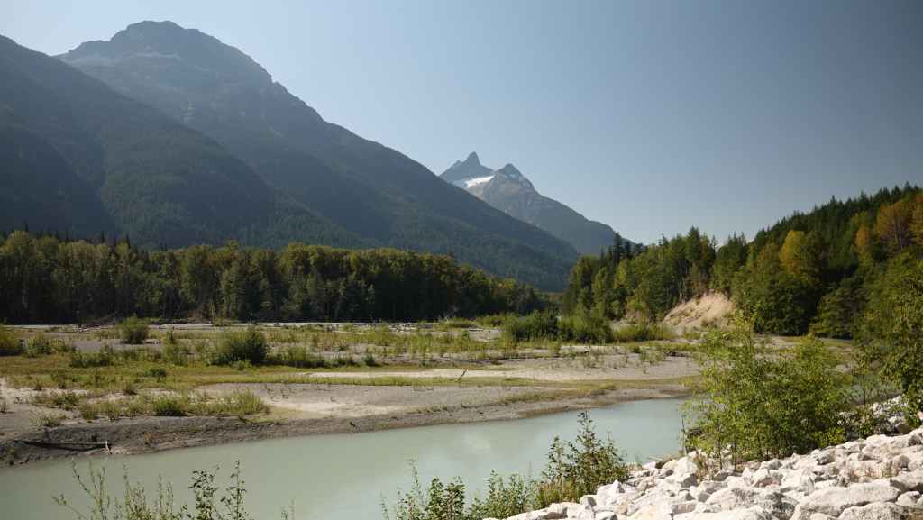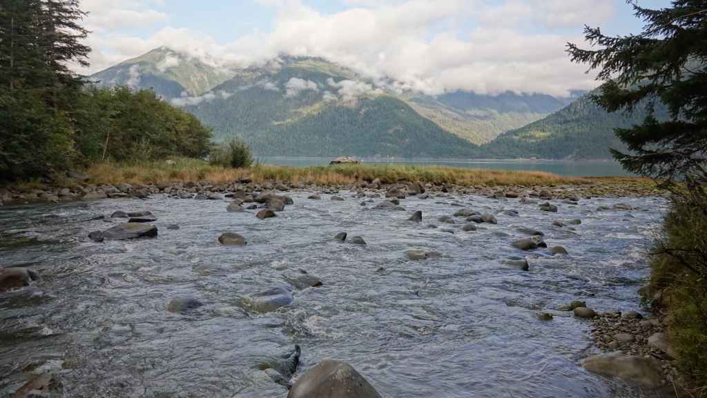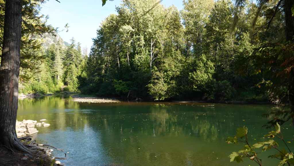 Ensuite, nous partons visiter la bourgade de Bella Coola sous le soleil puis remontons la vallée à la recherche d’un coin sauvage pour déjeuner, ce qui n’est pas facile… On stoppe finalement sur un petit parking en bord de route et au bord de la Bella Coola River et c’est plutôt calme.