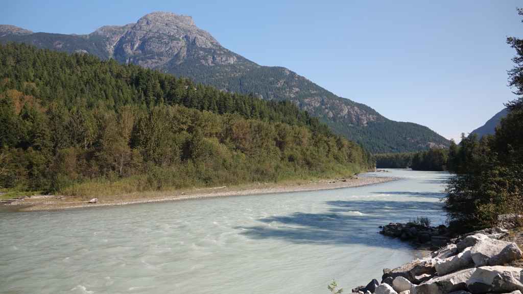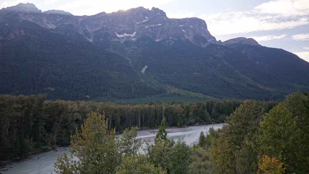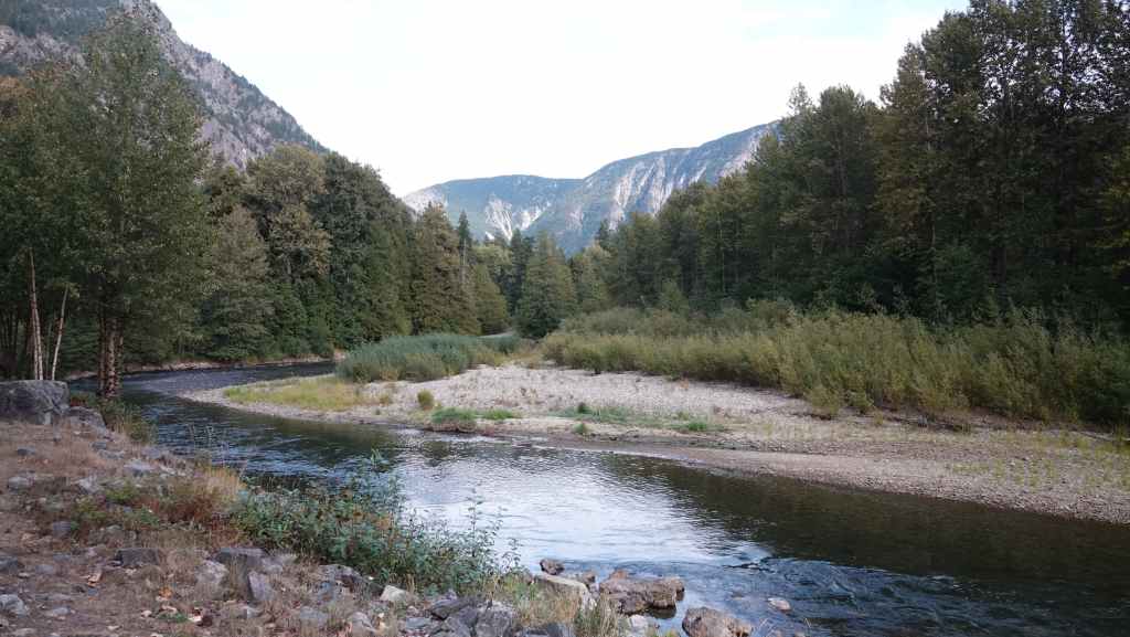 La descente est toujours aussi délicate et on espère ne pas rencontrer une voiture, mais tout se passe bien. On reprend donc la route 99 en direction de Lillooet. Nous stoppons pour la nuit dans un camping gratuit mis à disposition par la compagnie d’électricité BC Hydro. On est au calme malgré les nombreux campeurs.