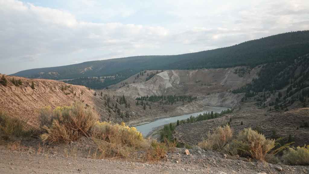 On continue sur la MacKenzie Highway (la 20) en passant devant le lac Pinto, un joli lac aux teintes allant du blanc au bleu laiteux. On s’arrête ravitaillé dans une épicerie tenue par un couple d’asiatique faisant un peu Farwest. La route traverse le Bull Canyon (un bien grand mot) creusé par la jolie et célèbre rivière bleue Chilcotin.