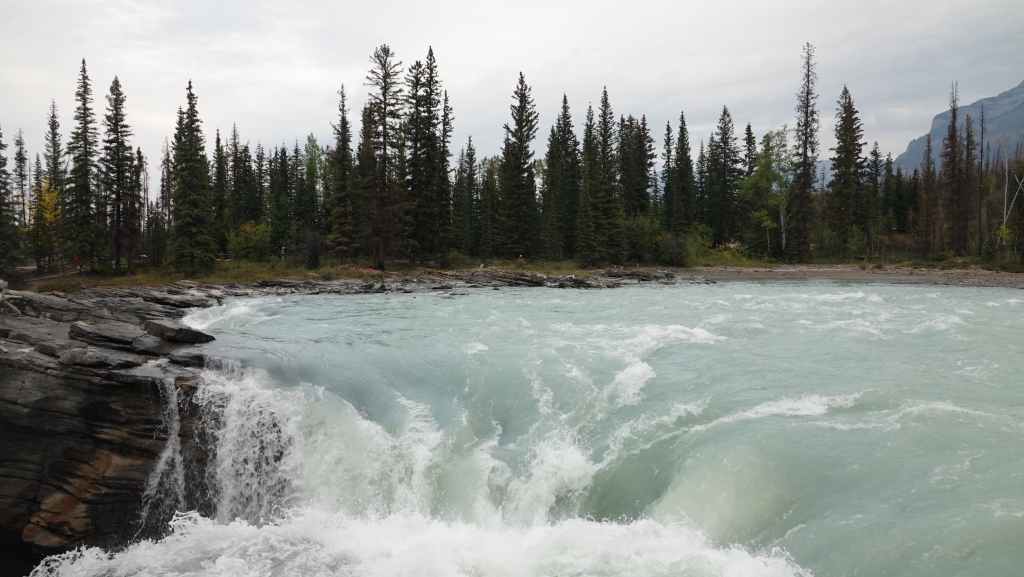 Le prochain arrêt est aux Sunwapta Falls où l’on retrouve les mêmes hordes de touristes principalement asiatiques qui accaparent tout l’espace pour leurs selfies !