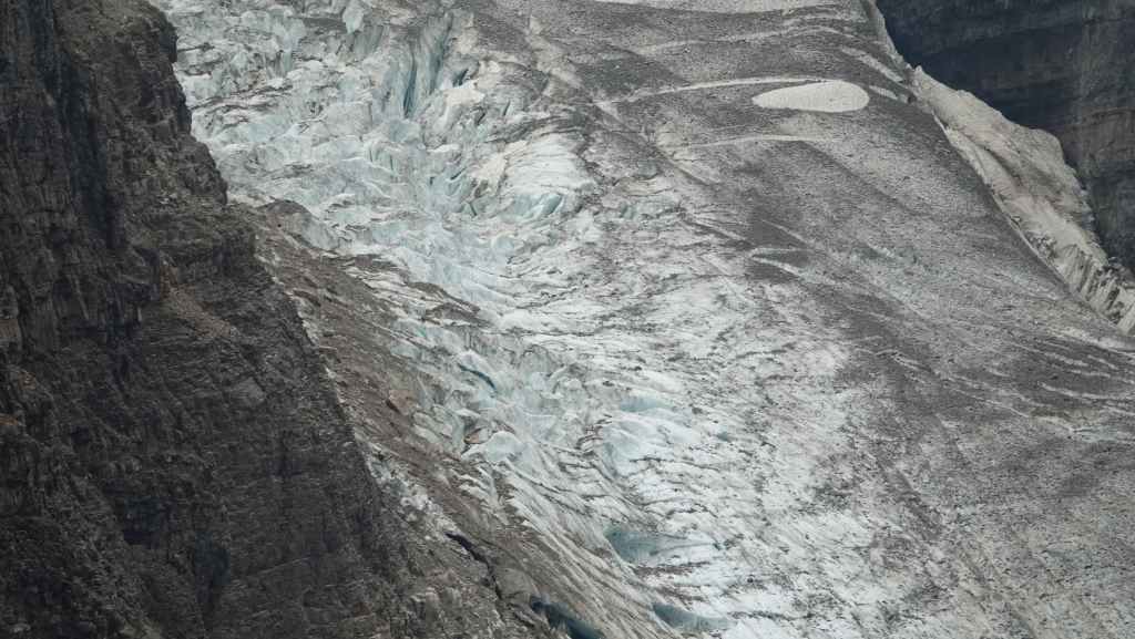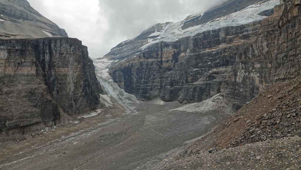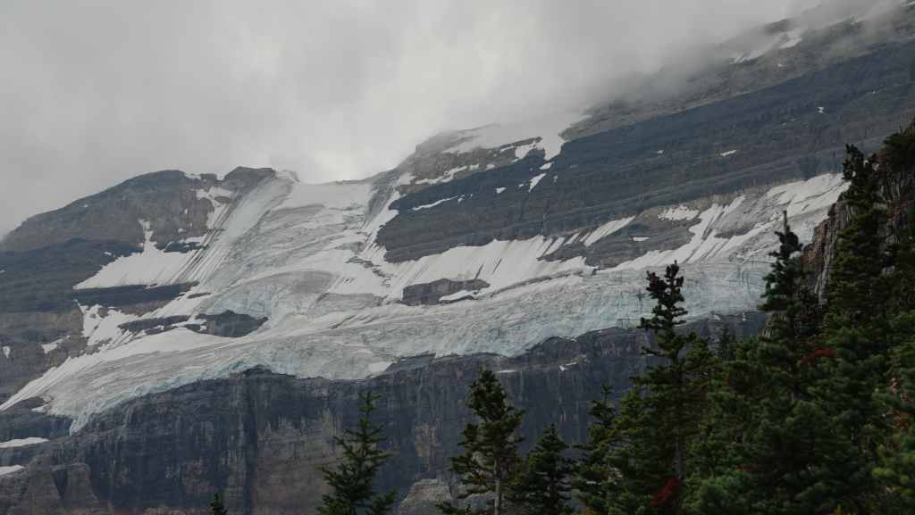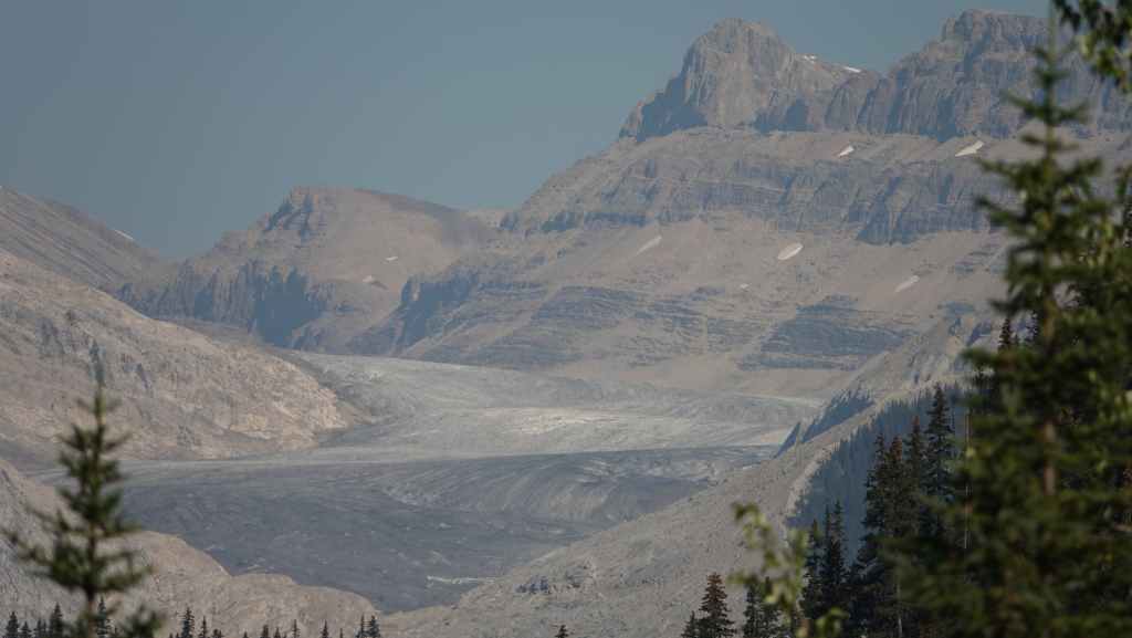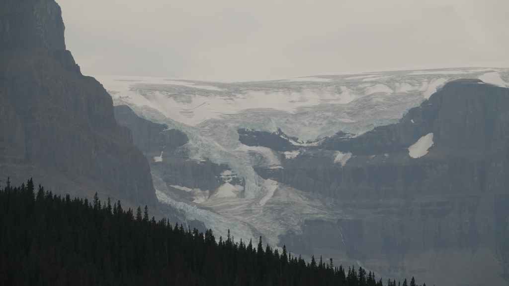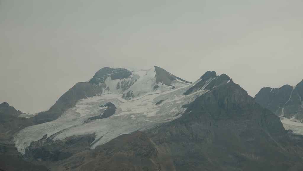 Sur le coup de midi, on arrive au site très touristique de Columbia Icefield (les champs de glace Columbia). On part visiter le centre d’interprétation où l’expo fait l’apologie de l’écologie pour tenter de préserver les glaciers : c’est très louable ! Mais à côté de ça, ils organisent des visites en bus vers et carrément sur le glacier !!! Malgré tout, ce centre est intéressant par ses photographies spectaculaires des Rocheuses Canadiennes.