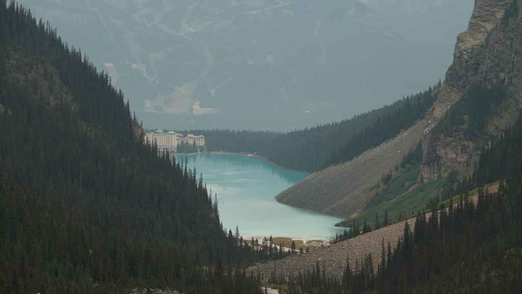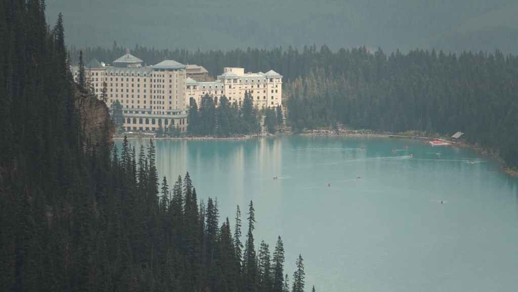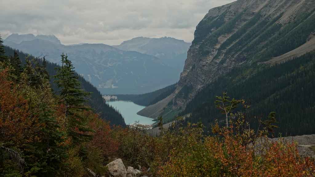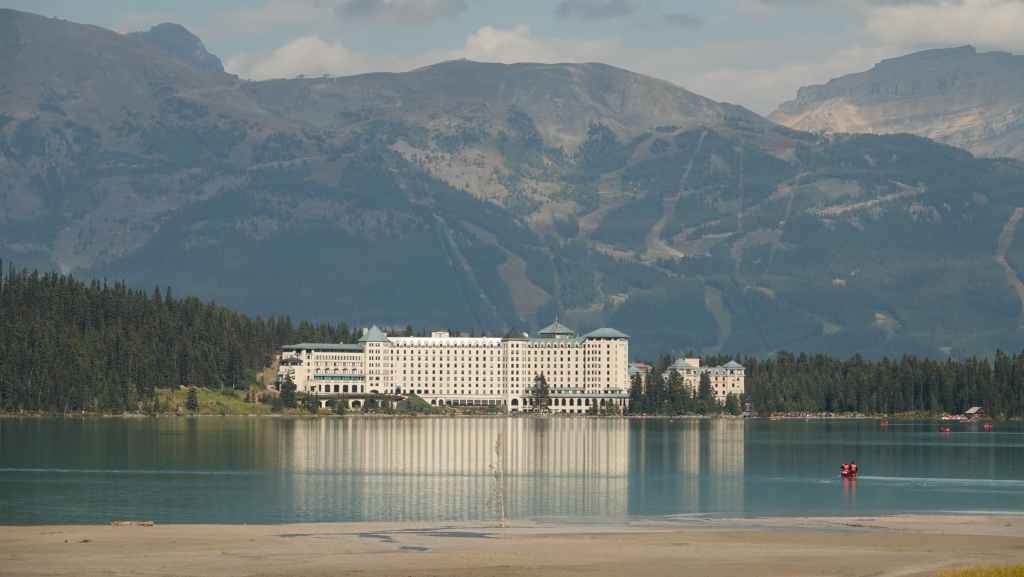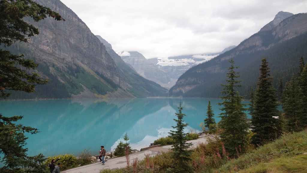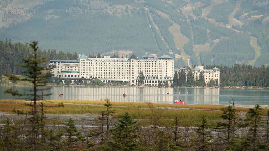 Au départ, on avait prévu d’aller randonner vers le célèbre lac Moraine mais finalement, on y accède seulement par navette. Du coup, on tente de trouver une place de parking au non moins célèbre lac Louise, ce qui ne pose pas de problème du fait de notre lever matinal.