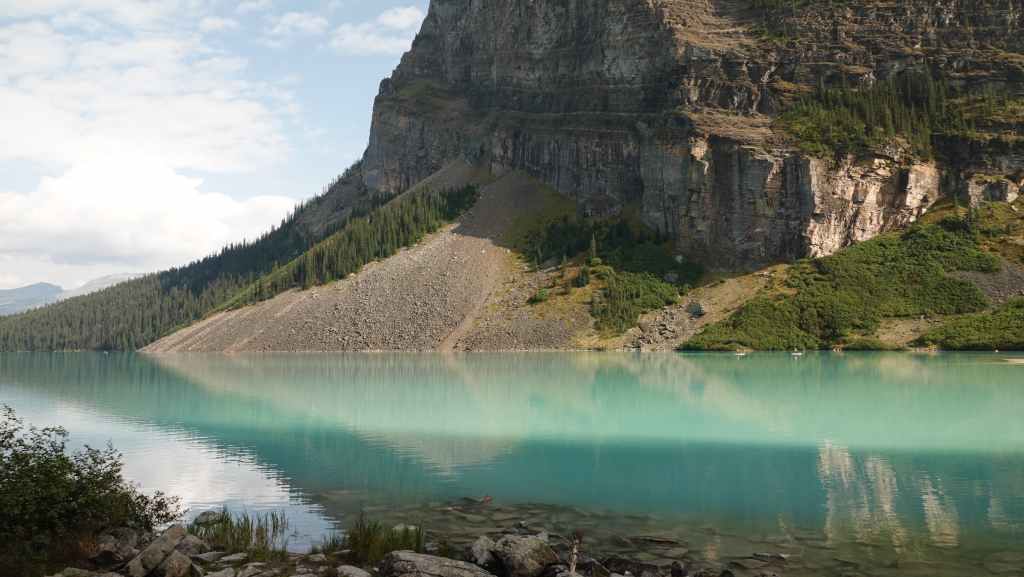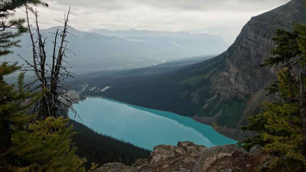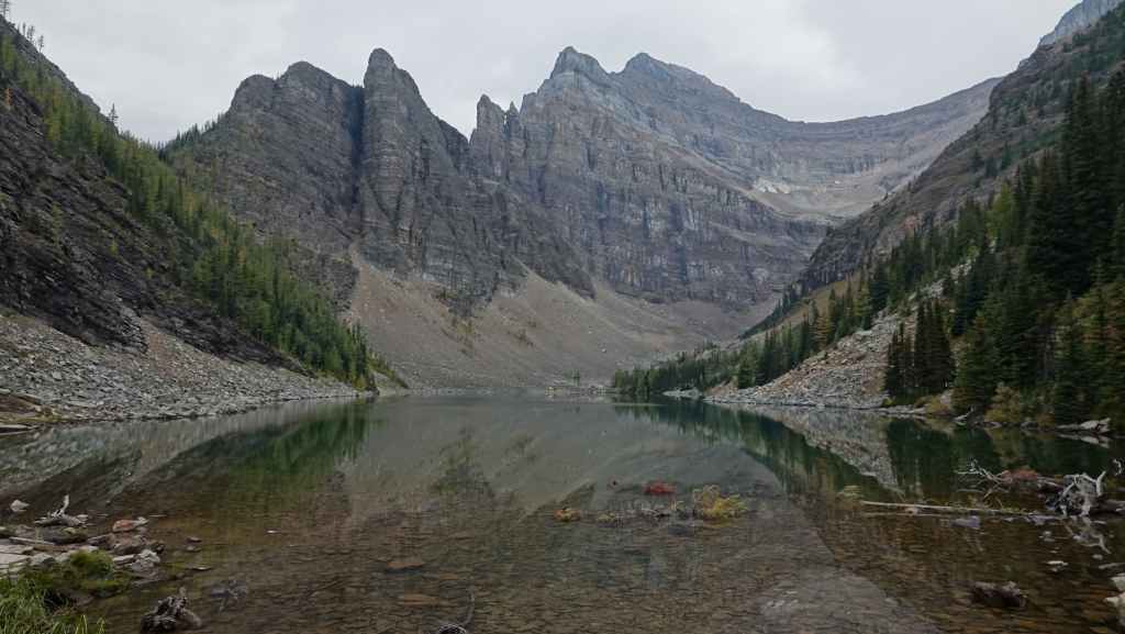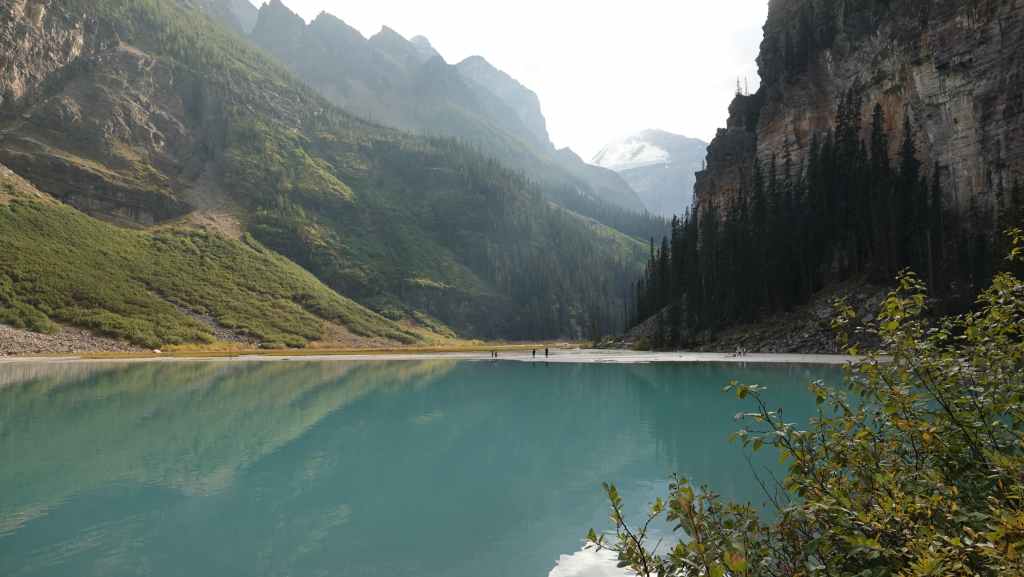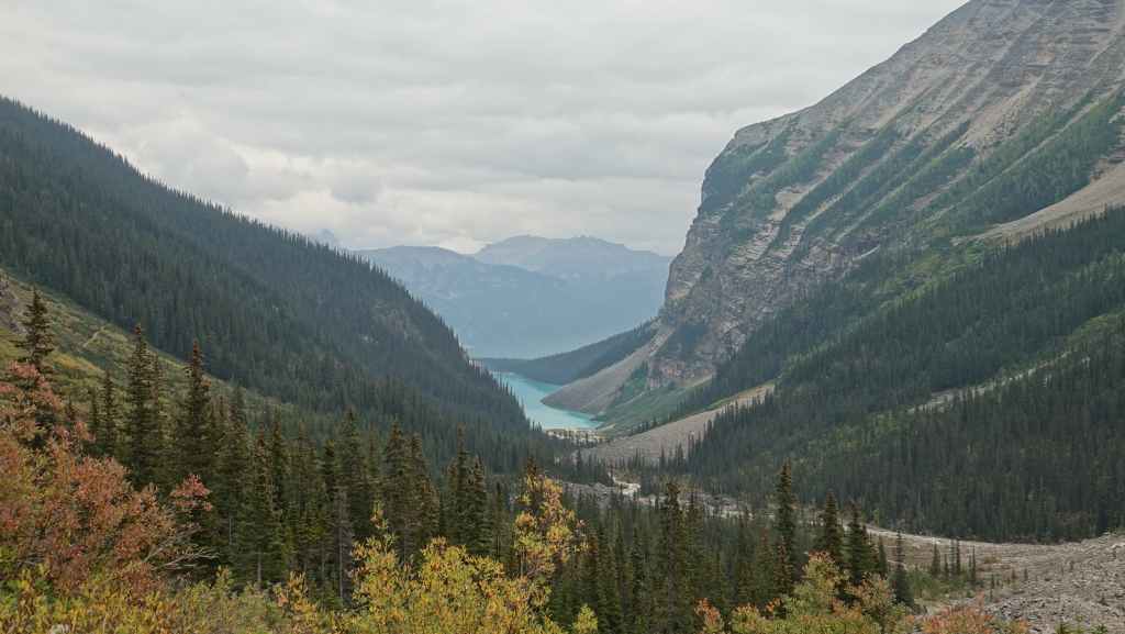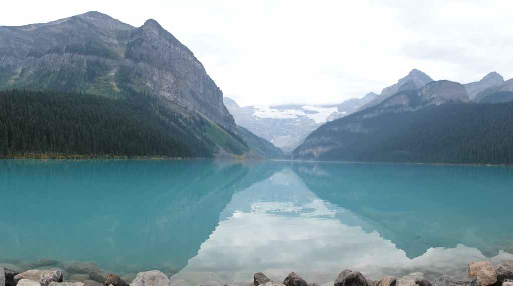 Au départ, on avait prévu d’aller randonner vers le célèbre lac Moraine mais finalement, on y accède seulement par navette. Du coup, on tente de trouver une place de parking au non moins célèbre lac Louise, ce qui ne pose pas de problème du fait de notre lever matinal.