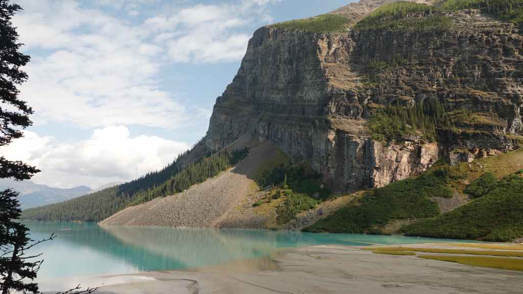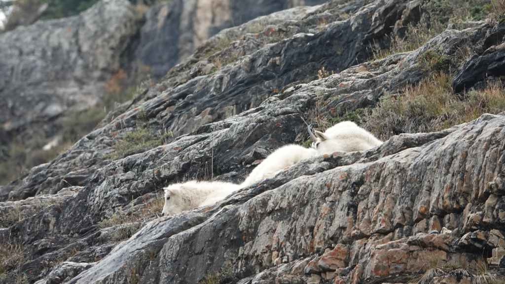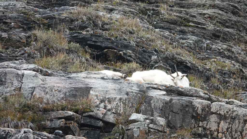 Puis on entame la descente en observant les rares chèvres de montagne qui nous dominent à quelques centaines de mètres au-dessus de nos têtes. Puis retour au lac Louise et ses cohortes de touristes…
