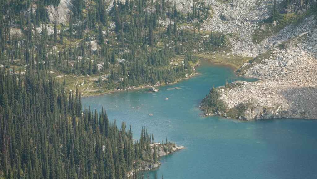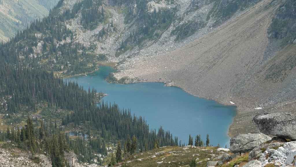 Puis nous revenons en arrière pour rejoindre les hauteurs de Miller Lake que nous dominons pour nous rendre sur un col à 2280 m. Nous avons désormais une vue sur un autre lac, le Jade Lake : magnifique ! C’est grandiose mais il nous faut rejoindre le parking par le même sentier que nous trouvons très long. Nous sommes un peu à la ramasse que nous arrivons à la voiture…