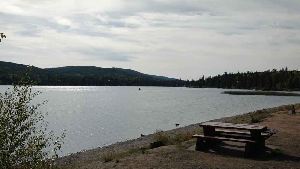 Aujourd’hui, il va falloir rouler car nous devons être à Prince Rupert vendredi. Ca tombe bien car les paysages ne sont pas terribles le long de la 97 : des cultures, des prés, des lacs et de grandes plaines. Même pour le déjeuner, il n’y a pas vraiment d’alternatives à une aire de repos à quelques dizaines de mètres d’une route où circulent les poids lourds. Mais du coup, on a le spectacle des véhicules américains hors normes : poids lourds très lourds, camping-cars démesurés, Harley-Davidson…