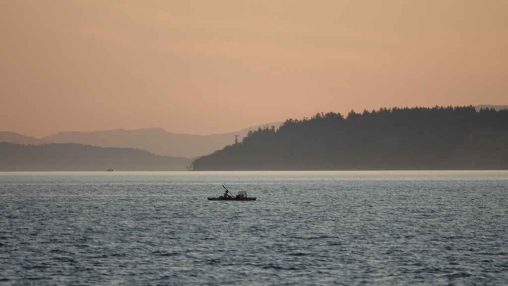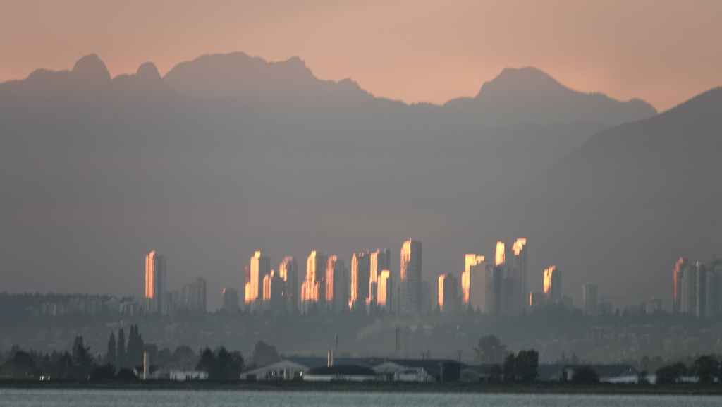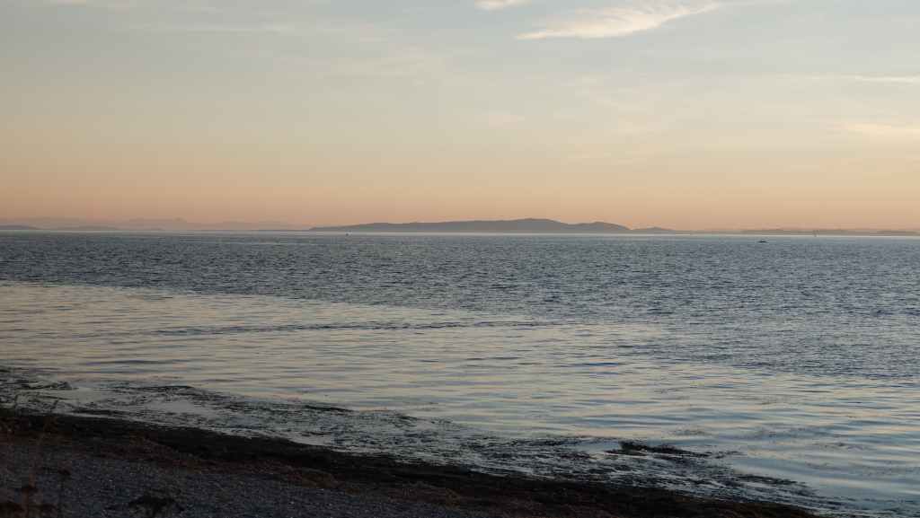 Une fois installés, nous nous rendons sur la plage où de nombreuses personnes viennent admirer le coucher de soleil, le fameux « sunset », de l’ouest américain, mais ici pas de palmiers mais tout de même, de jolies propriétés ! Et au loin, les tours ensoleillées nous rappelle la proximité de Vancouver.