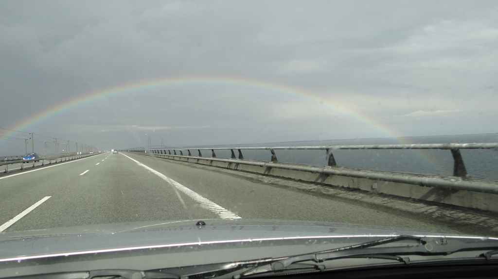 Nous avions prévu le départ à 2 heures du matin, le samedi 4, mais le sommeil ne venant pas, nous avons pris la route à 23h15 la veille. Tout est bien branché sur la prise allume-cigare, GPS et frigo, on peut y aller… Mais après 15 mn de route, le GPS et la radio s’éteignent ! On s’arrête quelques kilomètres plus loin sous les réverbères pour identifier le problème. Résultat : fusible grillé. On décide donc de s’arrêter sur la première aire d’autoroute afin de réparer. Finalement, on restera 1h30 sur cette aire : changement de fusible, changement de prise mâle du frigo avec comme tournevis, une pointe de couteau bien affûtée, qui se plante dans la base d’un doigt, pansement… etc. Finalement, on repart, mais quelques kilomètres plus loin, même problème avec en prime, la prise allume-cigare du frigo fondue et un fusible de nouveau HS… Nous continuons notre longue route en traversant l’Allemagne. Nous faisons des relais d’environ 2 heures. Tout roule jusqu’à Hanovre où les bouchons et la pluie apparaissent… Là-bas aussi, il y a des chassé-croisés vers les plages de la mer Baltique ! La pluie se calme un peu au Danemark et nous arrivons au camping de Lomma, près de Malmö, vers 19h00, soit près de 20 heures après le départ.