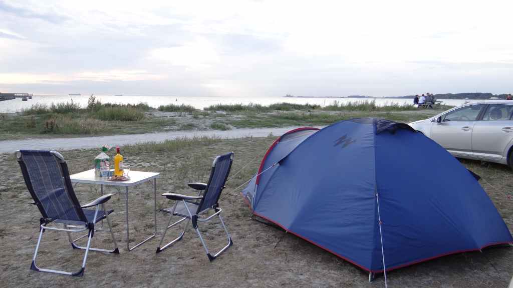 Réveil et départ tardif (9h15 !), avec le but de monter le plus au nord possible. Nous branchons le frigo sur le gaz, allumons le GPS qui ne sert pas à grand-chose vu que la cartographie « Europe » ne comprend pas la Suède, la Finlande et la Norvège (chercher l’erreur !), et c’est reparti… Nous n’irons pas aussi loin que prévu suite à une erreur de décision concernant la trajectoire à suivre. Mais le paysage est toutefois sympathique, et les routes plus chargées que prévu. C’est vers 19h30 que nous stoppons, sur les bords de la mer Baltique. Les moustiques font leur apparition. Fini le short ! Bonjour l’antimoustique… et déjà, le jour 24h/24.