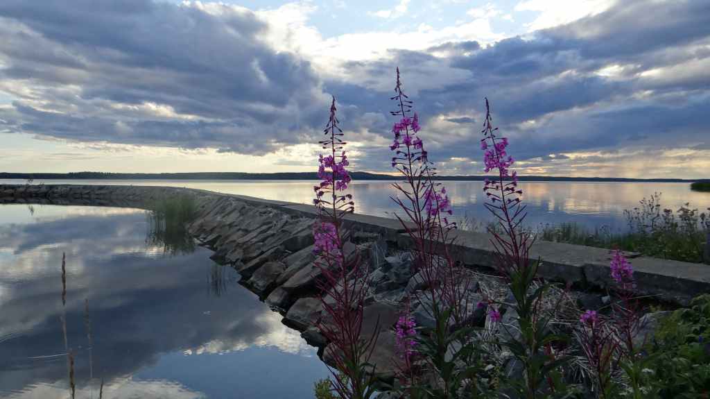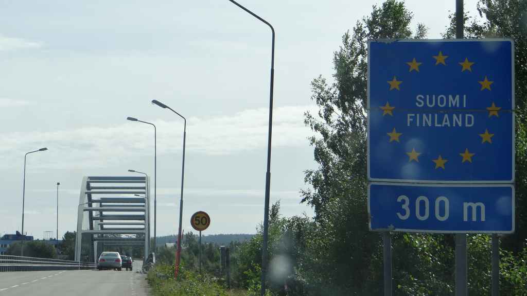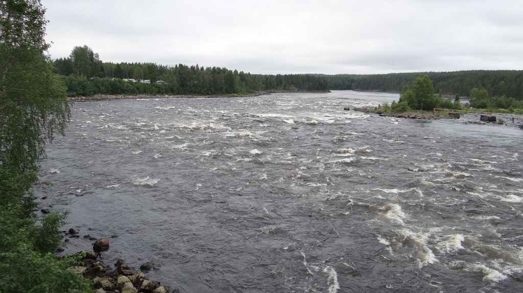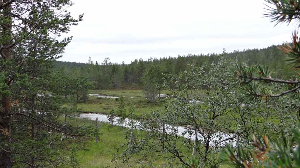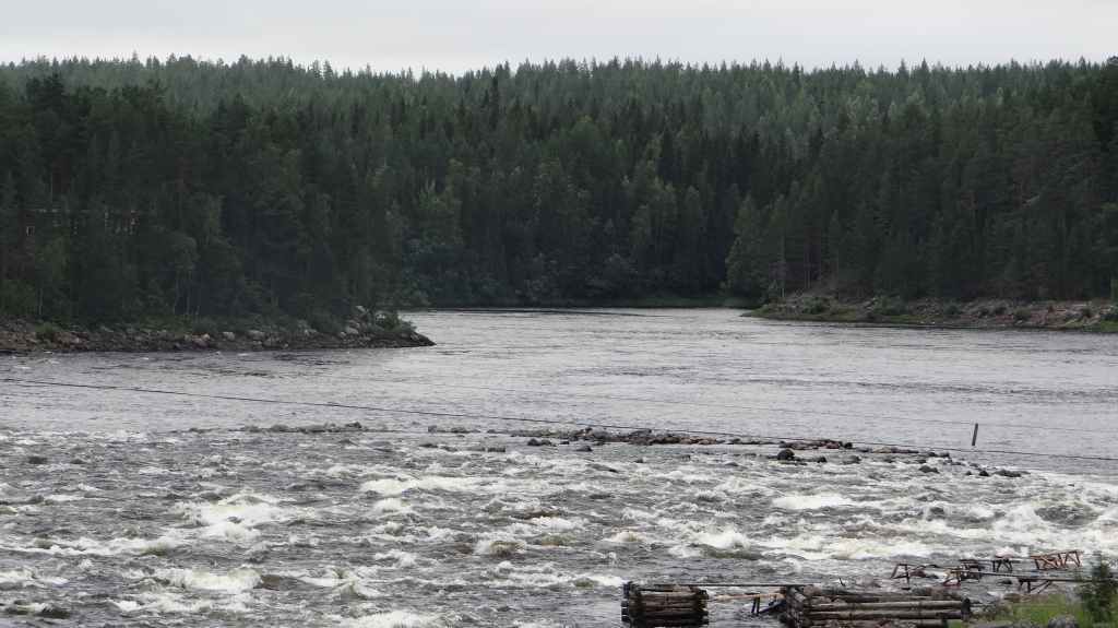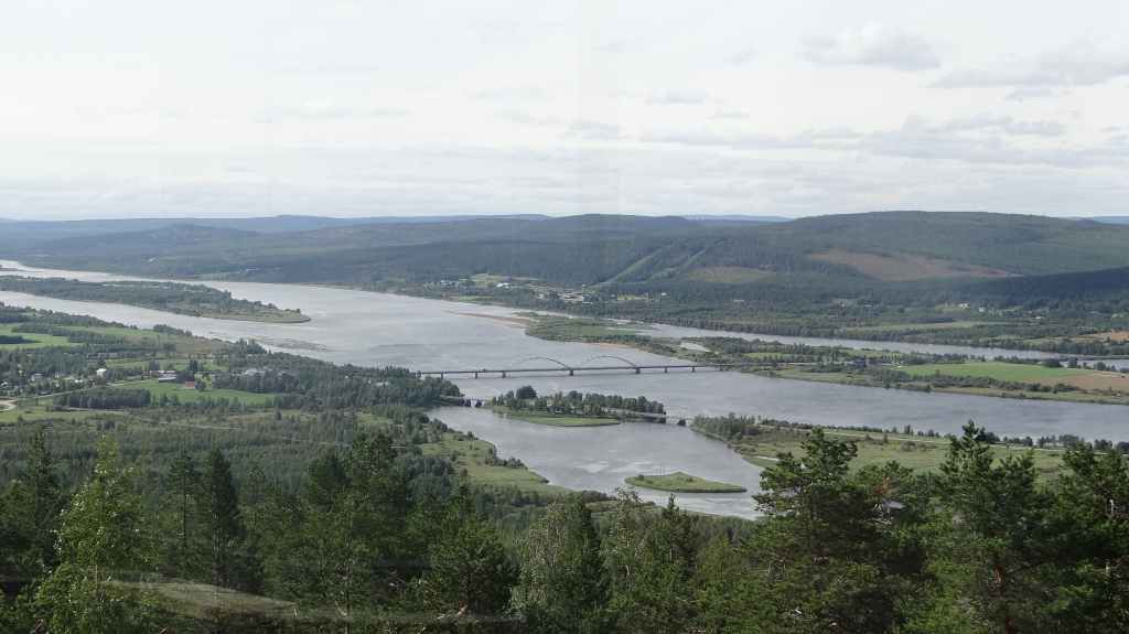 C’est aujourd’hui l’occasion d’utiliser notre 4×4 sur des pistes pour continuer notre progression vers le nord. Mais, même si les pistes sont bonnes et notre carte précise, notre progression est hésitante et lente. Nous passons le cercle polaire sans même un panneau… Faut dire que nous ne sommes pas sur une route touristique ! Les panneaux ne sont pas légion et le temps passe vite, alors nous décidons de reprendre le goudron. Après avoir traversé le Tornionjoki, qui sert de frontière avec la Finlande, nous faisons un petit arrêt à un belvédère. Une tour, libre d’accès nous permet une vue à 360° sur les forêts et lacs du secteur.
