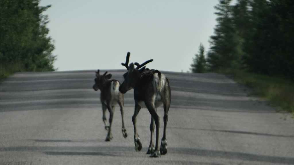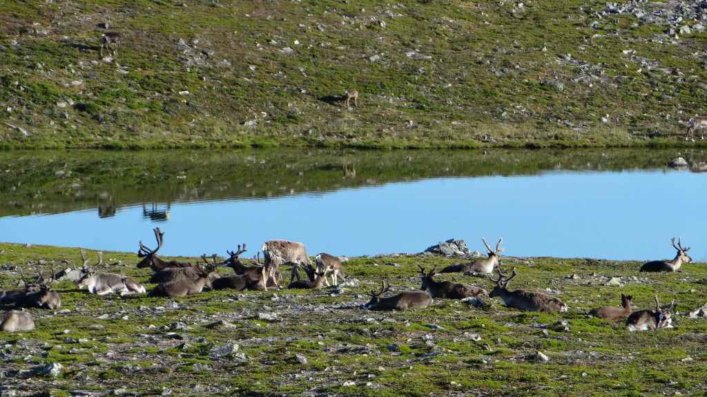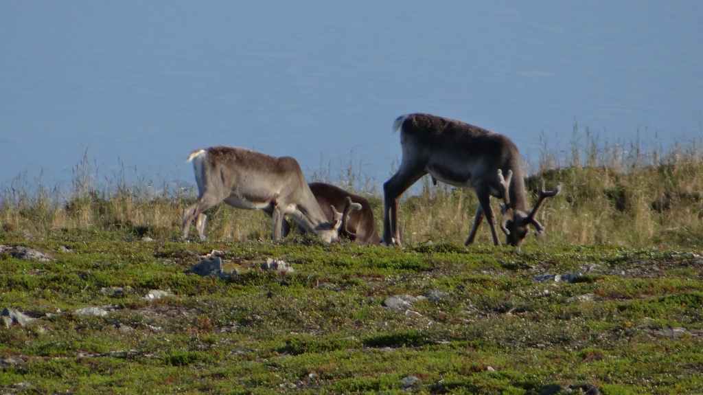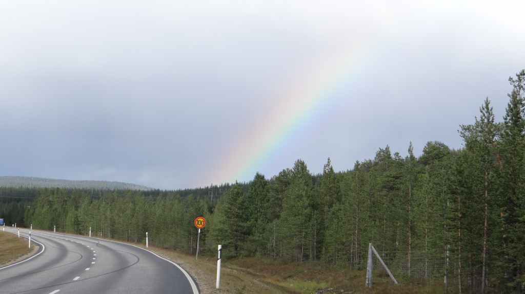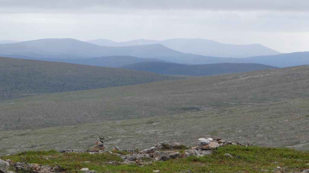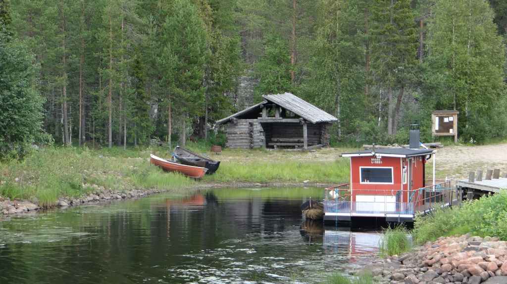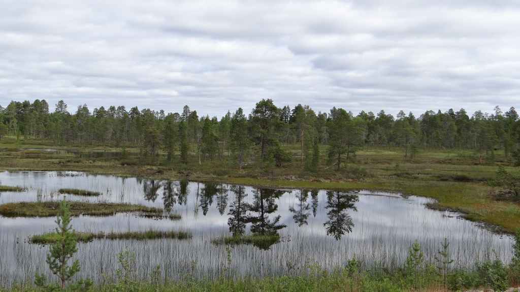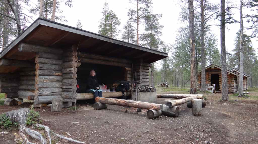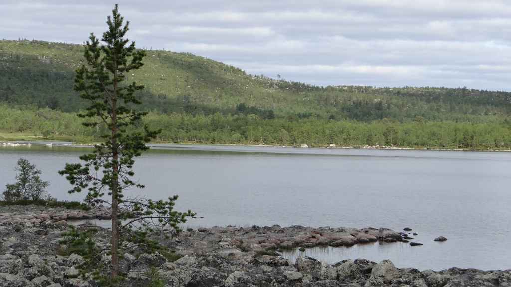 Randonnée bien sympathique sous la grisaille et la fraîcheur le matin. Pas de paysages somptueux, mais une variété de paysages intéressants. Nous voyons quelques rennes à bonne distance. Repas dans un abri de rondins avant de revenir au parking, avec de belles éclaircies. En fin de rando, nous rejoignons la bourgade d’Ivalo : il pleut et nous décidons de notre offrir une chambre dans un camping. La propreté est quelque peu douteuse mais nous sommes au chaud et au sec…