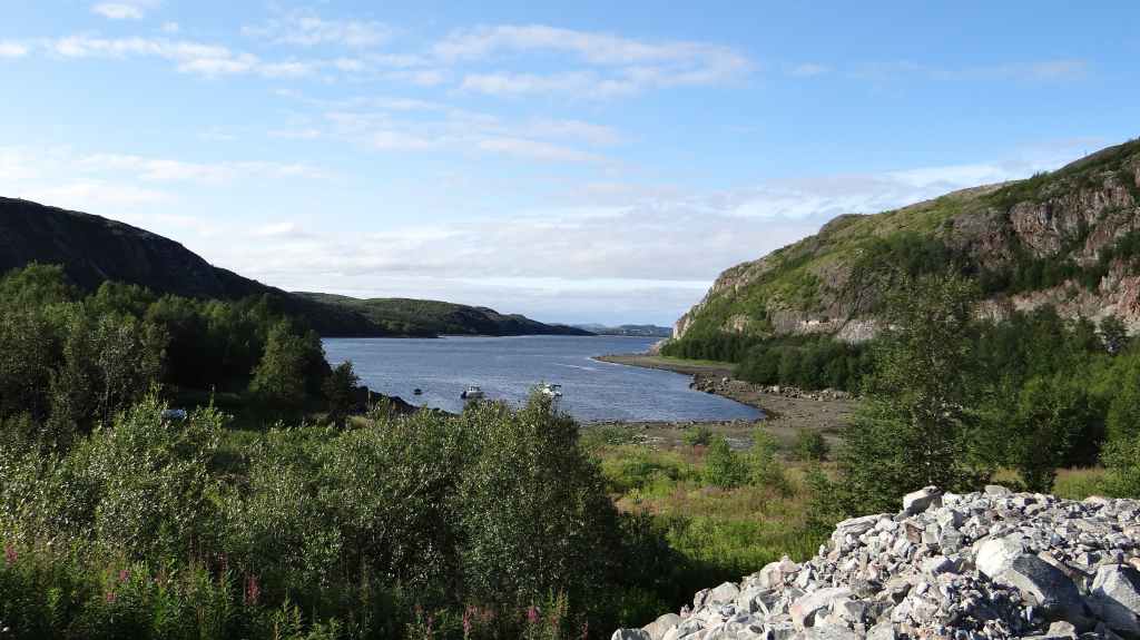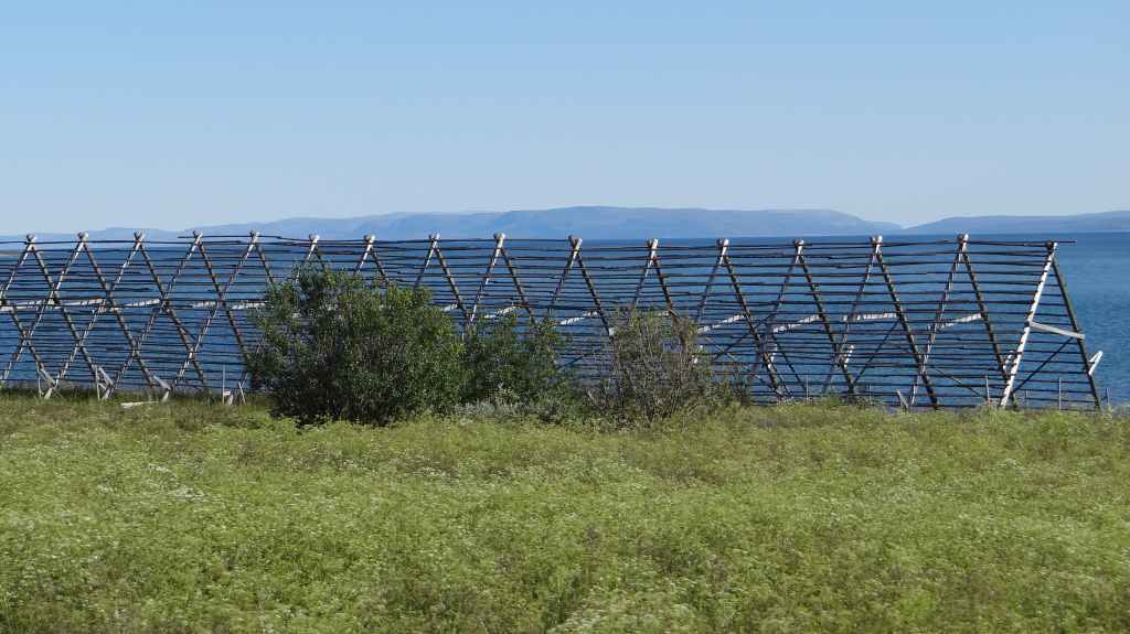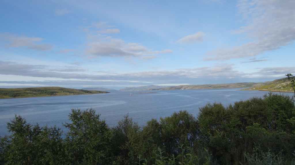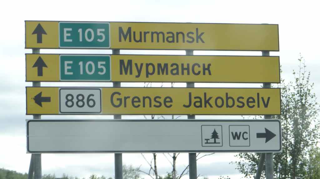 Au petit matin, le ciel est radieux. Aujourd’hui, nous partons en direction de la frontière russe et au bord de l’océan Arctique appelé à cet endroit, la mer de Barens. Nous passons dans la petite bourgade d’Inari. Nous y faisons le plein de gas-oil (en 2 fois comme à l’accoutumé depuis la Suède) et quelques courses. Puis nous repartons vers la frontière norvégienne dans des paysages de toundra. Aucun douanier : ça tombe bien, puisque nous transportons ce qui est interdit : alcools, fruits et légumes frais, viande.