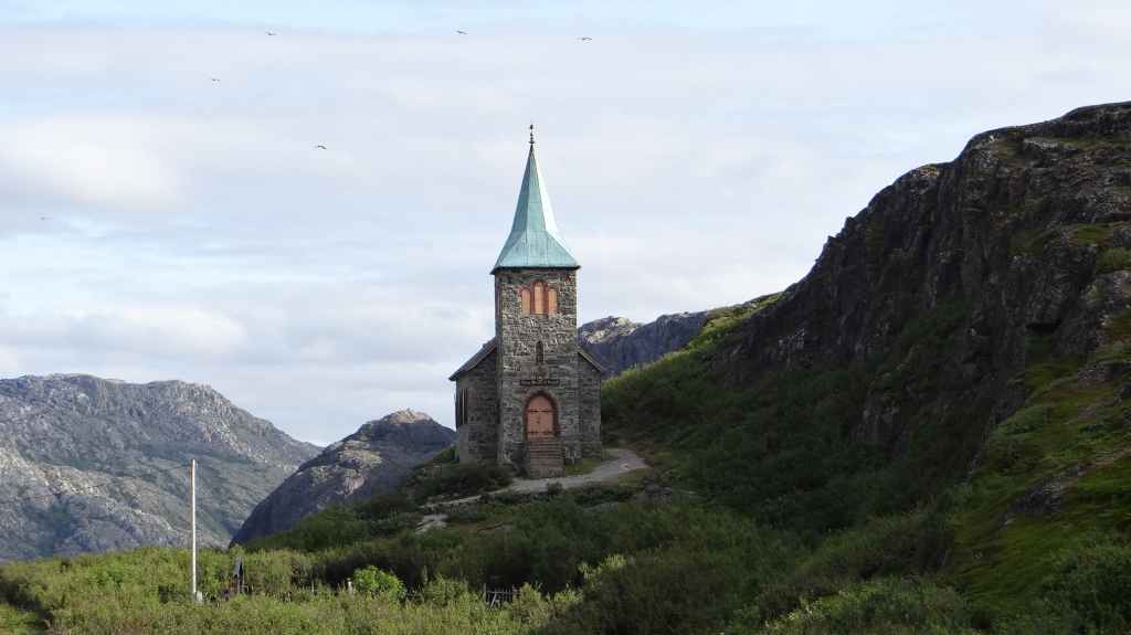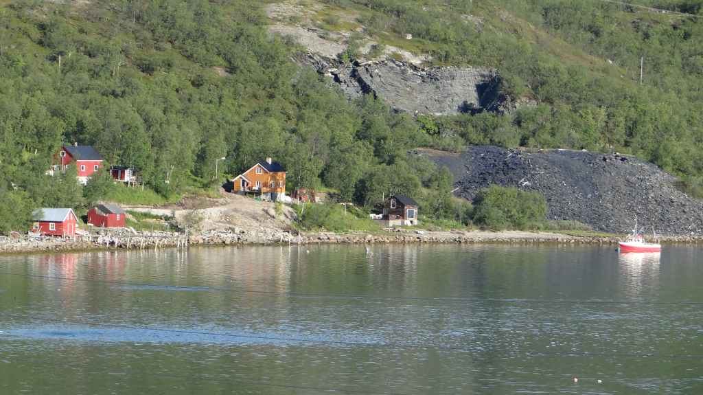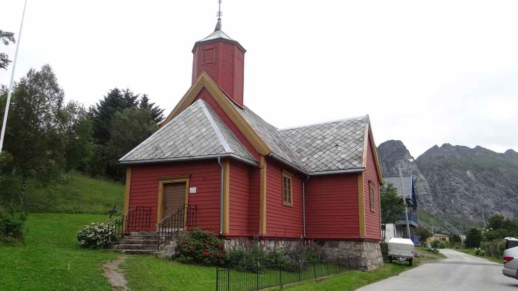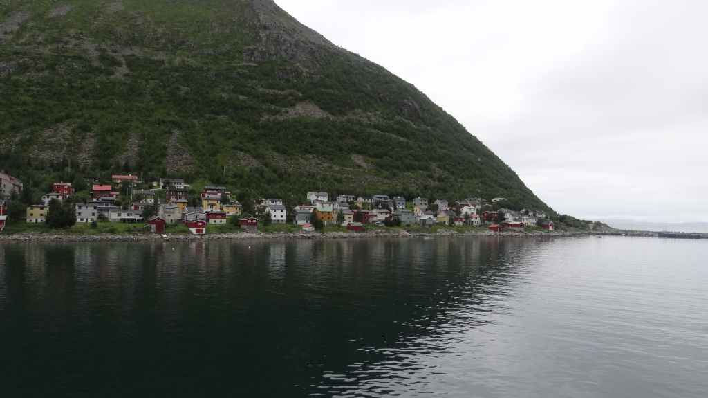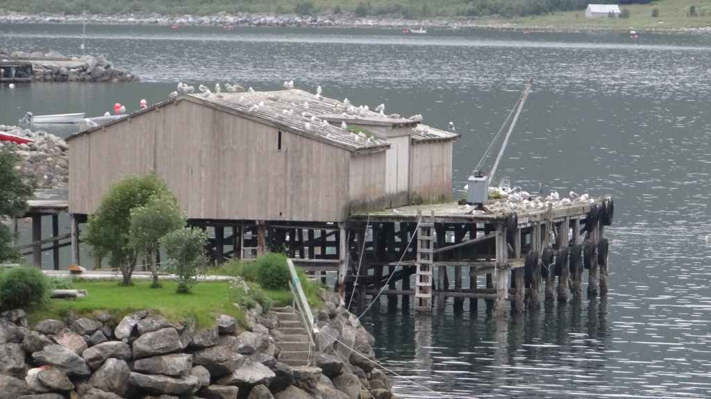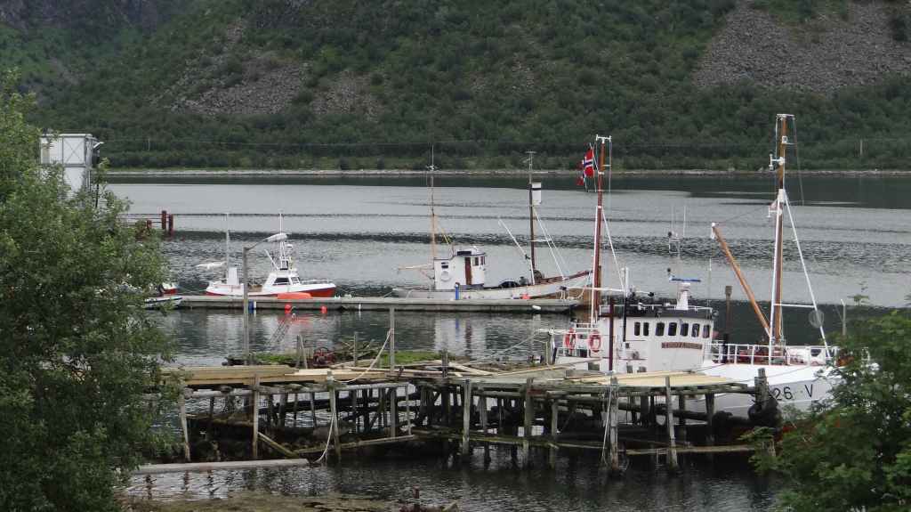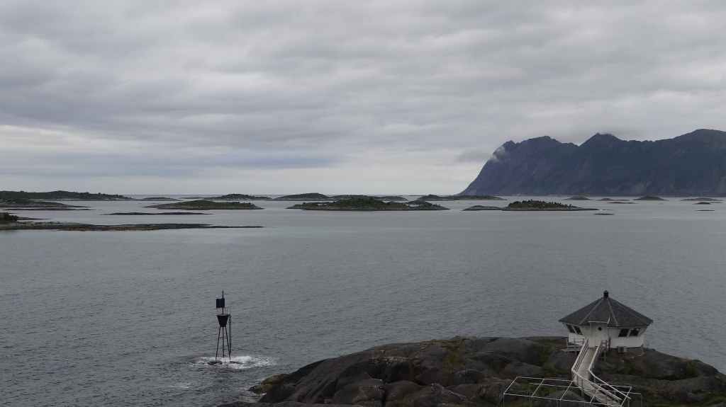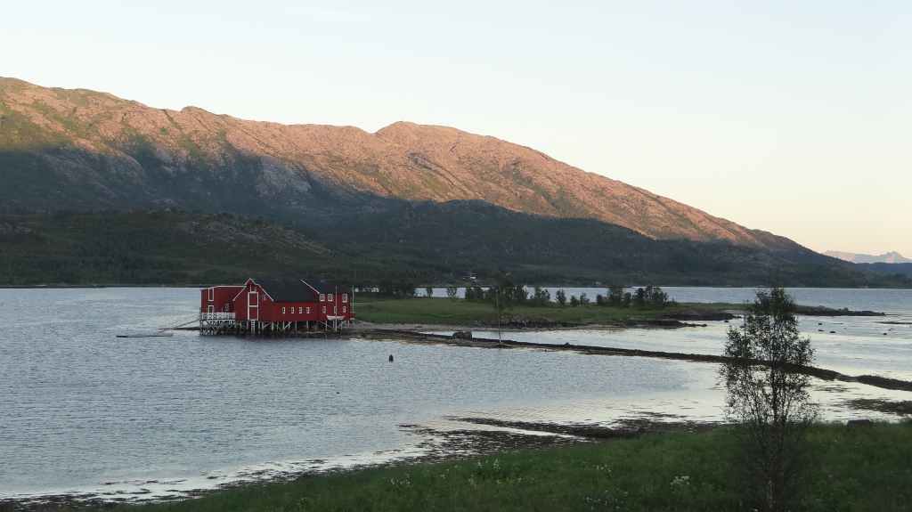 Nous passons de montagnes en fjords et de fjords en montagnes, tout ça agrémentés de lacs. Avant la traversée vers les Vesteralen, nous visitons un petit port, Torsken. Petite église rouge, quelques maisons de couleur et quelques chalutiers donnent de la couleur à la grisaille du fjord. Il est maintenant l’heure d’embarquer sur le ferry qui nous emmène à Andenes. Bien que la mer soit peu formée, Sylvie n’est pas à l’aise avec le tangage… Nous débarquons vers 20h00 sur l’île sous un ciel très menaçant. On plante la tente vers 21h00 au camping de la ville. Demain, c’est le grand jour pour le « safari baleines », mais nous devons encore une fois se lever très tôt pour espérer avoir de la place sur le bateau.