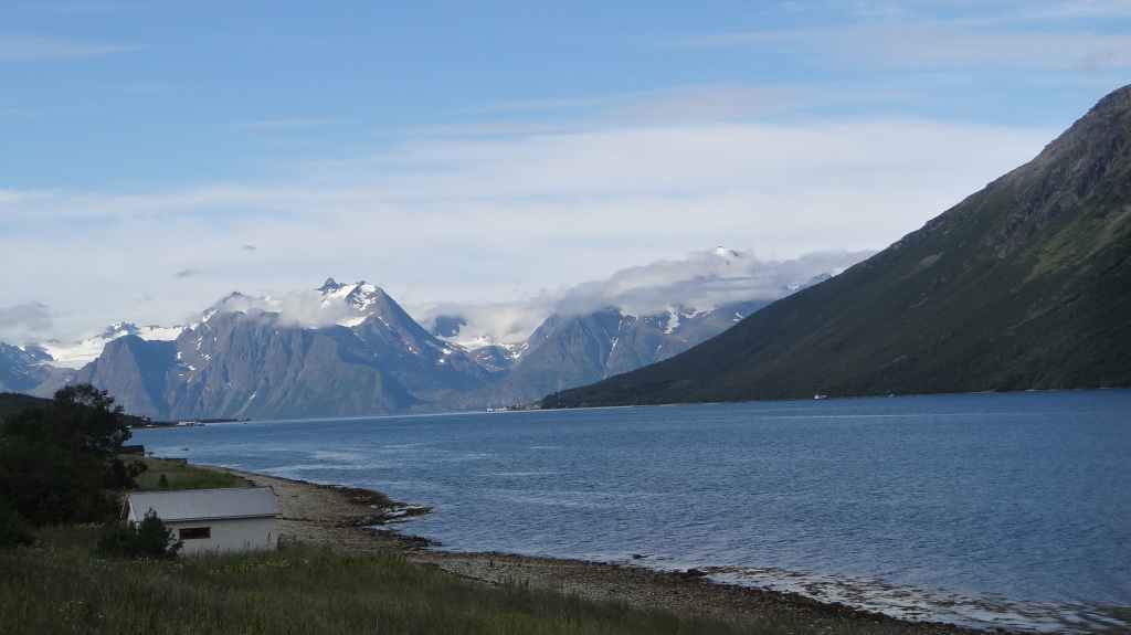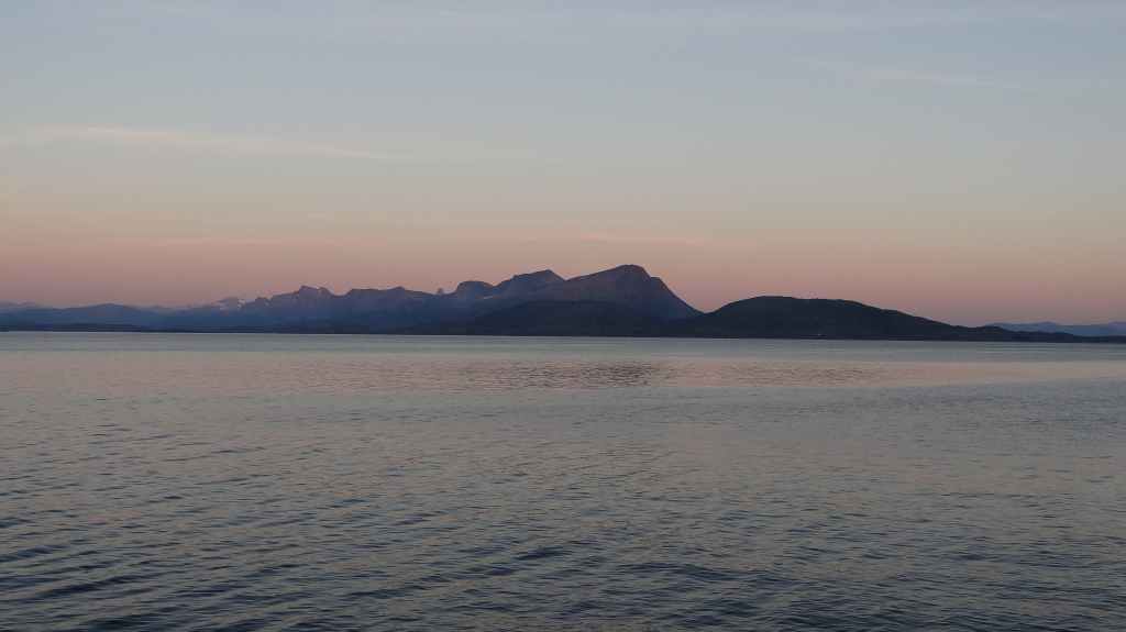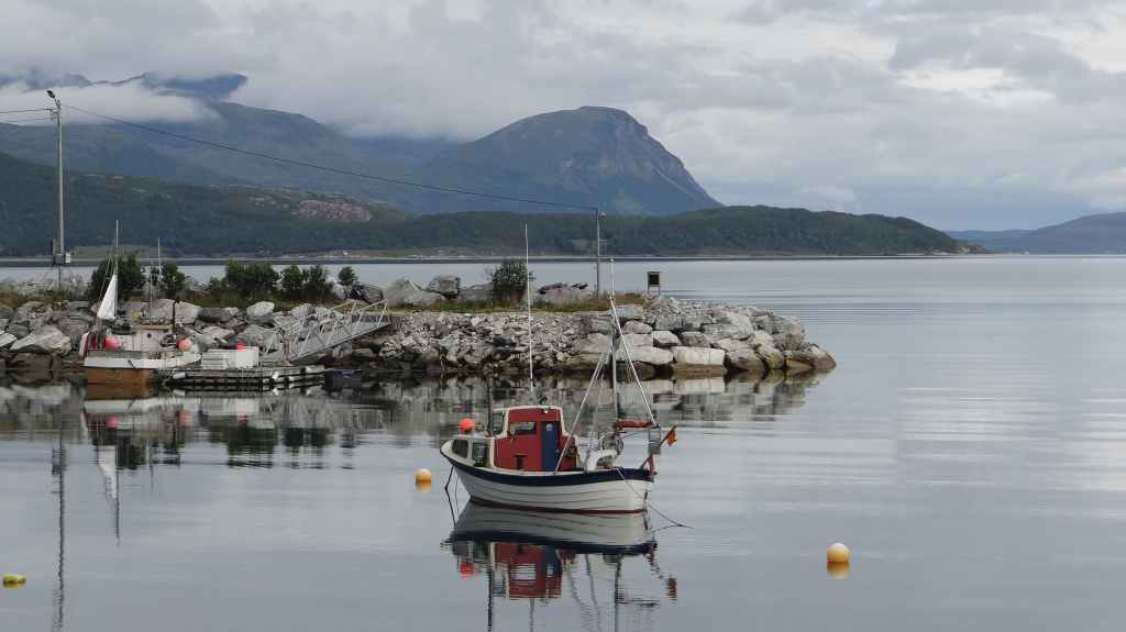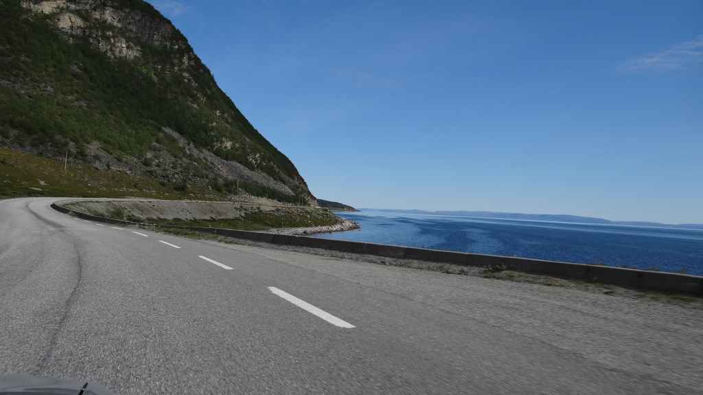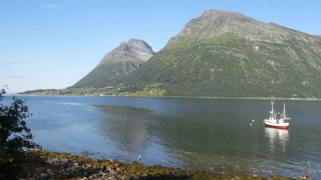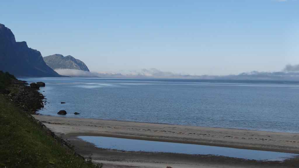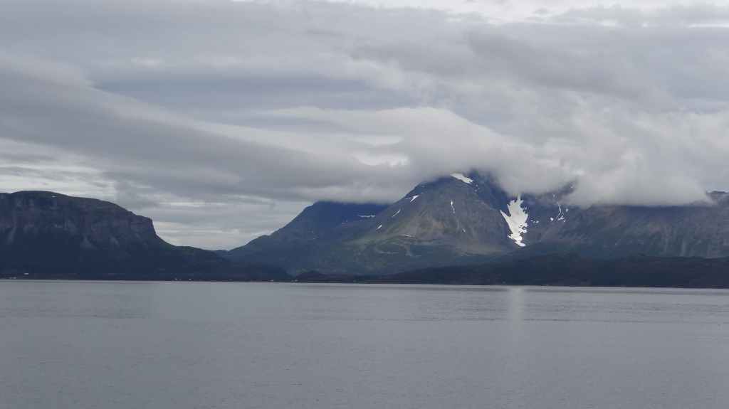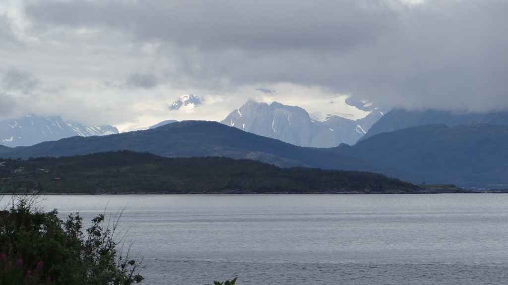 Nouvelle longue étape, qui doit nous emmener vers les îles Vesteralen, non loin des célèbres îles Lofoten visitées en 2006. Départ très matinal pour essayer de prendre le ferry de 15h00. La matinée se passe sous un ciel encore bien gris, mais se dégage pour le repas de midi. Malheureusement, la route sinueuse nous ralenti fortement, alors nous décidons de prendre notre temps : nous prendrons le ferry suivant à 19h00. Nous déjeunons au bord d’un fjord sous le soleil, mais il ne s’agit que d’une belle éclaircie.