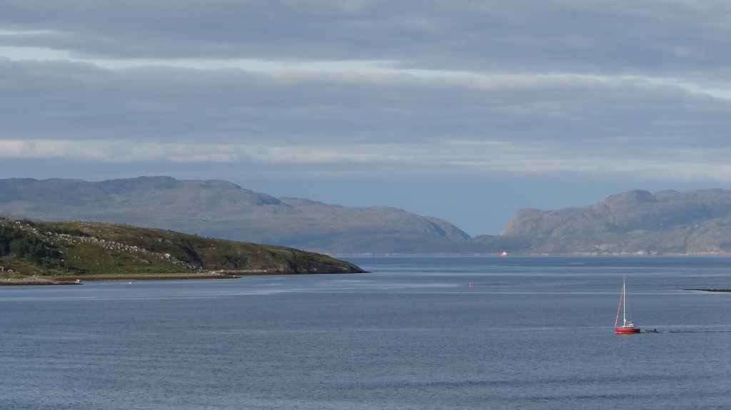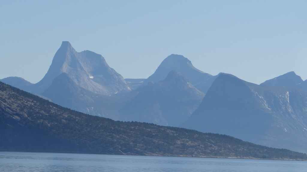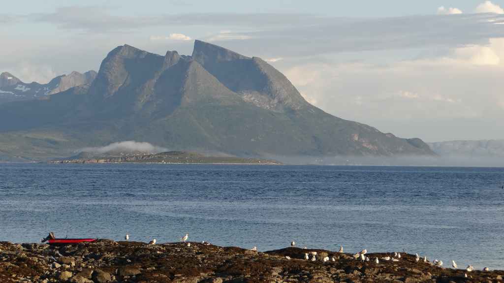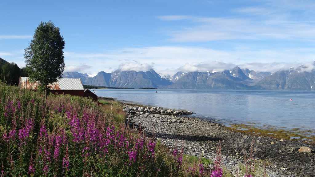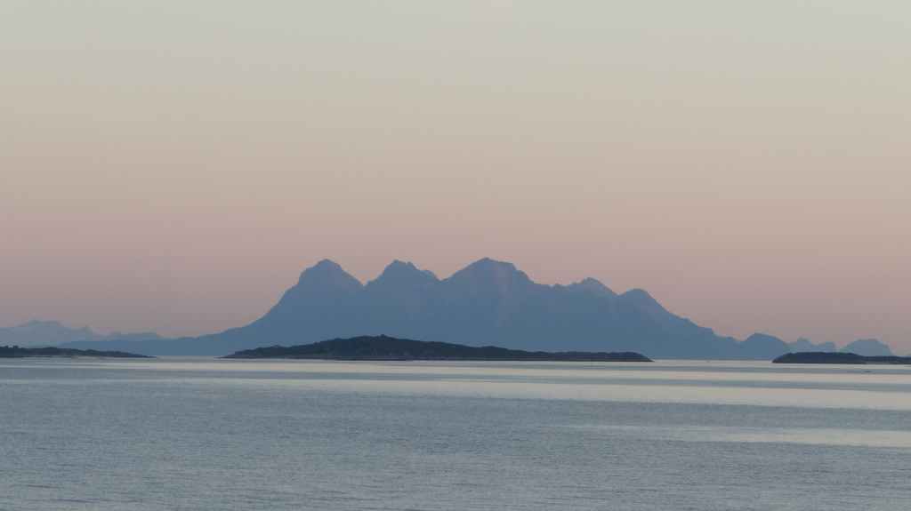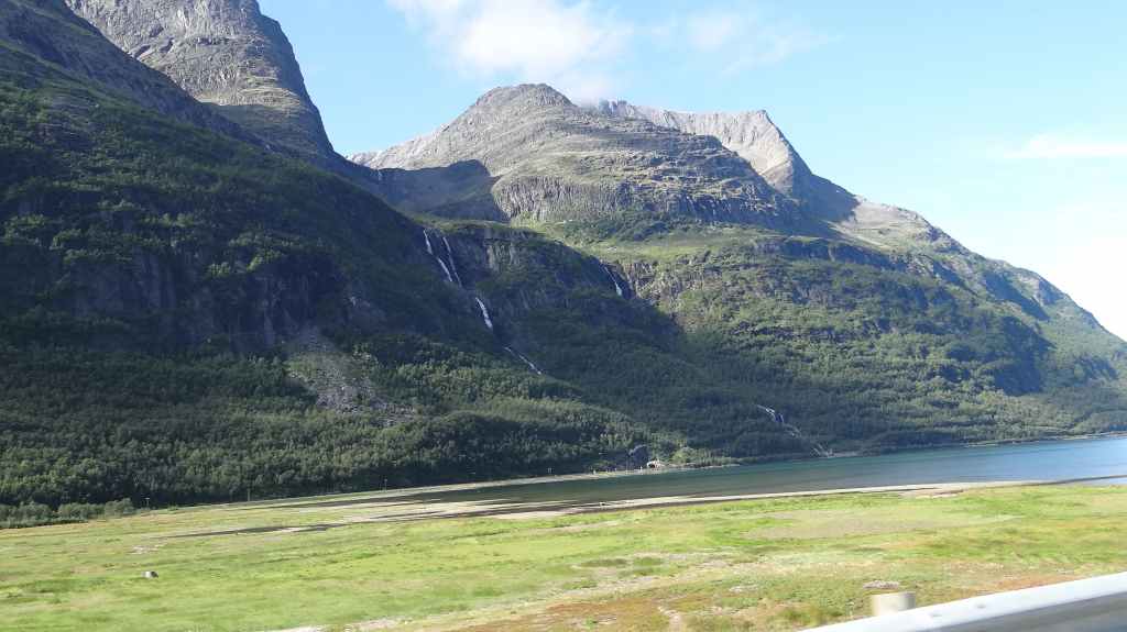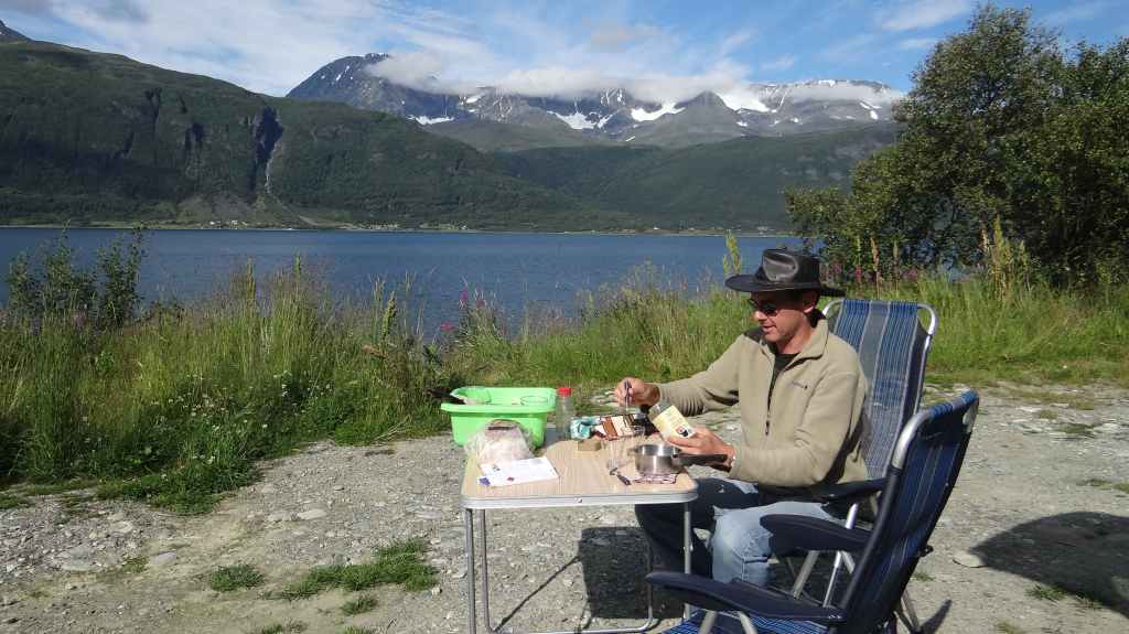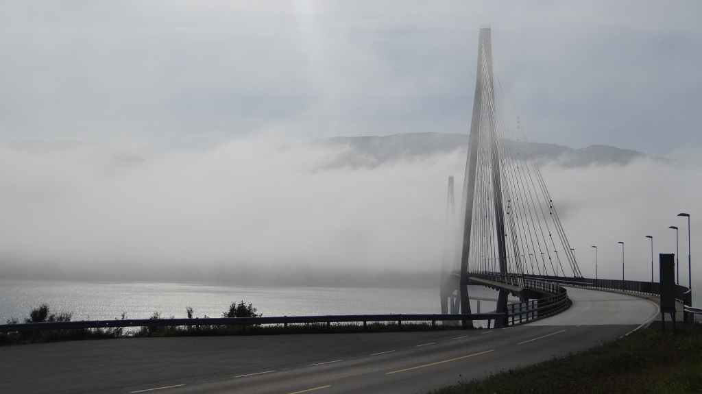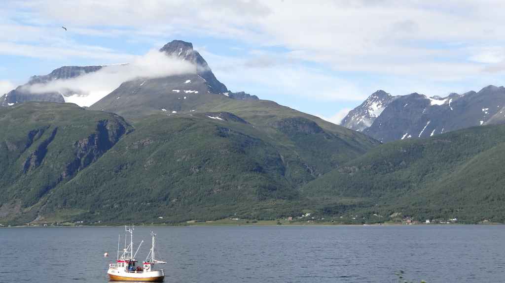 Nouvelle longue étape, qui doit nous emmener vers les îles Vesteralen, non loin des célèbres îles Lofoten visitées en 2006. Départ très matinal pour essayer de prendre le ferry de 15h00. La matinée se passe sous un ciel encore bien gris, mais se dégage pour le repas de midi. Malheureusement, la route sinueuse nous ralenti fortement, alors nous décidons de prendre notre temps : nous prendrons le ferry suivant à 19h00. Nous déjeunons au bord d’un fjord sous le soleil, mais il ne s’agit que d’une belle éclaircie.