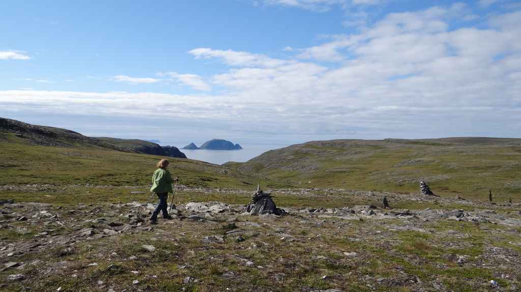 Départ très matinal pour rejoindre le point le plus septentrional du continent européen : le Cap Nord qui est le point touristique ; en fait le cap Knivskjellodden dépasse de 1600 m l’autre, mais il faut marcher pendant 18 km A/R pour le mériter. Il fait beau, mais la météo annonce un temps plus couvert dans l’après-midi alors il ne faut pas trop traîner en route…