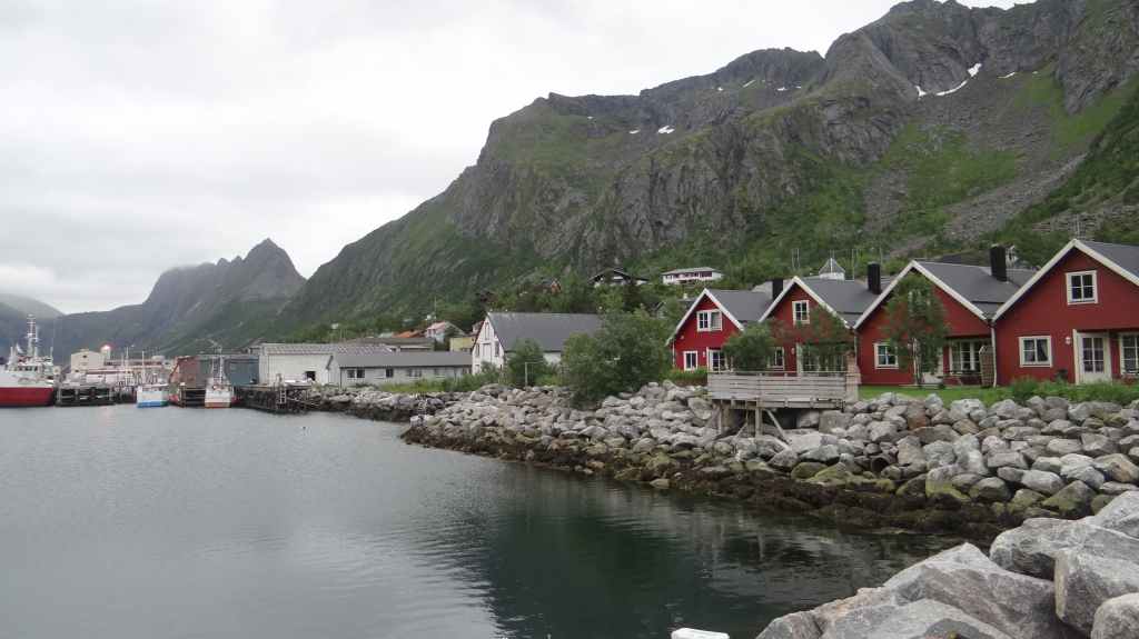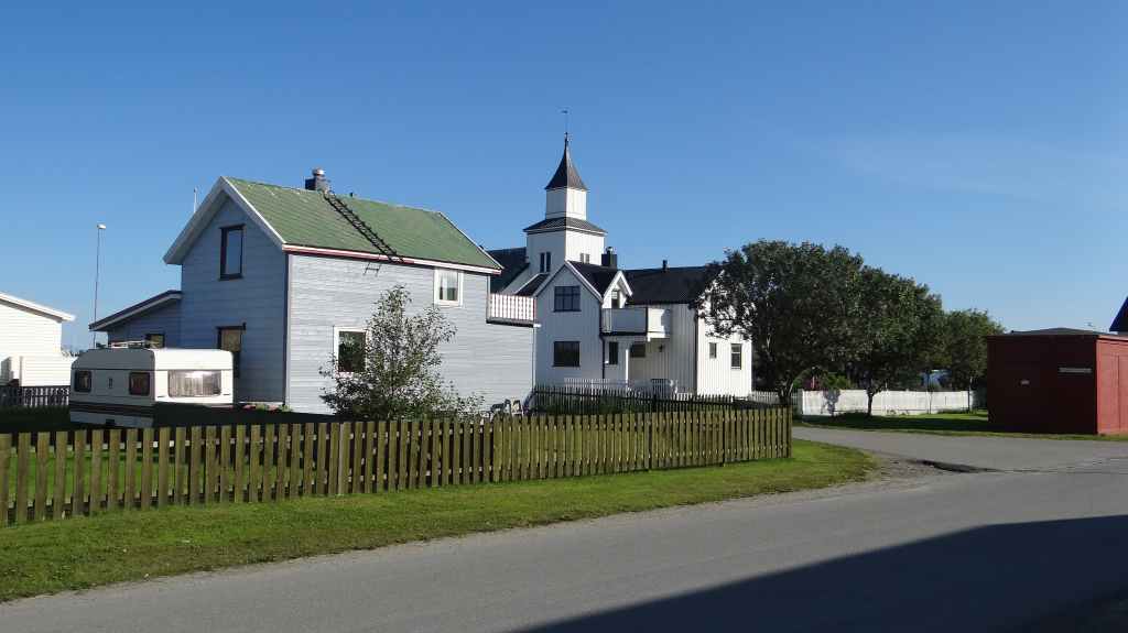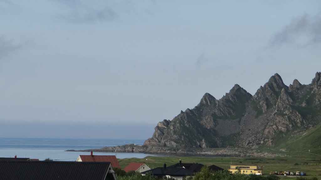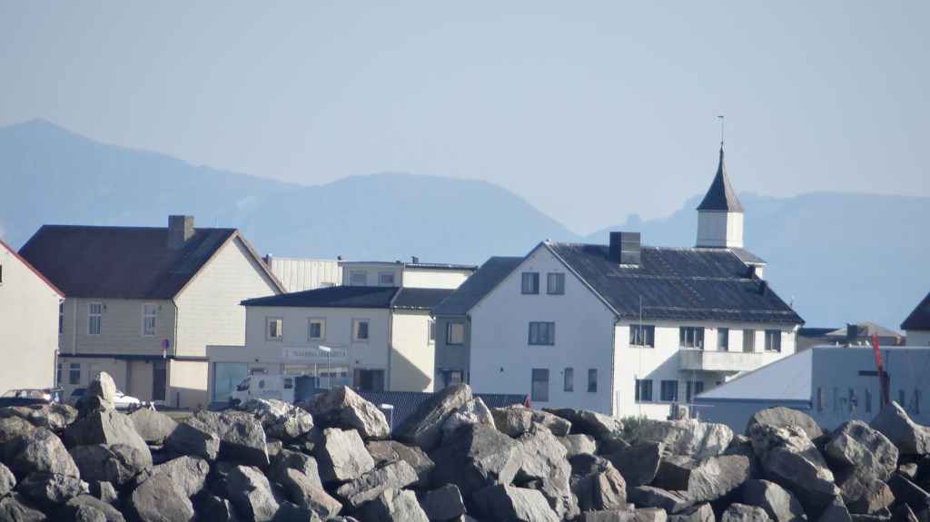 Nous visitons la ville avant de reprendre la route. Nous longeons la côte ouest de l’île pour prendre la direction du petit port de Lodingen, sur un parking à camping-car, prêts pour le ferry du lendemain. Il y fait beau.