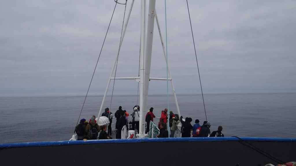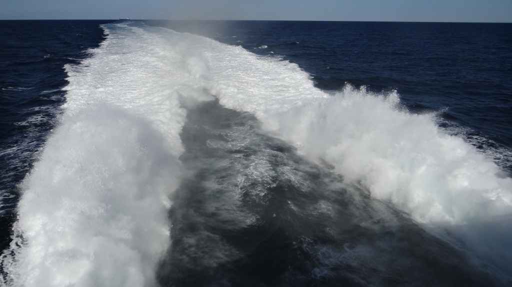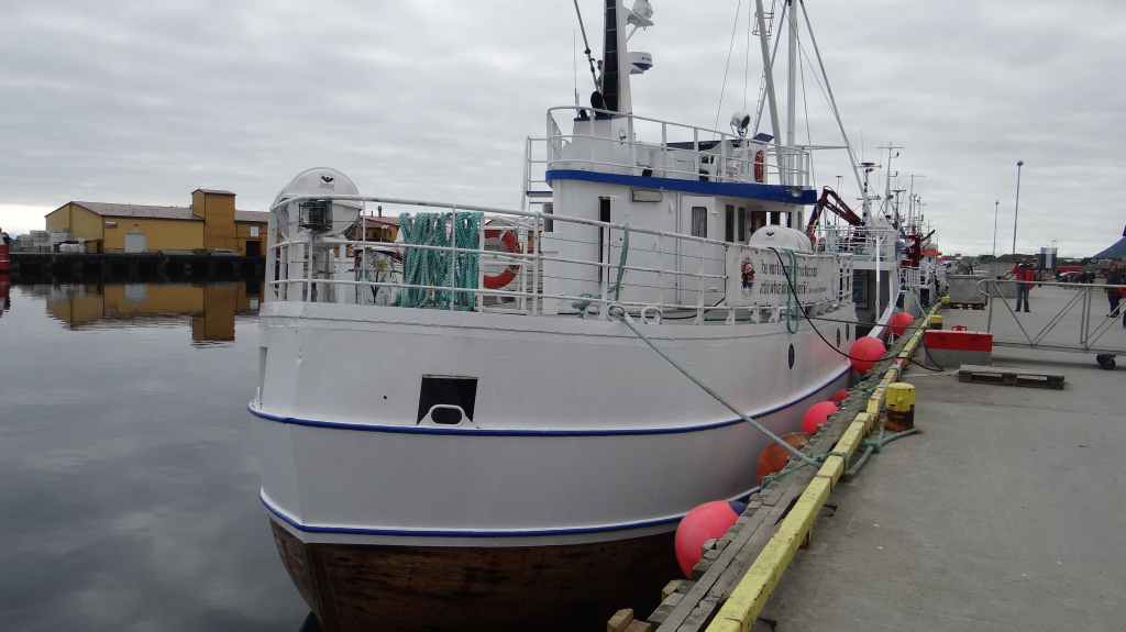 Nous nous rendons rapidement à « WhaleSafari » afin d’obtenir notre sésame pour le grand large. C’est chose faite et à 10h30, le bateau, un ancien chalutier, quitte le port. Malgré une houle relativement gentille, de nombreuses personnes ont la tête dans les sacs en papier !